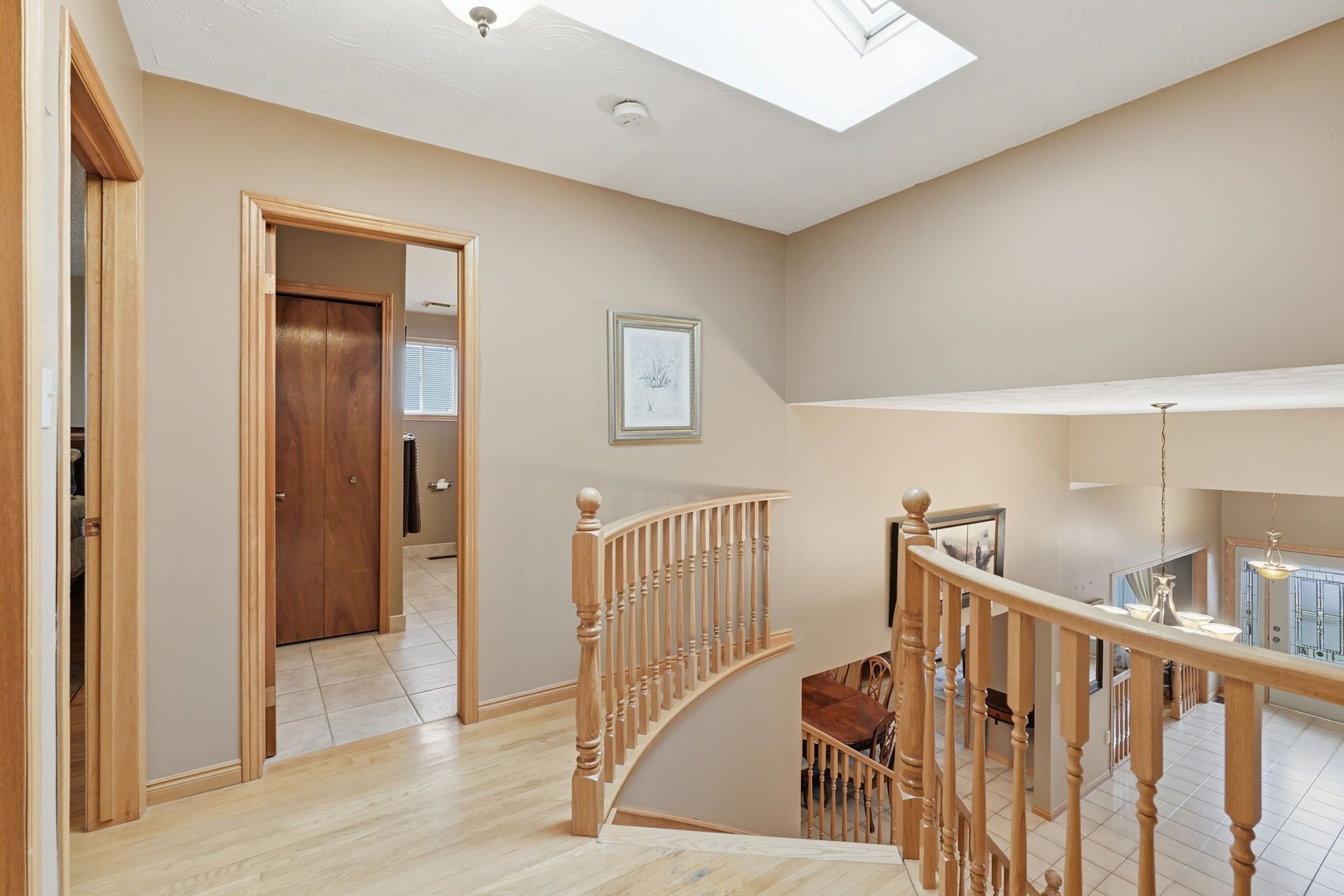 Rare custom estate on double lot hamilton mountain. First time offered, this all brick and stone home (1987) sits on a rare double lot in a top hamilton mountain neighbourhood. Highlights include an oversized double garage, driveway for 6 vehicles, and main-floor features like a bedroom, full bath, laundry, and cozy brick fireplace. The renovated kitchen (2017) boasts granite countertops and ample cabinetry. A stunning oak spiral staircase beneath a skylight leads to a spacious primary retreat with walk-in closet and ensuite. The partially finished basement with separate entrance offers in-law suite or rental potential, while the expansive outdoor space invites gardens, entertaining, or future customization. A unique opportunity to own a distinguished custom hamilton mountain home with character, space, and long-term value.