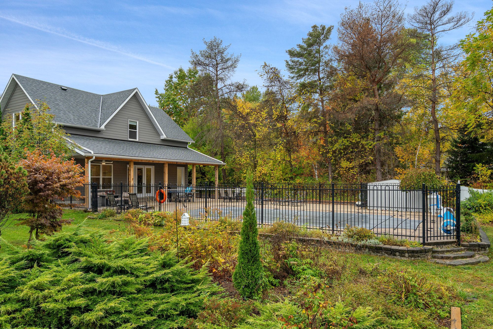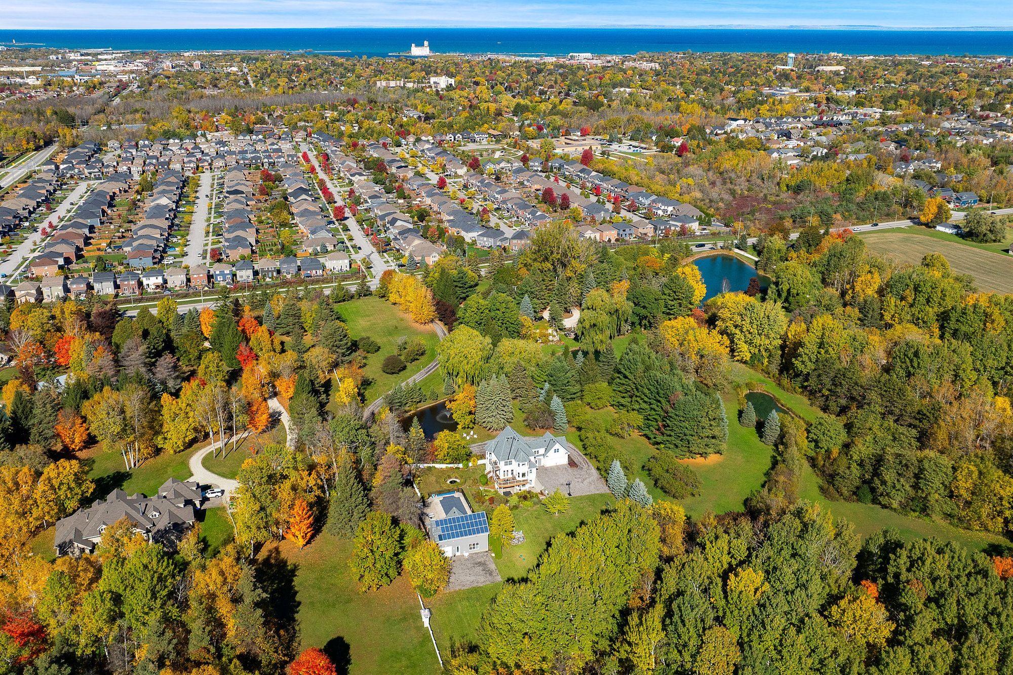 Welcome to an extraordinary 14. 95-acre country estate that defines luxury living in the heart of collingwood. Just minutes from downtown yet surrounded by the serenity of nature, this remarkable property offers a harmonious balance of elegance, privacy, and lifestyle - an idyllic retreat for those who value space and sophistication. A picturesque maple-lined driveway winds through the property, leading to a tranquil pond and fountain that set the tone for the residence beyond. The beautifully updated main home spans over 4,300 square feet, featuring 5 bedrooms and 6 bathrooms, thoughtfully reimagined with refined modern finishes. Three fireplaces, dual staircases, and ensuites in every bedroom speak to the home's quality and craftsmanship, while multiple walkouts open seamlessly to expansive terraces, patios, and decks - perfect for entertaining or quiet moments immersed in nature. Every element has been carefully curated, from new windows and floors to the roof, driveway, and professional landscaping, ensuring a timeless and inviting atmosphere. Enhancing the estate's appeal is the 2023-built guest residence, an approved accessory dwelling unit (adu) by clearview township. This 1,800-square-foot home features 2 bedrooms and 2 bathrooms, exuding the same level of luxury and style. Connected to a heated pool and generous deck, it offers endless possibilities - an elegant in-law suite, private guest quarters, or an income-generating retreat for seasonal visitors. The back 10 acres offer private trails that border scenic apple orchards and provide breathtaking views toward osler bluff. Mature maples and fruit trees frame the landscape, creating a true four-season sanctuary. Few properties offer such a rare combination of scale, and proximity to downtown collingwood. This exceptional estate captures the essence of refined country living - where luxury, nature, and lifestyle meet in perfect harmony.