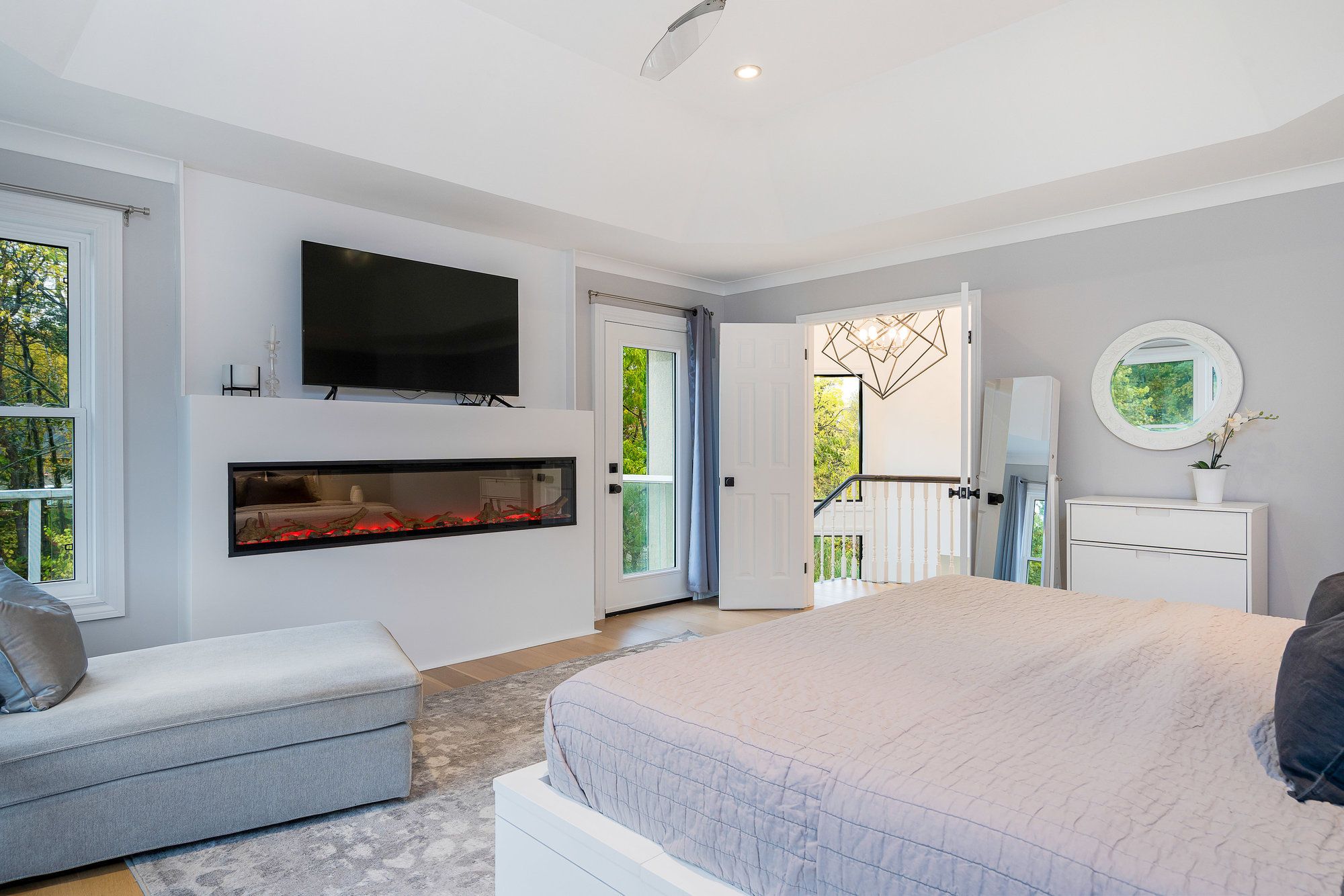 • Updated main home features 5 bedrooms, 6 bathrooms, and modern finishes.