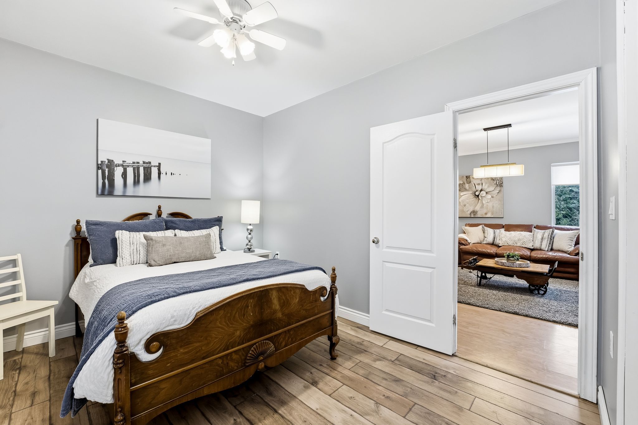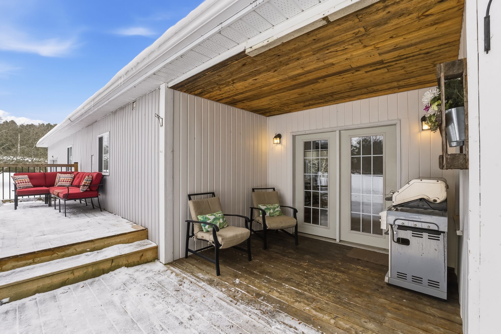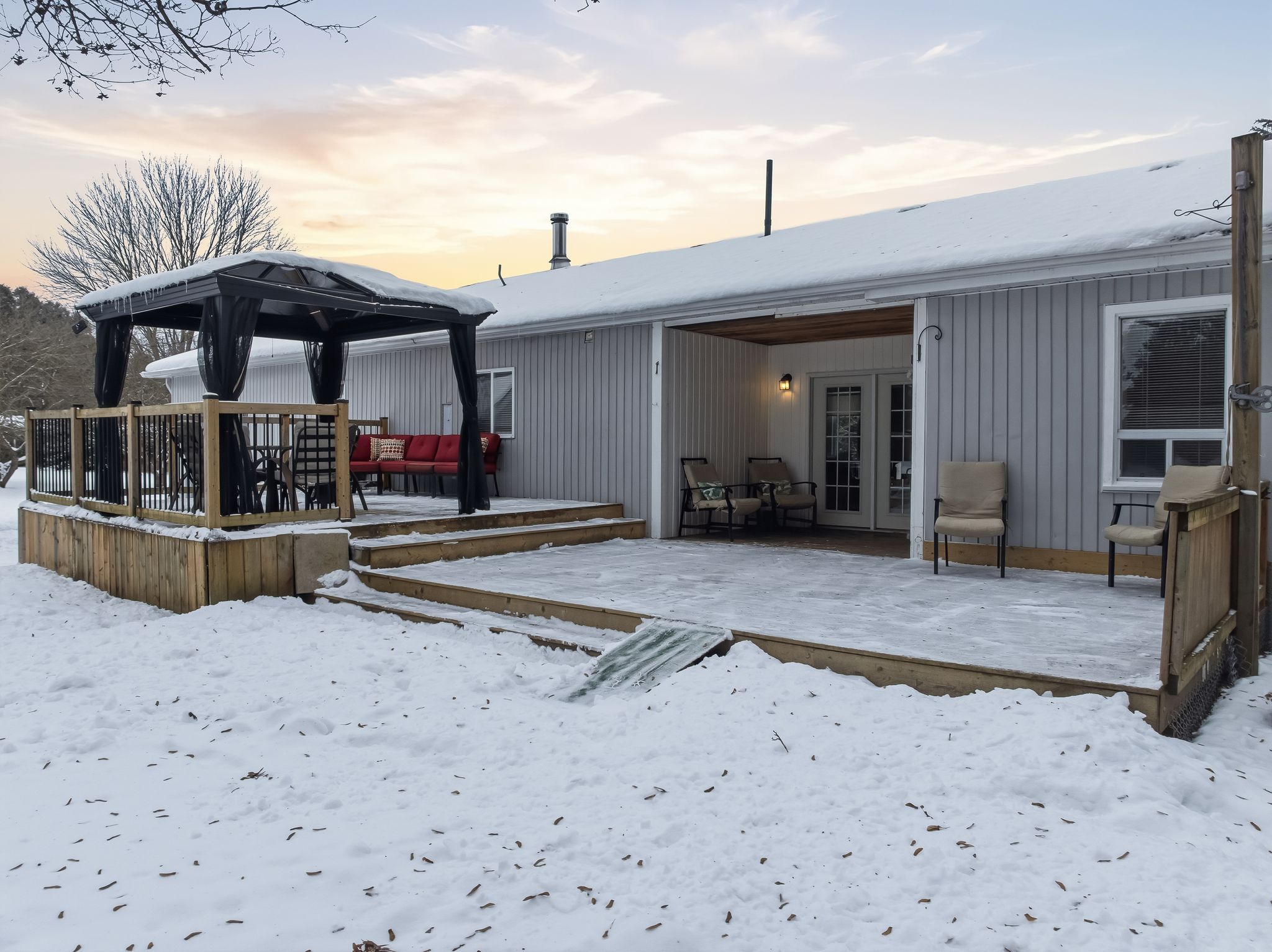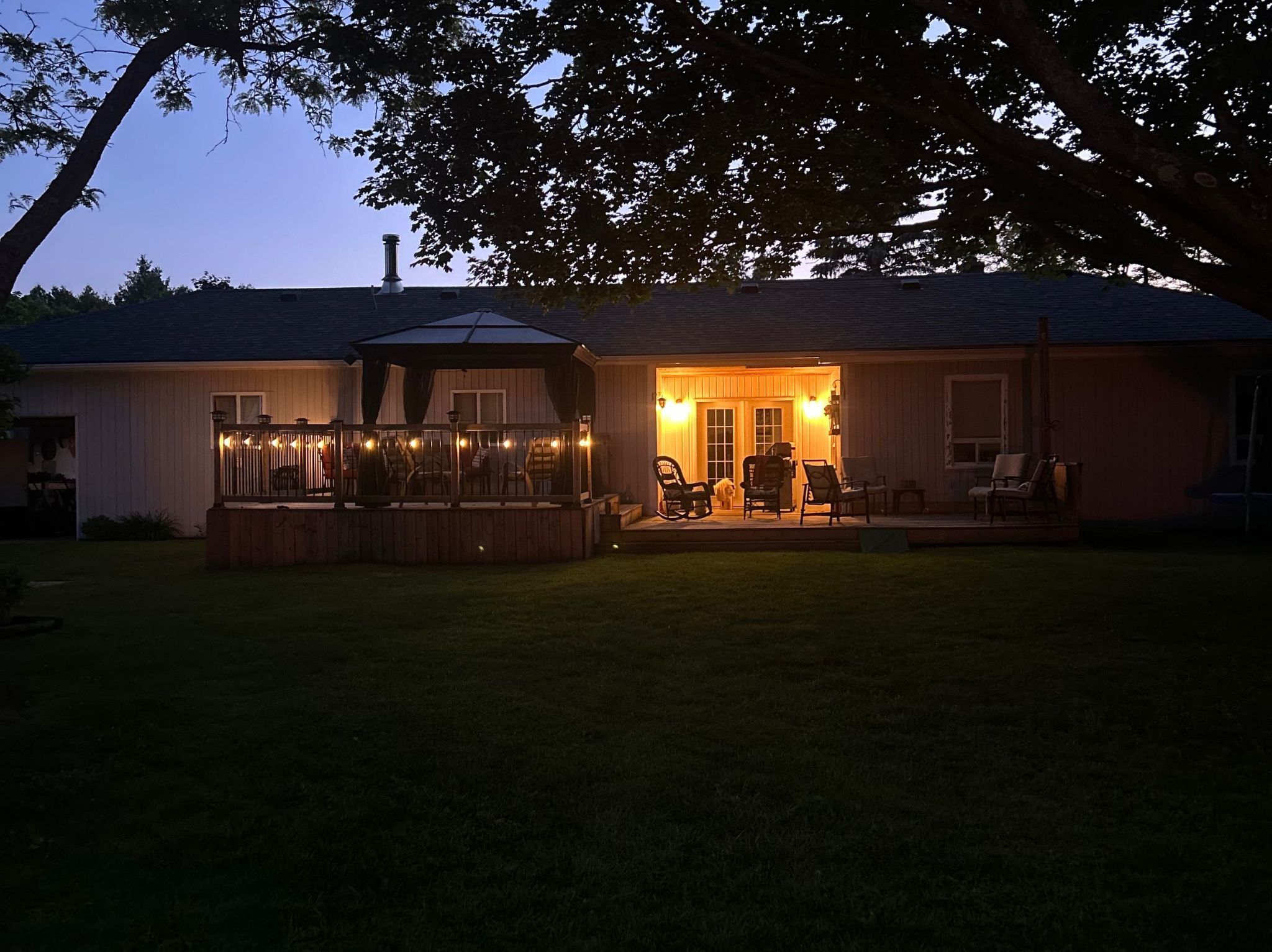 This sprawling country bungalow sits on an exceptional park-like lot in the desirable small- town community of garden hill. Sit back, relax and enjoy the peace and quiet of your own private retreat surrounded by trees and greenery. The large, level lot is more than an acre in size and has plenty of room to unwind or entertain. Walking up to the entrance, you'll find a charming covered front porch, the perfect place to enjoy morning coffee or relax at the end of a long day. Inside there are 3 bedrooms, 3 full baths and lots of well designed main floor living space. Two of the bedrooms are complete with their own ensuites. The open kitchen, dining area and family room provide a great space for entertaining large groups of family and friends during special occasions. As you continue through the home, you'll find a massive living room complete with a bar area and a walkout to a large tiered back deck that overlooks the picturesque backyard. Completing the main floor living space is a practical mudroom/laundry room that connects to the generous 1. 5 car attached garage with opening garage doors on both sides. Outside, there is an outbuilding providing additional storage options for this home. For the golf enthusiast or casual player who enjoys spending time in the back yard, there is a golf green tucked in the back corner of the lot. This is a perfect place to practice your putting or short game from the nearby chipping pad. This country property is the complete package and is perfect for those looking for a peaceful space to call home.