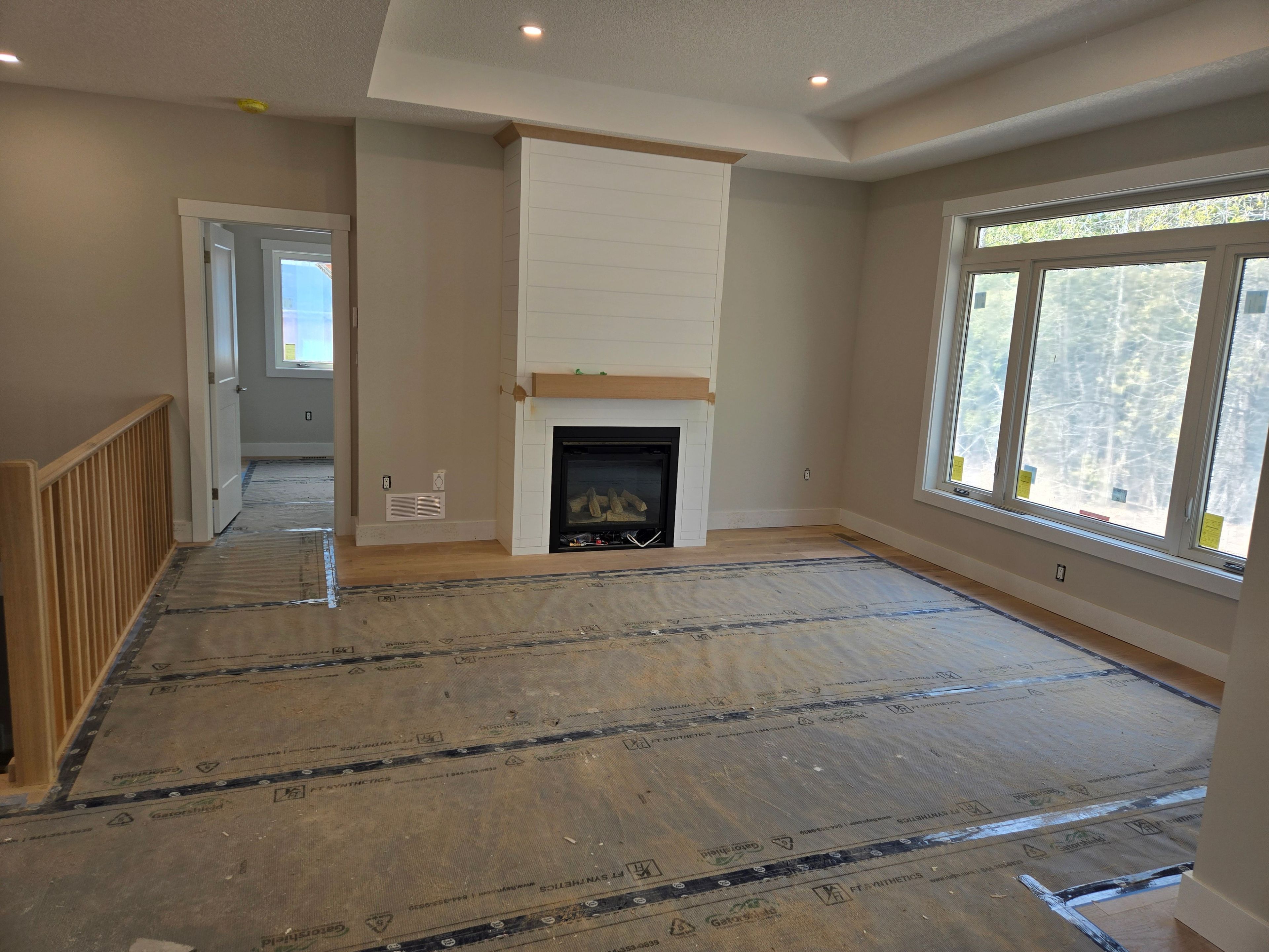 Ravine location brick bungalow, this home is basically completed. Features finished lower level and many special features: aya kitchen with granite or quartz countertops, center island and walk-in pantry. Patio doors from dinette to covered deck; open concept living / dining / kitchen area, with fireplaces in living areas up and down. Walk-in closets in both main floor bedrooms. Combination garage - entry and main floor laundry and mudroom. Pony panel has been installed to enable a substantial stationary electricity generator. Lower level finished with two extra bedrooms or special purpose rooms; third full bath; huge 16' x 25' family room with fireplace; walkout from utility area to full 2-car garage. 1523 square-feet on main floor plus 1323 finished down. All this near parkland and kincardine trail access and only four blocks to downtown, schools and arena / community centre. Yard will be sodded front and rear. Please note room measurements have been rounded..