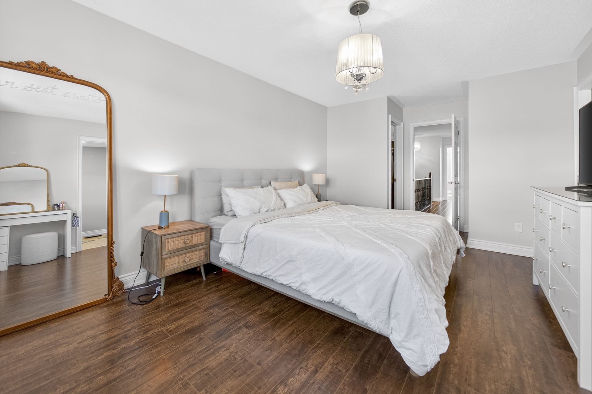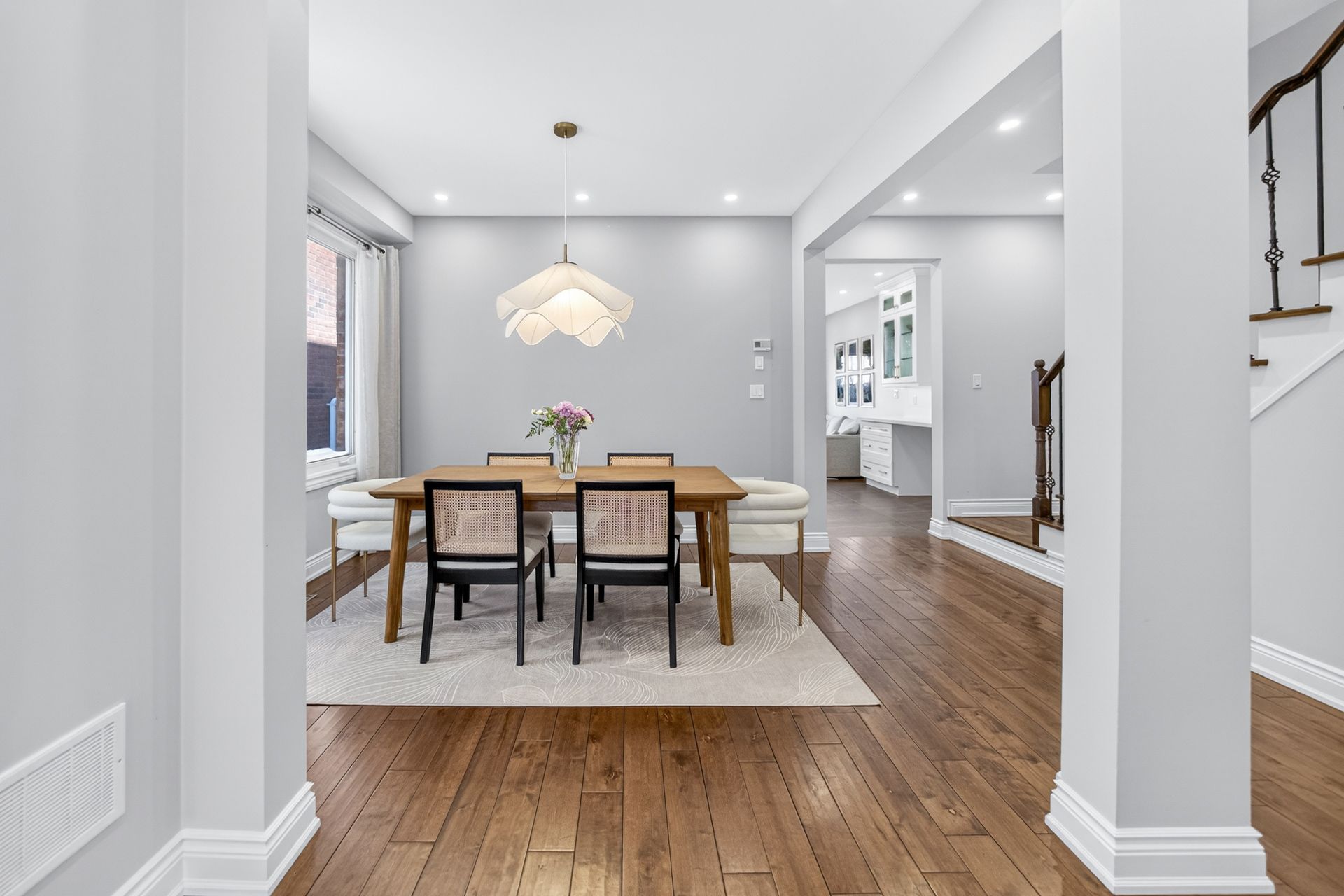 Welcome to this stunning and one of a kind upgraded 4-bedroom semi-detached home in the heart of milton's highly sought-after coates neighbourhood. Tastefully decorated and meticulously maintained, this move-in-ready home offers a perfect blend of comfort, style, and functionality for modern family living. Enjoy the views from your covered front porch. Enter through the grand double doors to a spacious foyer with custom built-in cabinetry in the front hall, a visually appealing storage solution for winter coats and shoesthe main level features hardwood flooring in dining and great room, creating a warm and cohesive flow. The spacious great room is anchored by a stunning contemporary fireplace, adding both style and ambiance to the living space. The upgraded, one-of-a-kind kitchen is truly a masterpiece, thoughtfully designed with premium finishes and elegant premium flooring, making it ideal for everyday living and entertaining. The 9' ceilings on the main level make the open-concept kitchen and great room seem even larger, and the separate dining room is perfect for hosting. You will love the kitchen with custom cabinetry to the ceiling with crown mouldings, an over-sized quartz centre island, coffee/wine bar and stainless steel appliances and w/o to the rear yard. Upstairs, you'll find four generously sized bedrooms with laminate flooring throughout, offering a durable and cohesive, carpet-free living environment. The fully finished basement extends the living space further and includes laminate flooring and a 2 piece fourth washroom, perfect for a recreation room, or home office with lots of storage. Ideally located steps from tiger jeet singh public school, and close to parks, playgrounds, walking trails, milton sports centre, shopping plazas, restaurants, public transit, and milton district hospital. Enjoy convenient commuter access with a short drive to milton go station and easy connectivity to highways 401 & 407.