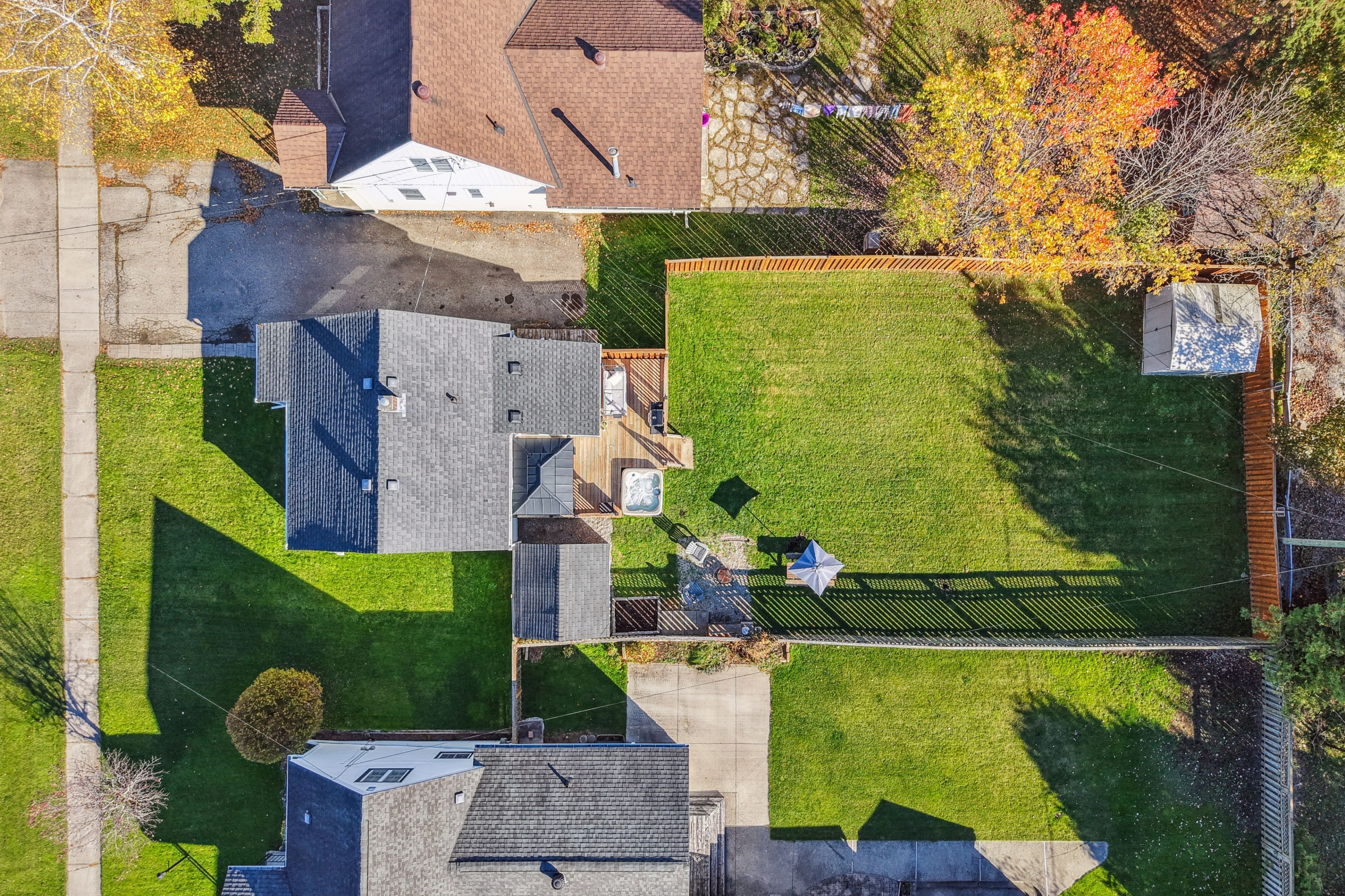• Deep, private backyard with a large deck and hot tub.