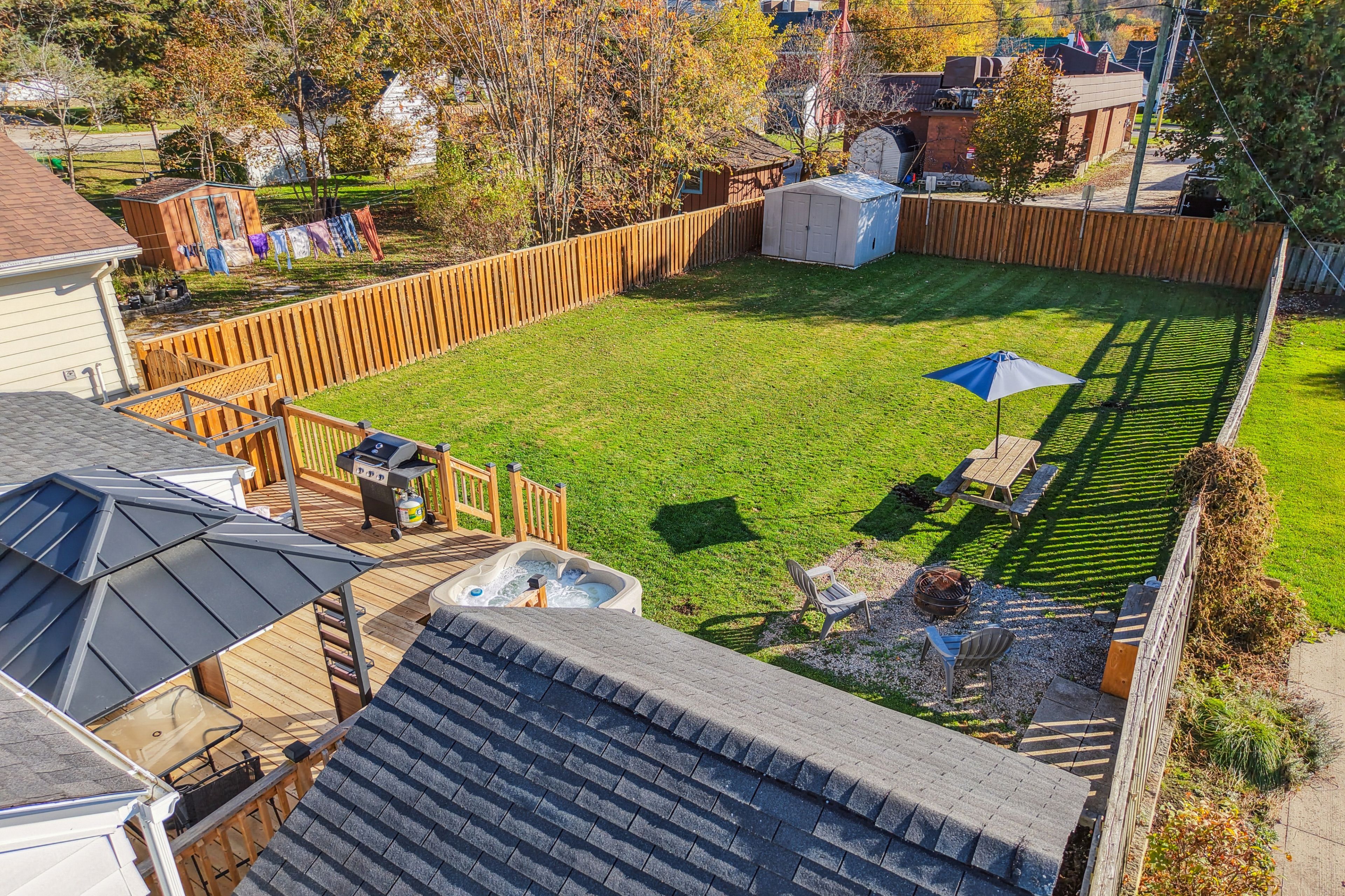 Welcome to 785 6th street 'a' east in owen sound. This 2 bedroom, 1 bathroom bungalow offers easy one floor living with a simple and functional layout. The main floor includes a bright living room, kitchen, two bedrooms, a full bathroom, and a laundry room with a walkout to the backyard. The backyard is a standout feature! The lot is deep and private, located on a quiet dead end street. It is a great space for summer hosting with a large deck and hot tub. The deck was built 4 years ago and the fence was updated 5 years ago, adding to the privacy and usability of the space. This property also includes two 10x10 sheds, with one shed offering power and lighting, giving you great options for storage or a small workshop. Additional updates include a roof completed 3 years ago. This home is a great option for first time buyers, downsizers, or anyone looking for a low maintenance property with a great outdoor space.