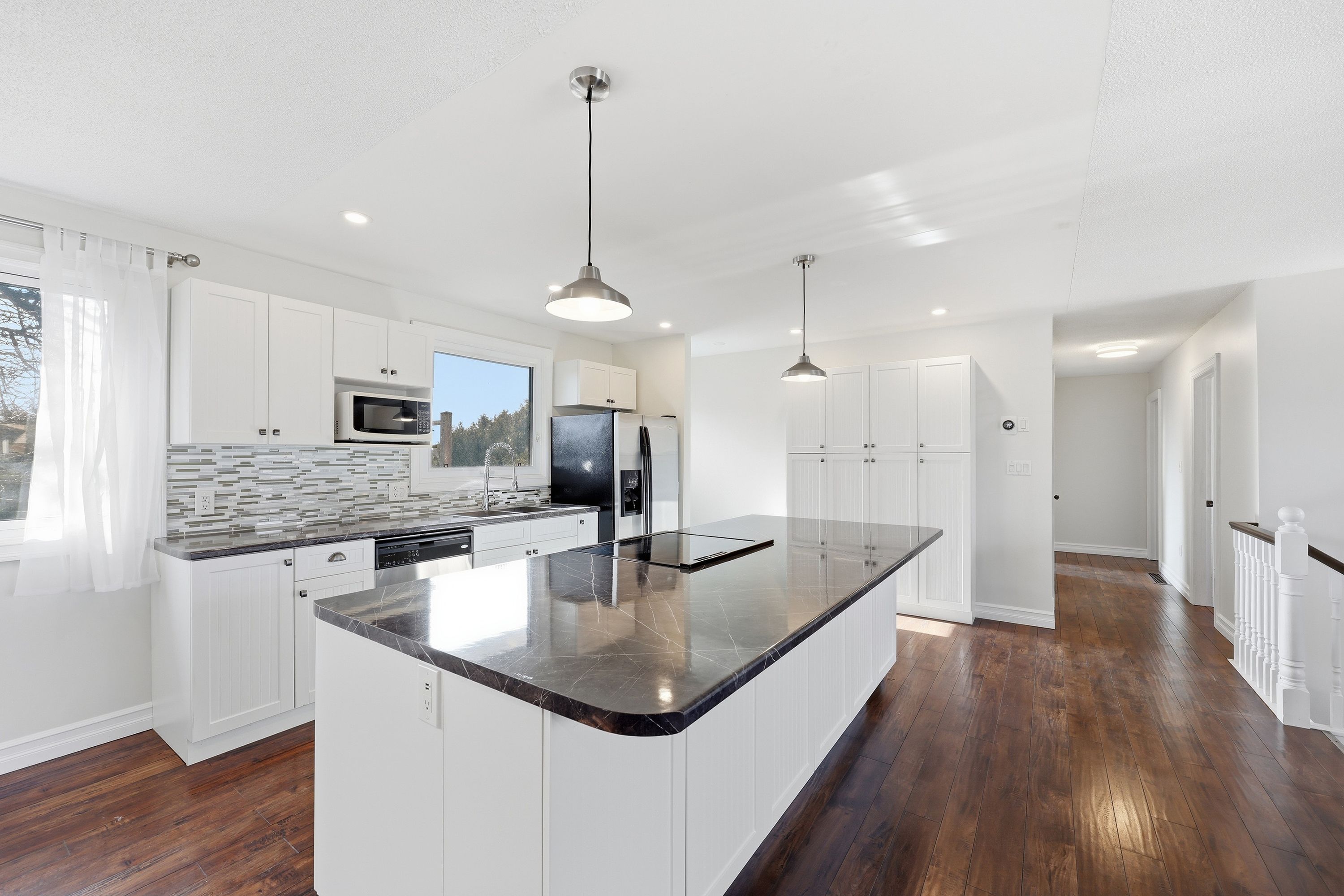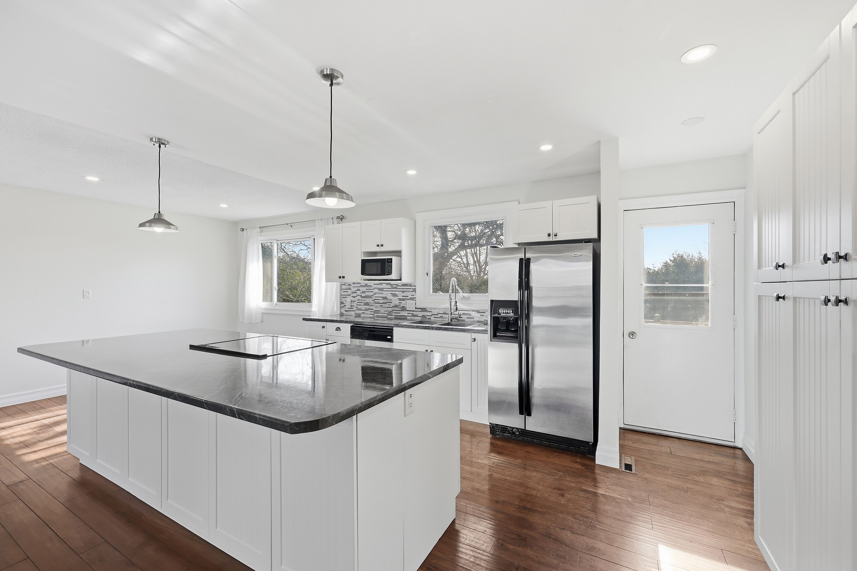 Welcome to this well maintained elevated and private bungalow, located on a quiet cul-de-sac in central kingston. This home offers space, flexibility, and comfort, perfect for families or those looking for extra income potential. The main floor features a bright open concept layout with a modern kitchen, dining area, and living room. A beautiful floor to ceiling stone fireplace adds warmth and character to the space. You will also find three bedrooms, including a primary bedroom with its own ensuite bathroom, plus a full main bathroom. Downstairs, the home offers even more living space. One side features a large rec room with a second fireplace, along with a laundry area, ideal for relaxing or entertaining. The other side of the basement includes a bachelor in law suite with its own separate entrance, full bathroom, kitchen, and private laundry. This space is perfect for extended family, guests, or potential rental income. Outside, enjoy a huge fully fenced private backyard, offering plenty of room for kids, pets, or outdoor gatherings. The home also includes an attached garage, 200amp electrical breaker panel and parking for up to four vehicles. Additional features include central air conditioning and a great location close to schools, parks, shopping, and all kingston amenities. This home offers flexibility, comfort and value in a quiet and convenient neighborhood. Book your showing today and discover all the possibilities this home has to offer!