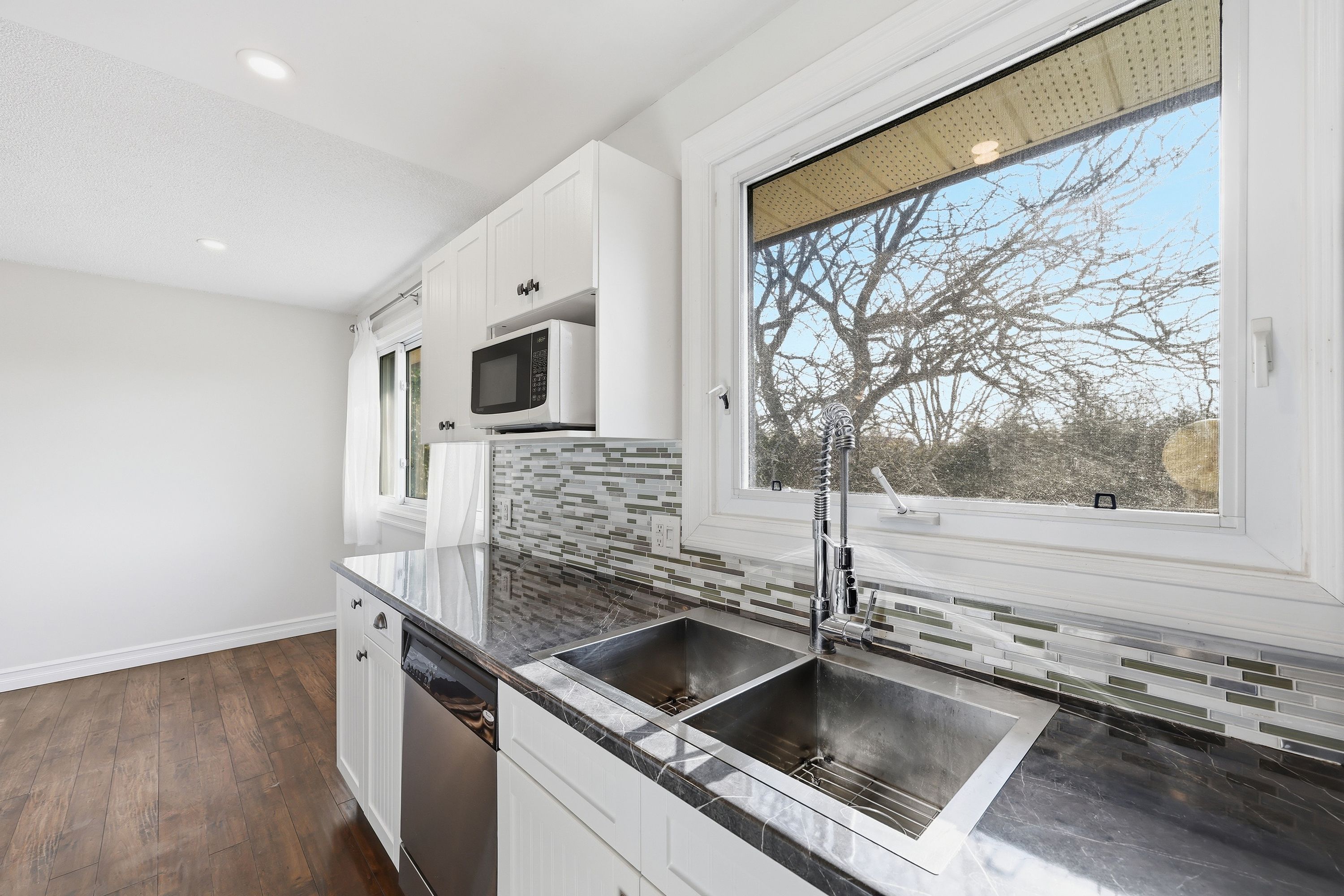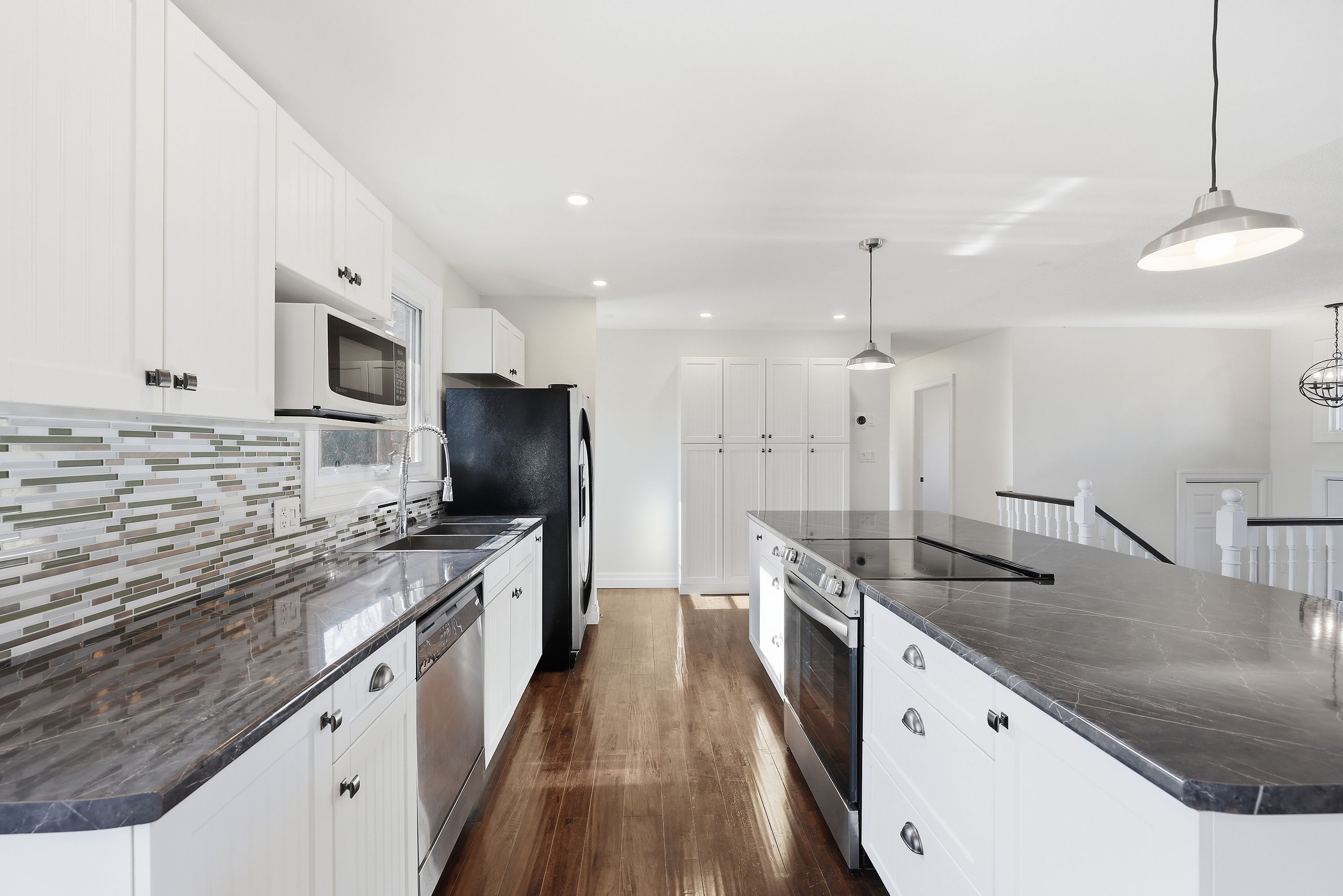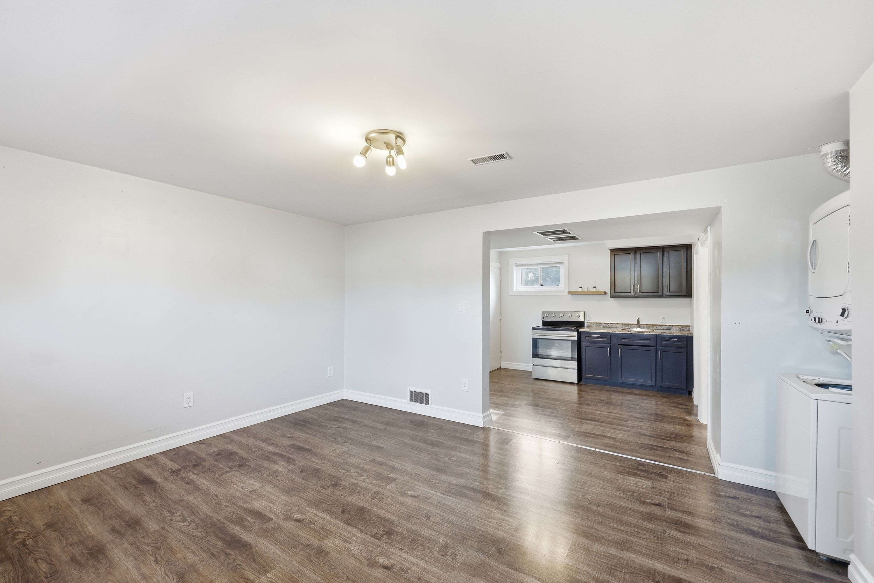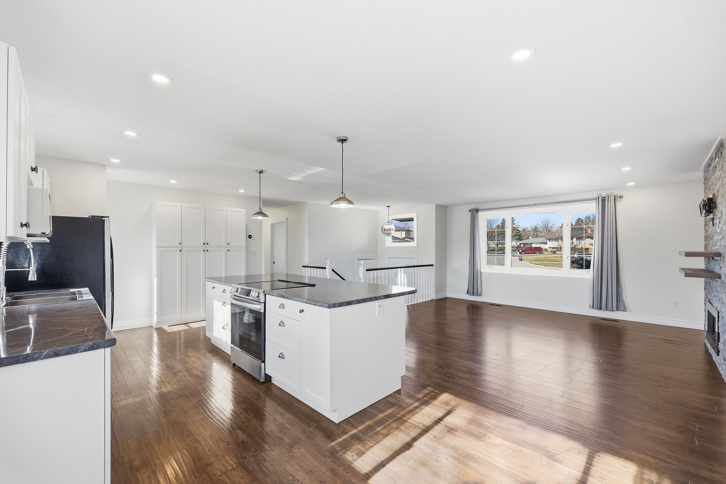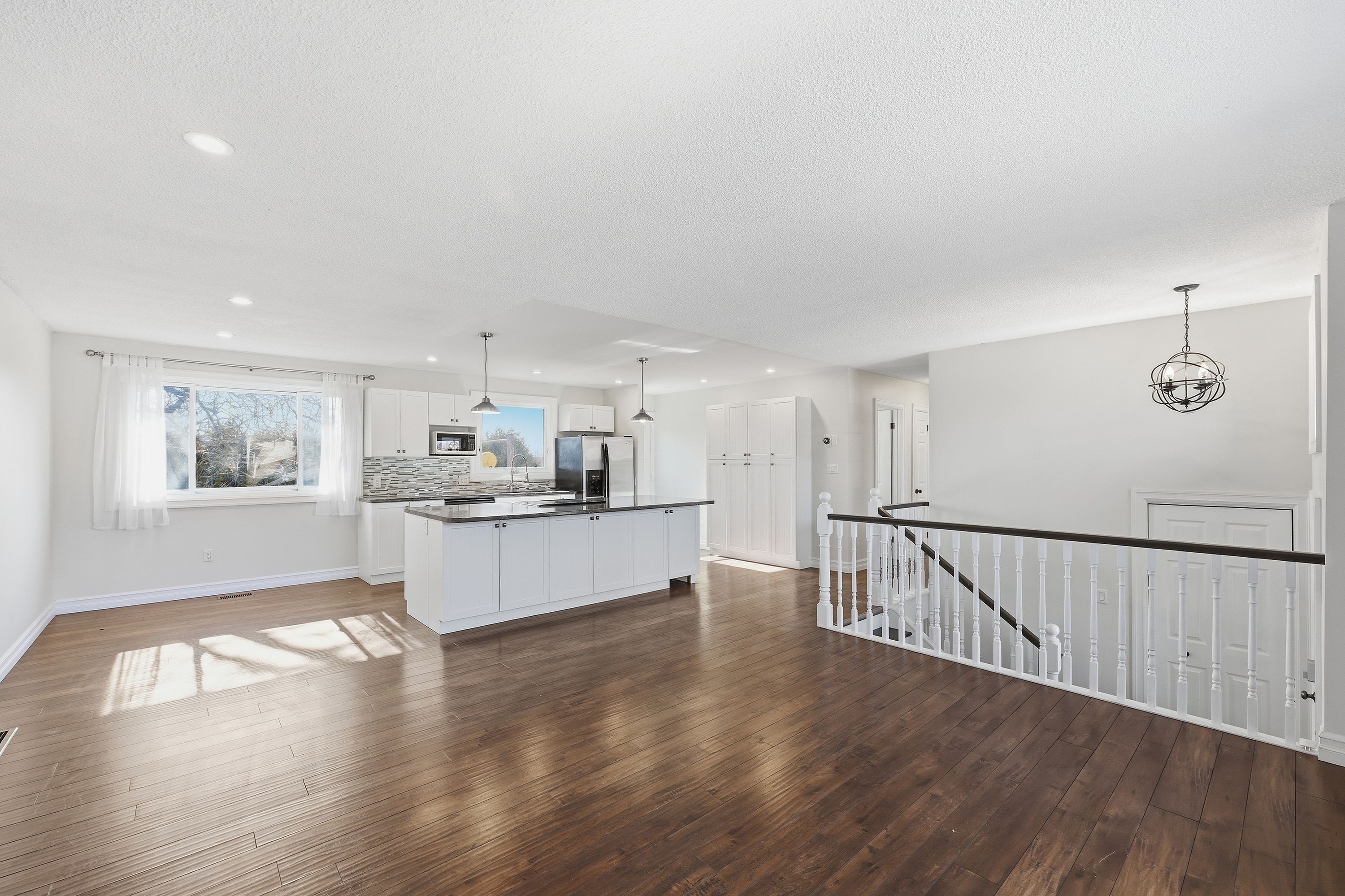 • Bright open concept layout with a modern kitchen and dining area.
