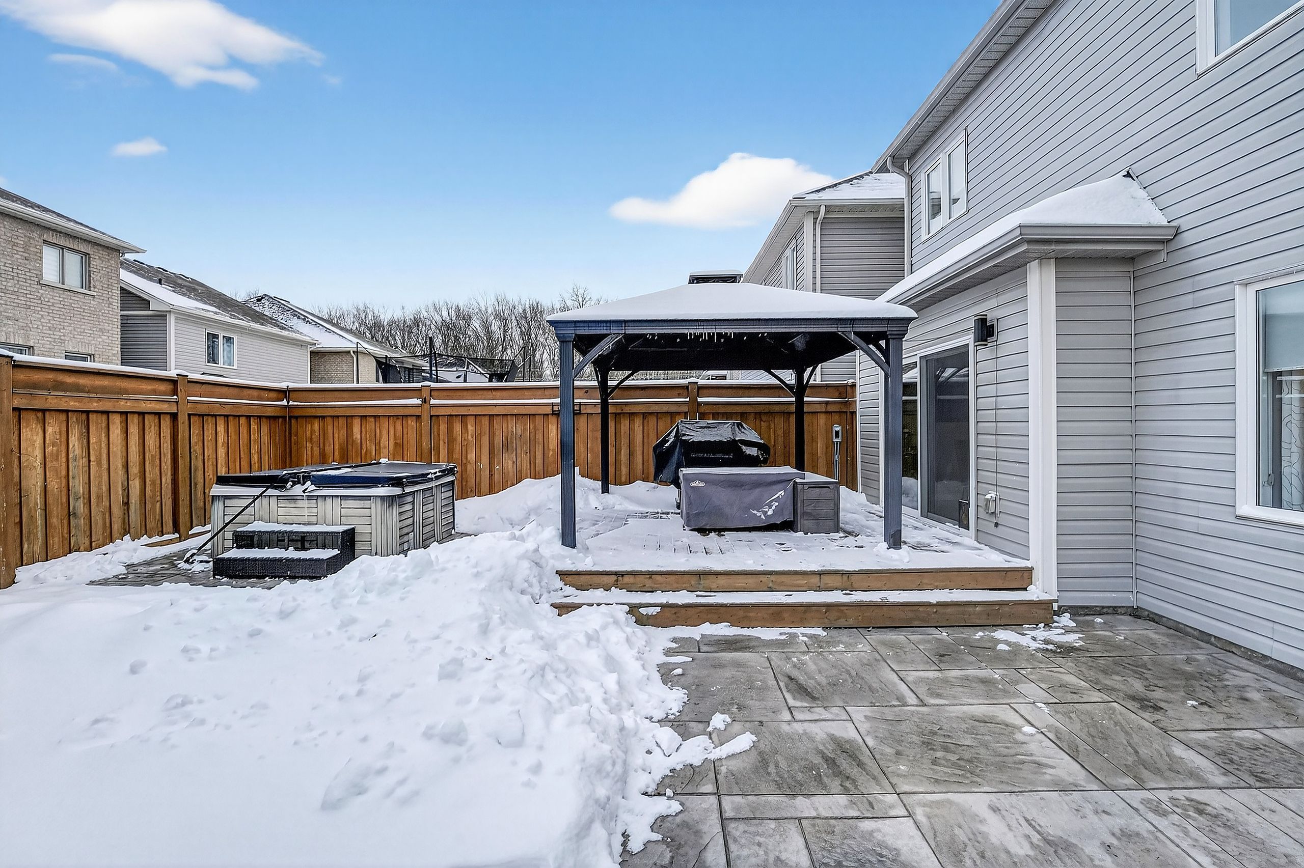 • Backyard oasis features a hot tub and gazebo for entertaining.