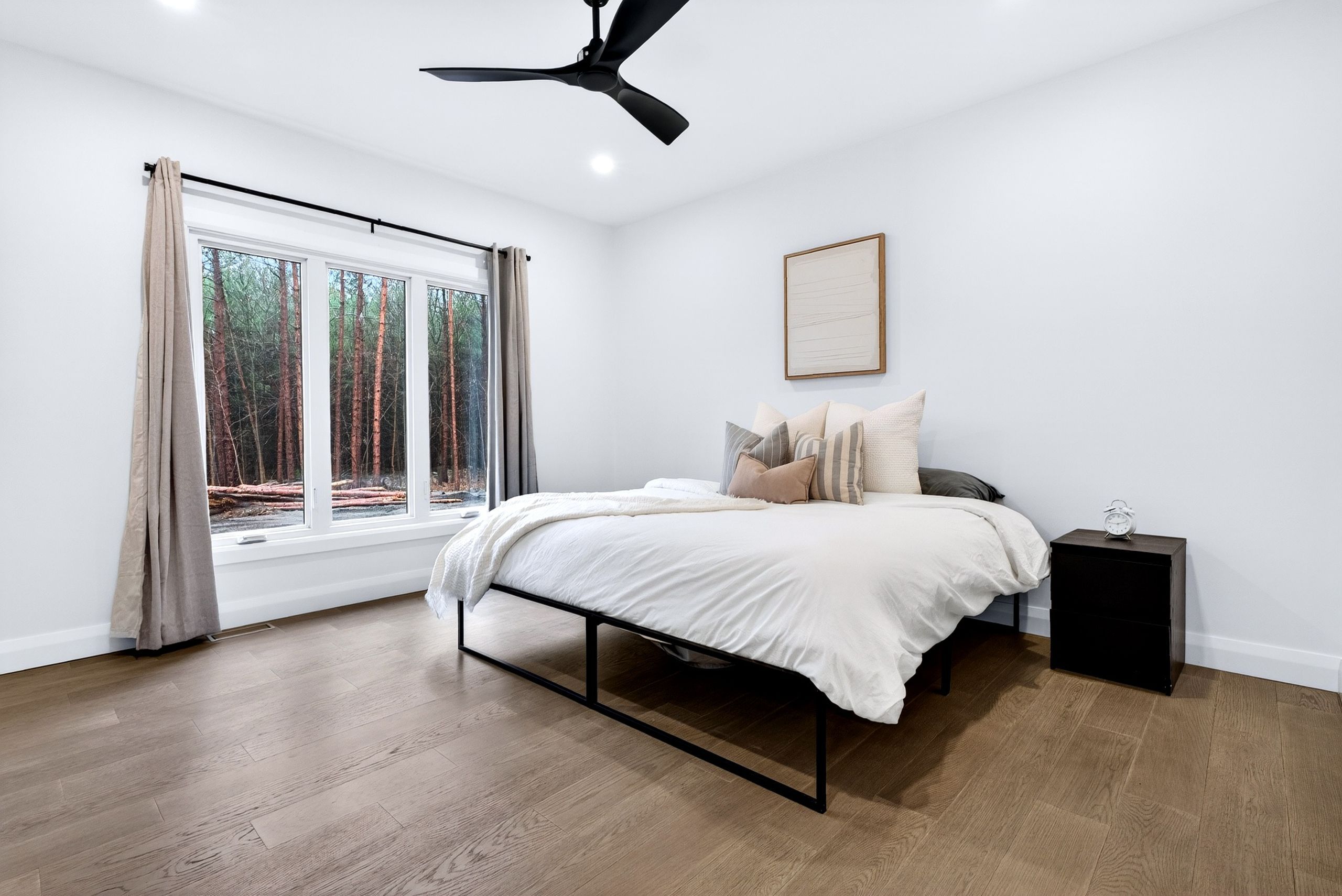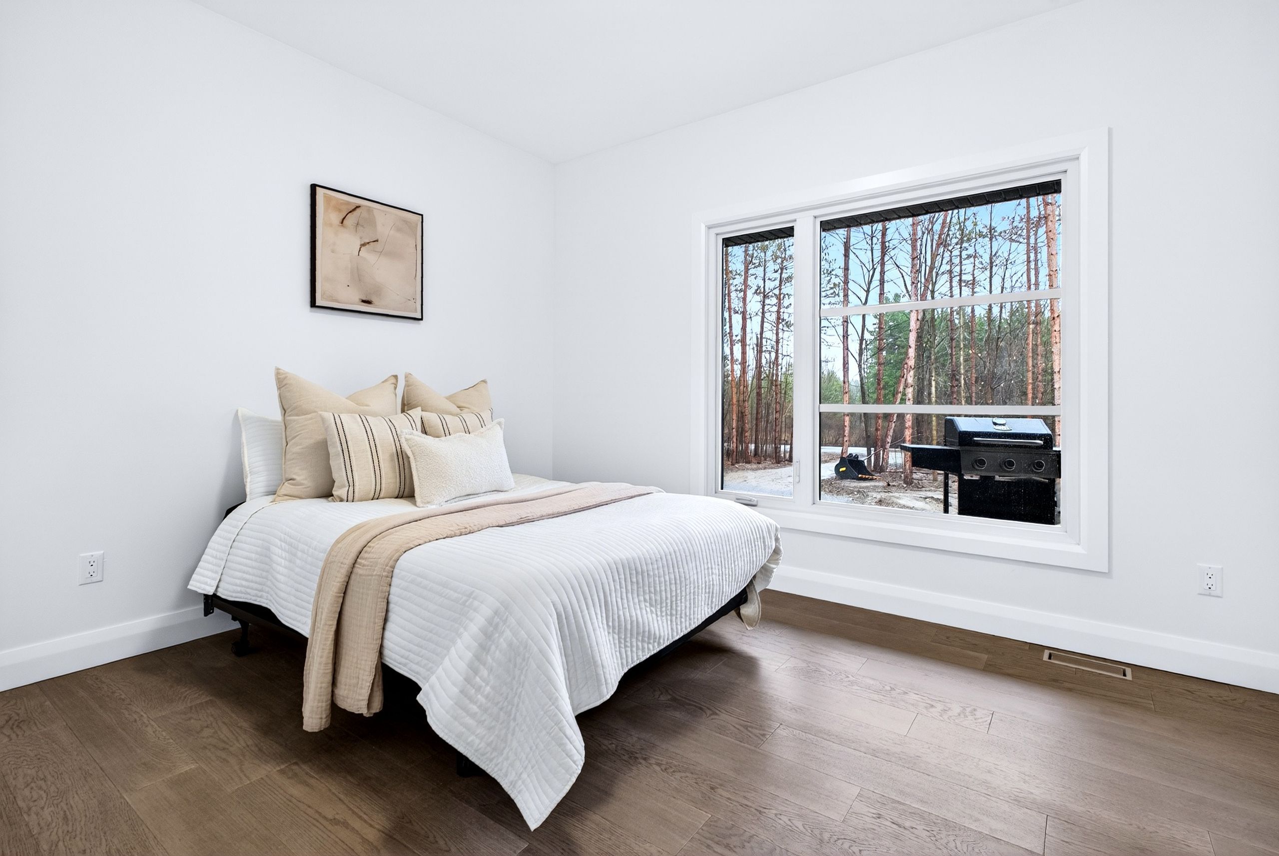 Open house, sunday april 26th, 2-4pm! Welcome to springhill-where modern luxury meets total privacy. This brand new bungalow sits on over 2 acres within city limits, offering a rare blend of upscale living and peaceful seclusion on a quiet street. From the moment you arrive, the home makes a statement-especially with its oversized garage featuring two single bay doors, soaring 12-foot ceilings, and an impressive 26-foot depth. Perfect for trucks, toys, or a true workshop setup. Inside, you're greeted by 9-foot ceilings on both levels and a bright, open-concept layout designed for both everyday living and entertaining. The heart of the home is a stunning, contemporary kitchen with a quartz island, matching counters and backsplash, two-tone cabinetry, and a striking chimney-style hood fan above the island gas range. A wall-mounted double oven and premium appliances complete the space. Large patio doors flood the area with natural light and lead to an expansive deck-ideal for hosting or simply enjoying the privacy of your surroundings. The living area features custom built-in cabinetry with a mounted tv and designer display niches, adding both function and style. The main floor offers three well-sized bedrooms, including a beautiful primary suite with an oversized glass shower in the ensuite. High-end finishes continue throughout, from the hardwood flooring to the refined tile work, plumbing fixtures, and mirrors. Convenient main floor laundry adds to the thoughtful layout. Downstairs, the fully finished basement mirrors the quality above with 9-foot ceilings, a massive recreation space, a fourth bedroom, and a full bath. Whether you envision a home gym, theatre, office-or all three-there's room to make it happen. A truly rare opportunity to own a turnkey, high-end home on a large, private lot in springhill.