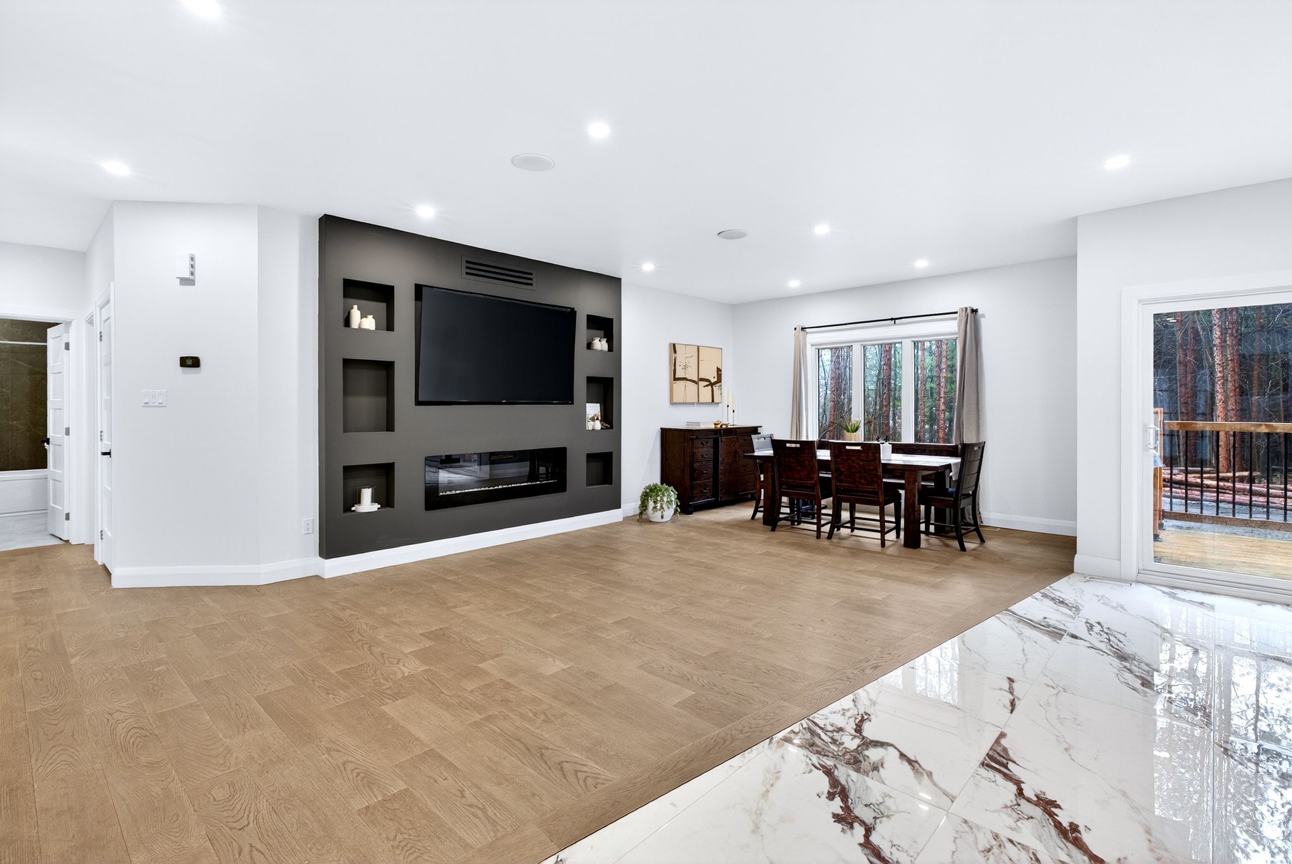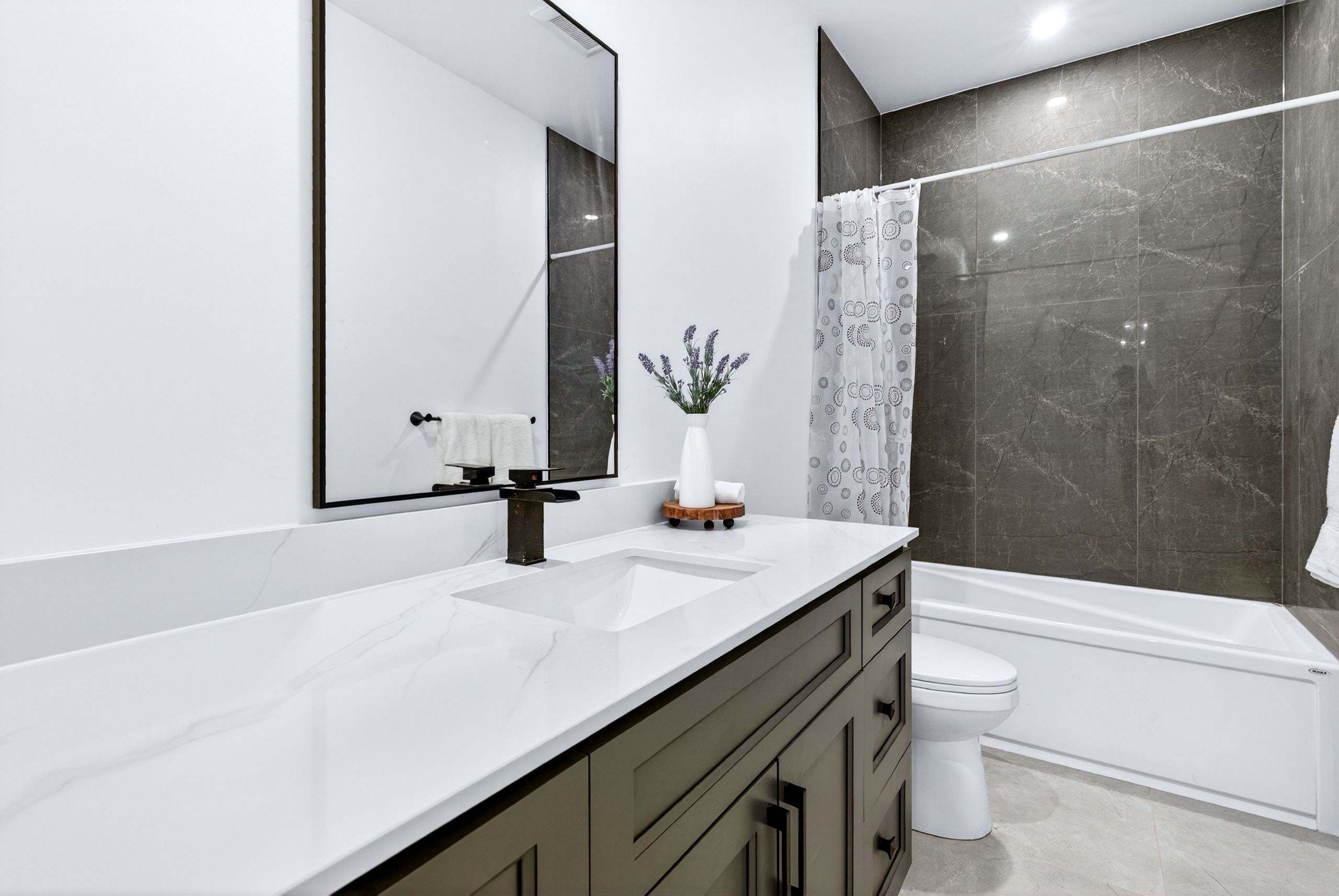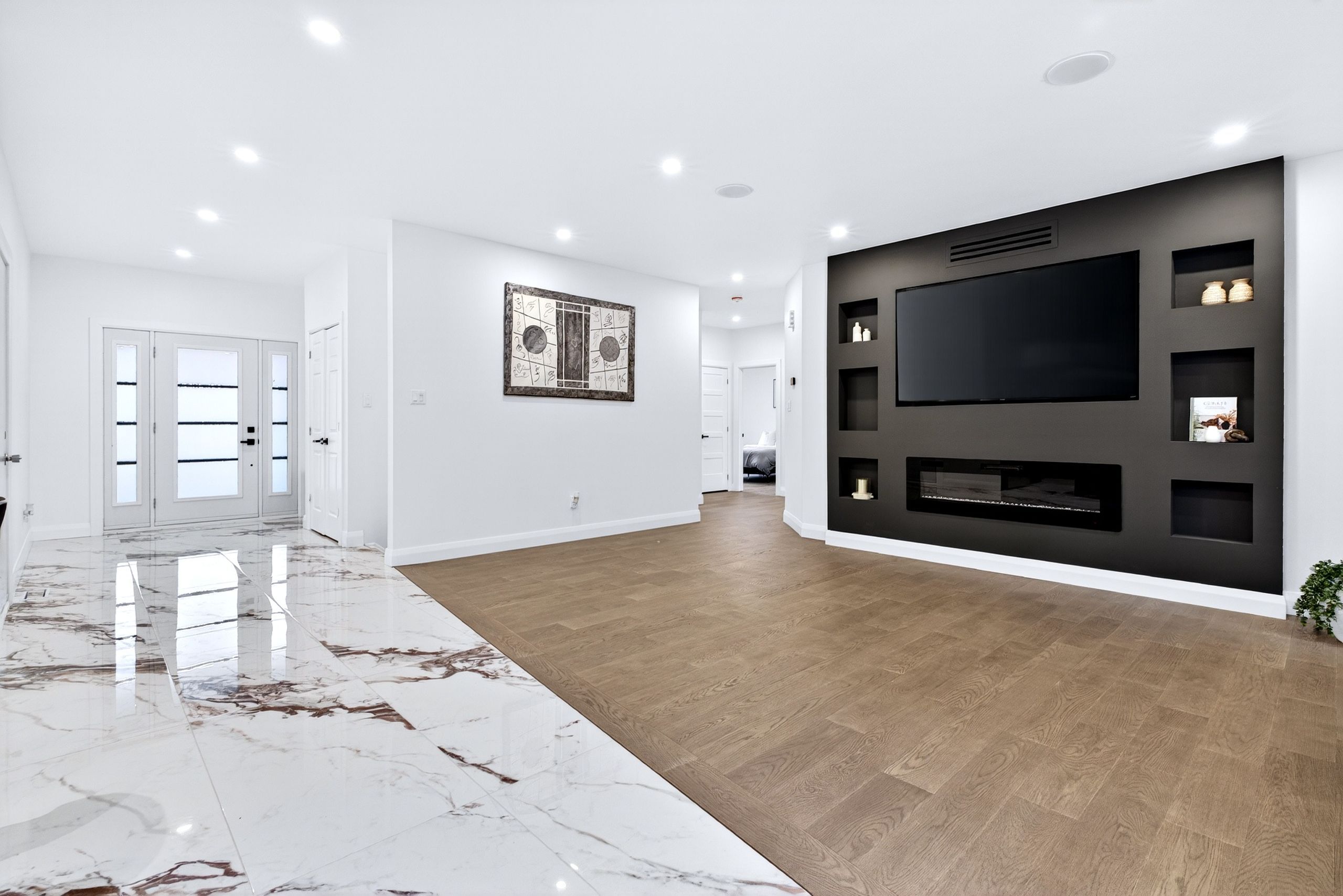 • Bright open-concept layout with 9-foot ceilings and modern finishes.