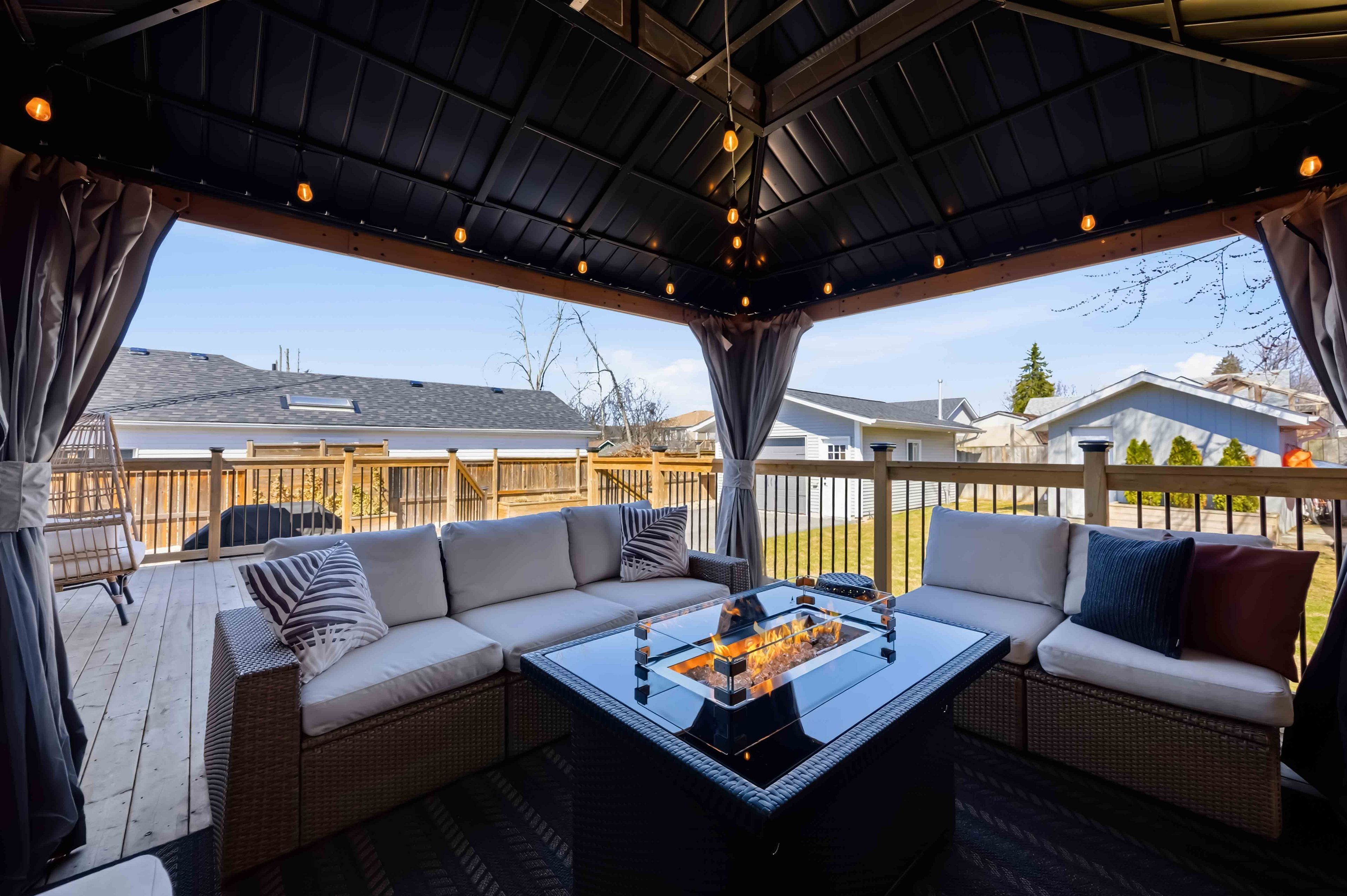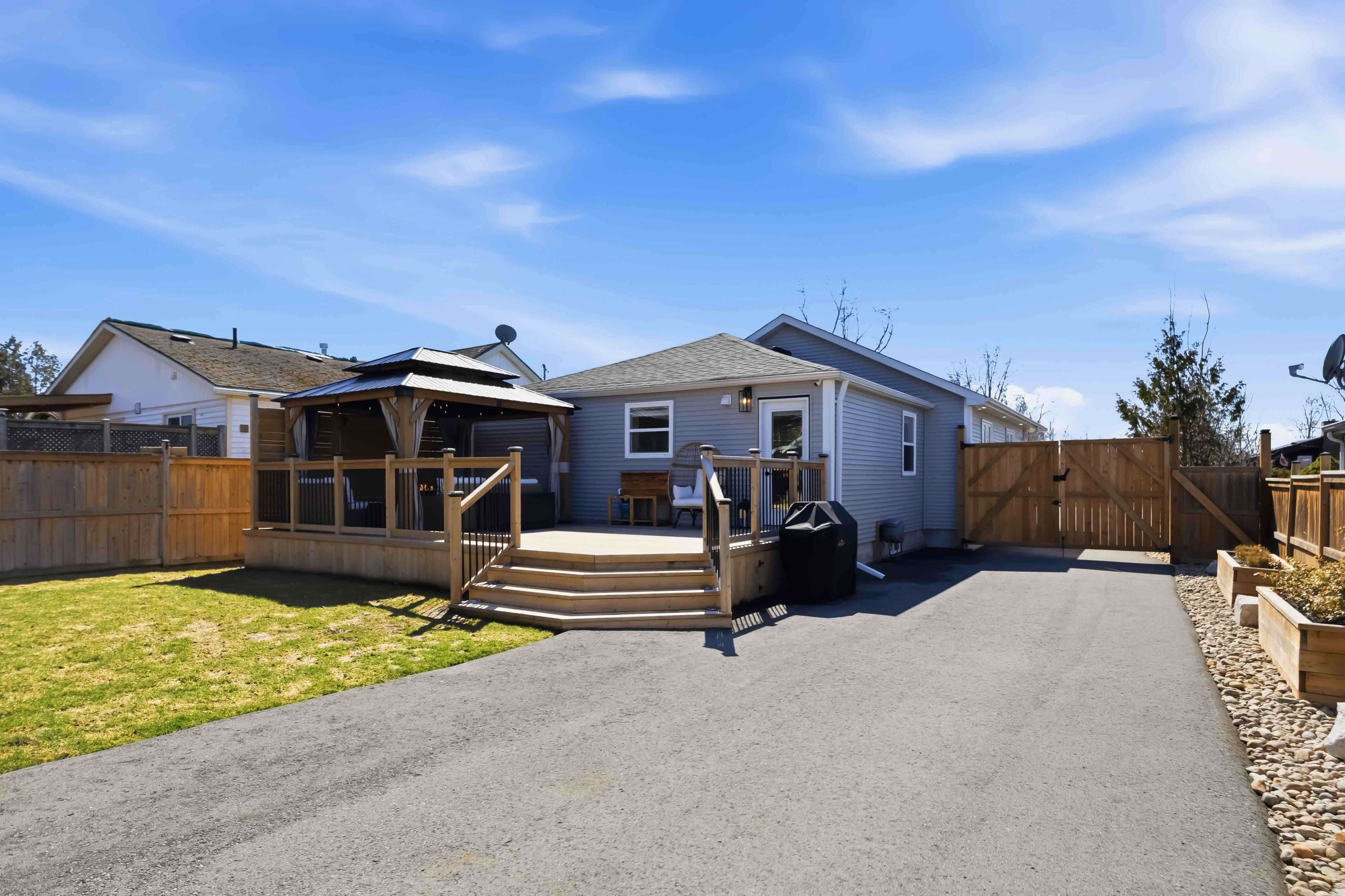 • Custom deck and gazebo create a relaxing outdoor space.