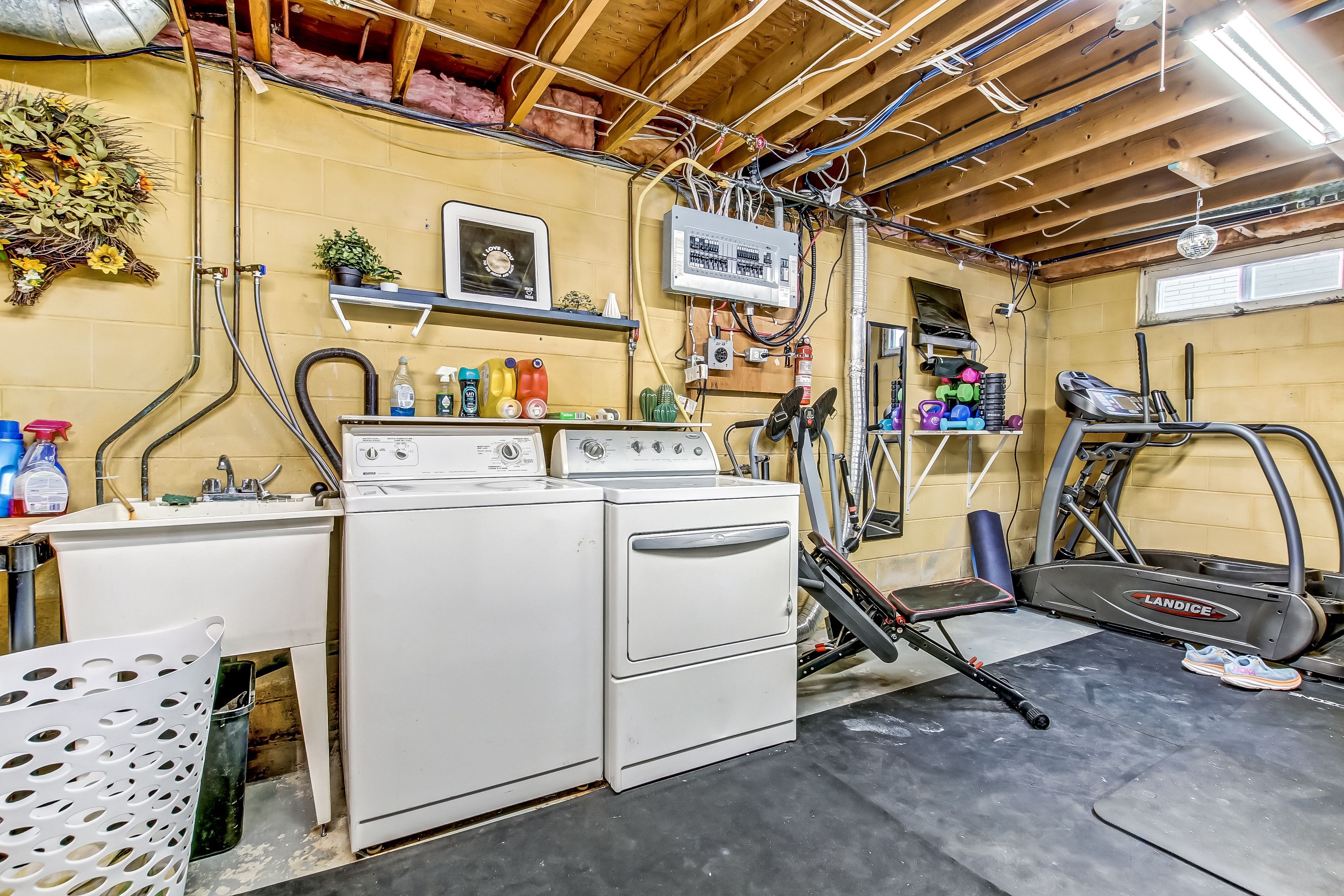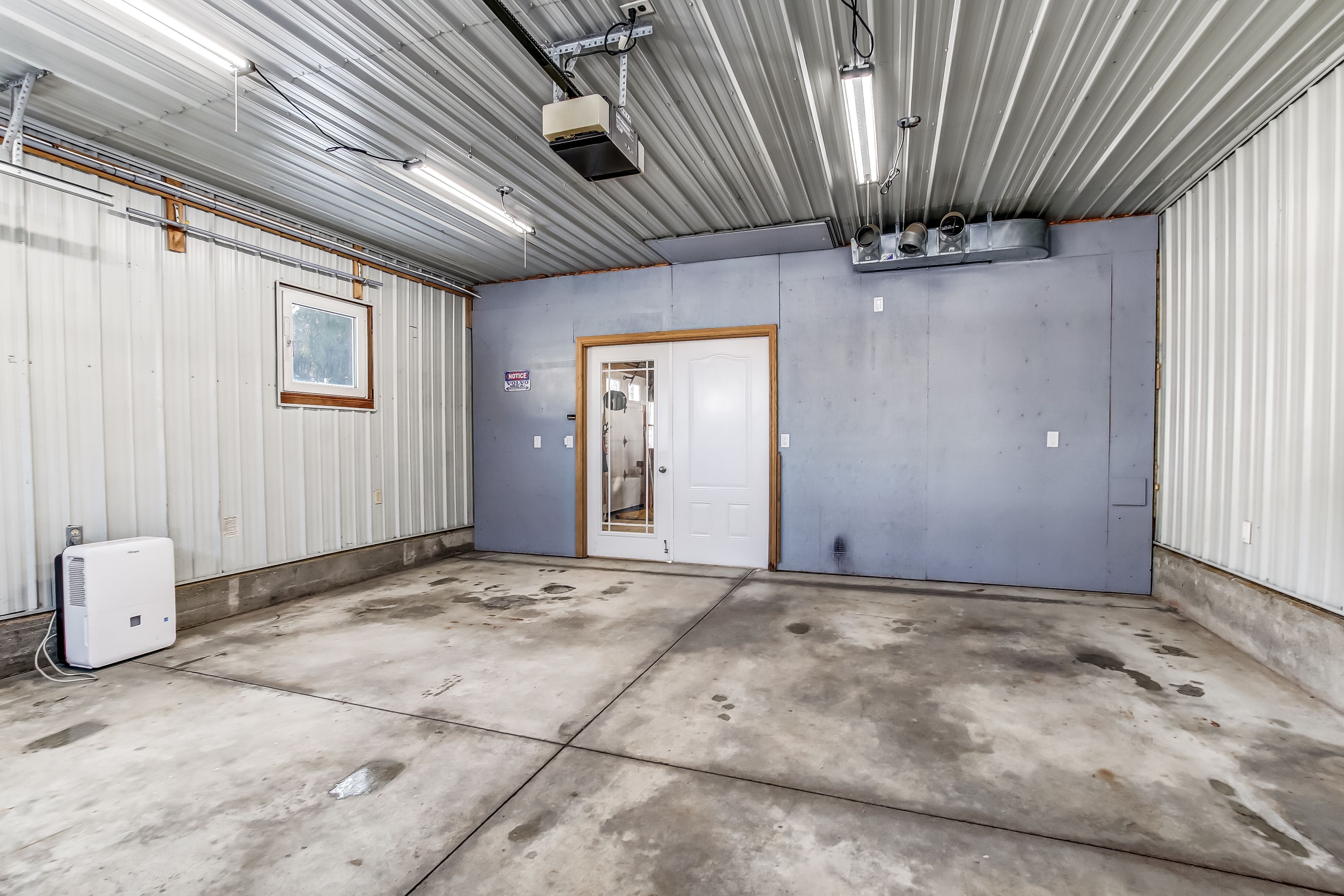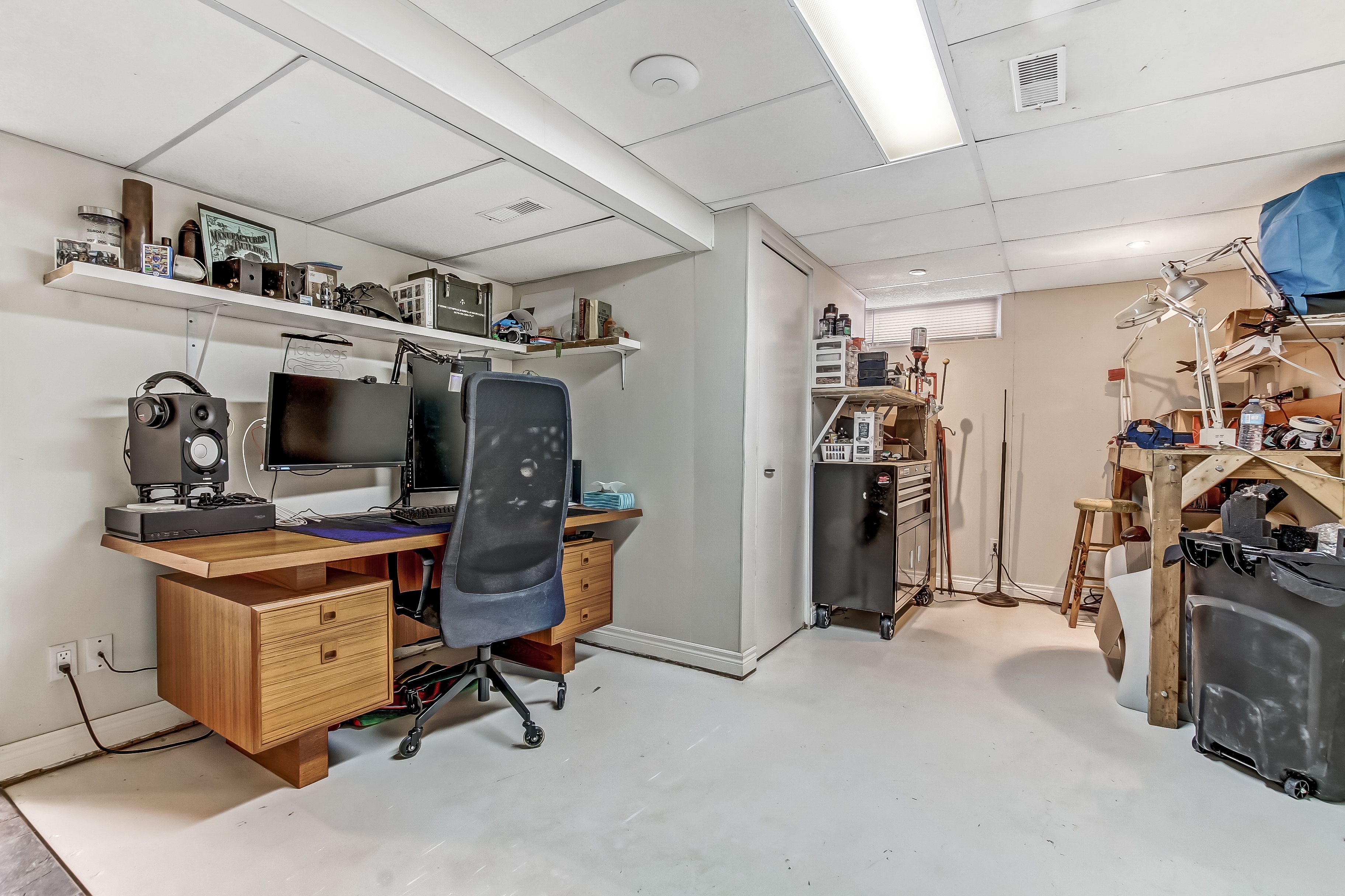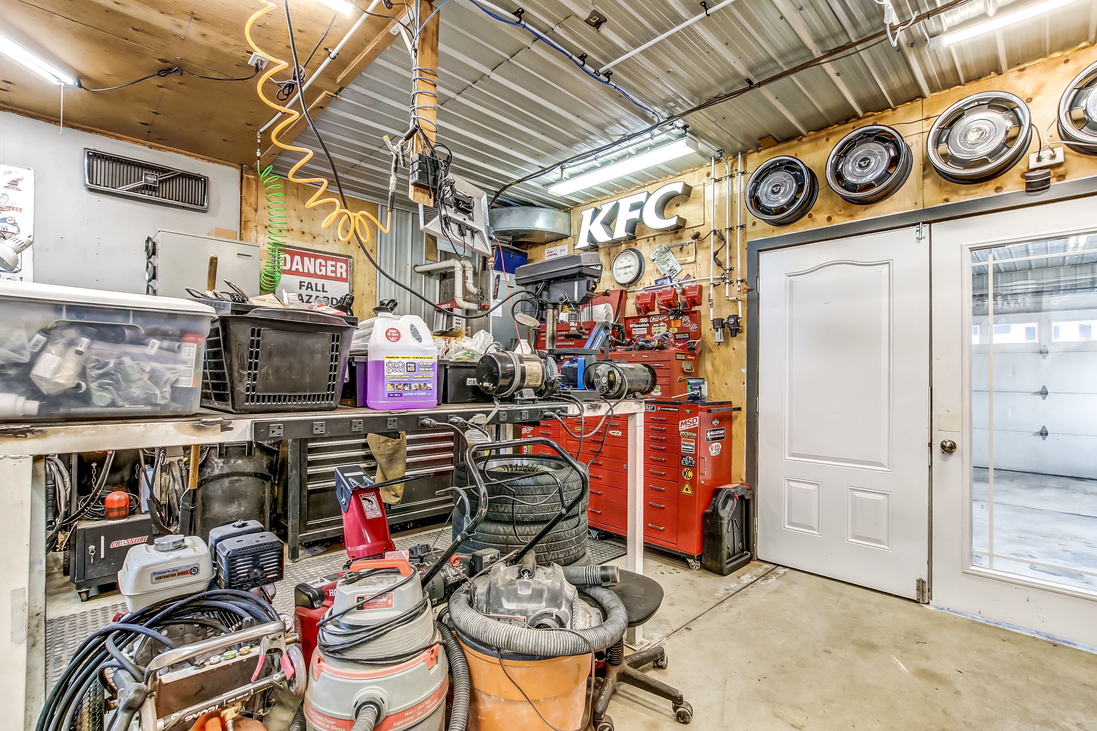 • Spacious heated workshop with separate garage door for easy access.