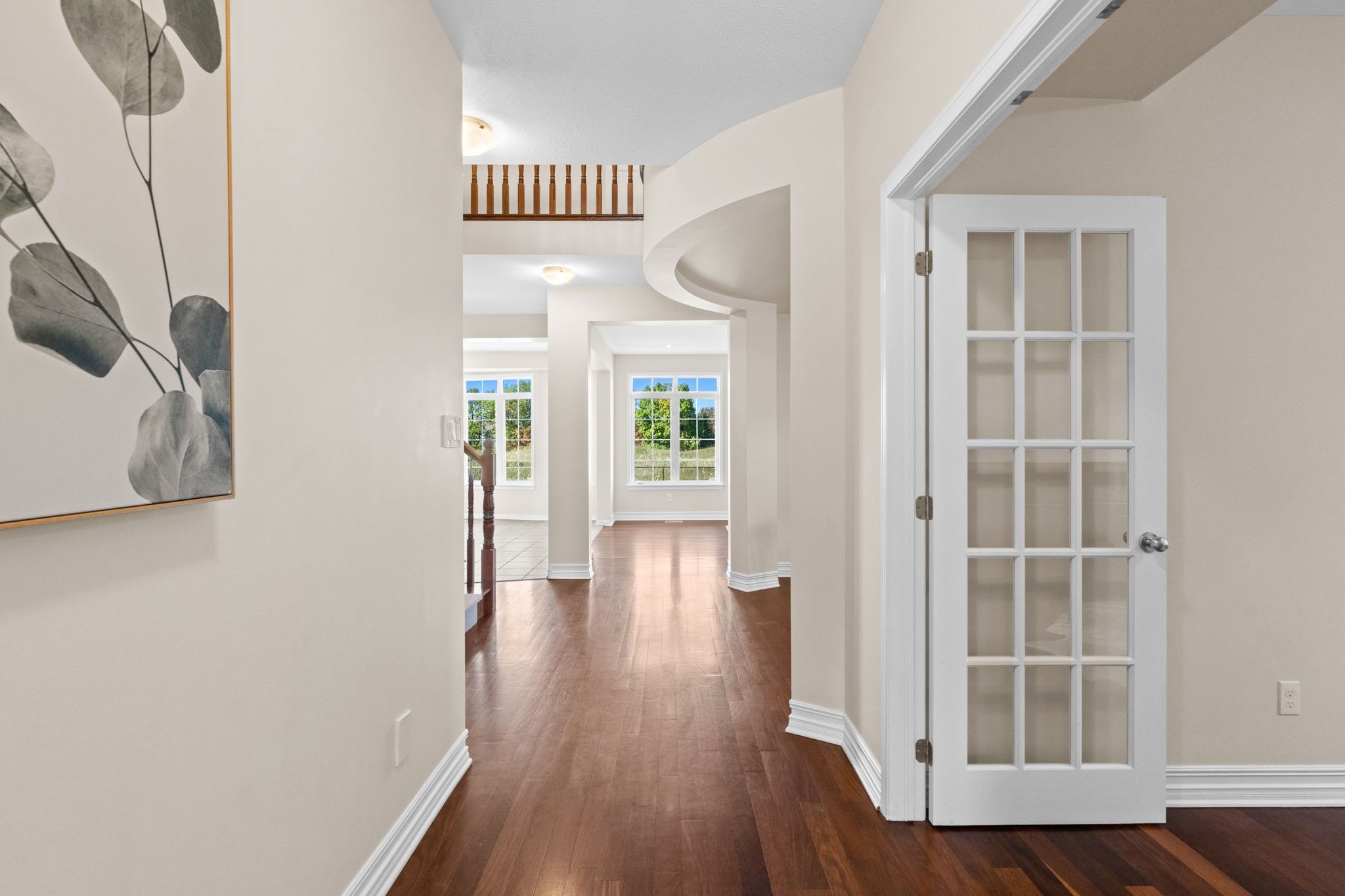 Nestled along the fairway of a prestigious golf course, this beautifully appointed 4-bedroom, 4-bathroom home offers the perfect blend of comfort, elegance, and breathtaking views. The main floor boasts rich hardwood and ceramic tile flooring, creating a warm and inviting atmosphere throughout the open-concept living and dining areas. The fully updated kitchen is a chefs dream, featuring granite countertops, stainless steel appliances, ample cabinetry, and a large center island ideal for entertaining or casual family meals. A bright and spacious main floor office provides a quiet space for work or study. Upstairs, the luxurious primary suite impresses with a generous walk-in closet and a spa-inspired ensuite complete with a soaker tub, separate glass shower, and dual vanities. Three additional bedrooms offer plenty of space for family or guests, accompanied by two additional full bathrooms for added convenience. The beautifully landscaped, fully fenced backyard is a private oasis with a stone patio thats perfect for outdoor dining or relaxing while taking in serene, unobstructed views of the golf course just beyond the fence. This is a rare opportunity to live in a sought-after location where every day feels like a retreat.