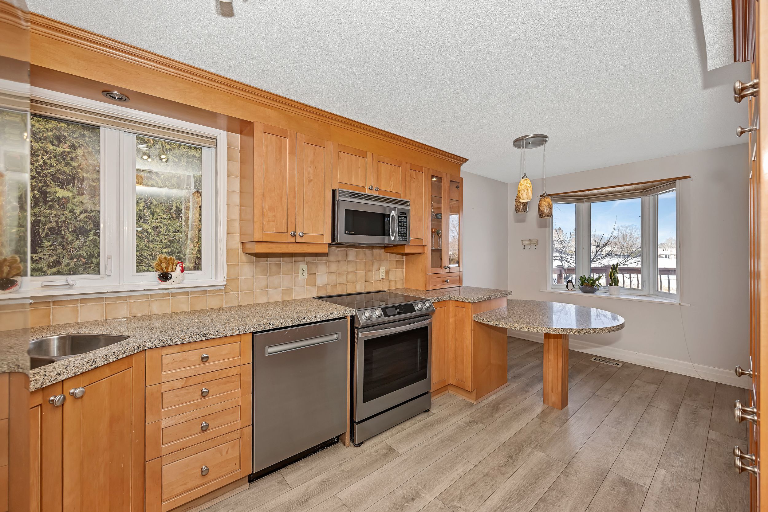 This 3-bedroom, 3-bathroom semi-detached home offers the perfect blend of comfort and location, here's why. The home features an updated kitchen with stainless steel appliances and a bright eat-in area. The spacious living and dining rooms are ideal for entertaining, both overlooking a stylish fireplace wall feature and a large, private backyard. Upstairs, you'll find three generously sized bedrooms, including a primary retreat complete with a walk-in closet and private 3-piece ensuite. The fully finished basement provides excellent flex space, featuring a large family room with a gas fireplace, perfect for cozy movie nights. There is also a dedicated laundry room and additional storage to help keep everything organized. Outside, the tree-lined backyard offers privacy and your own peaceful escape, while the large deck is ideal for enjoying the space to its fullest. Located in a fantastic community, you'll enjoy access to scenic walking trails along the ottawa river, décarie park directly across the street, and multiple green spaces just a short walk away. Both elementary schools are within walking distance, and you're only a 15-minute walk to the future lrt station, making commuting a breeze.