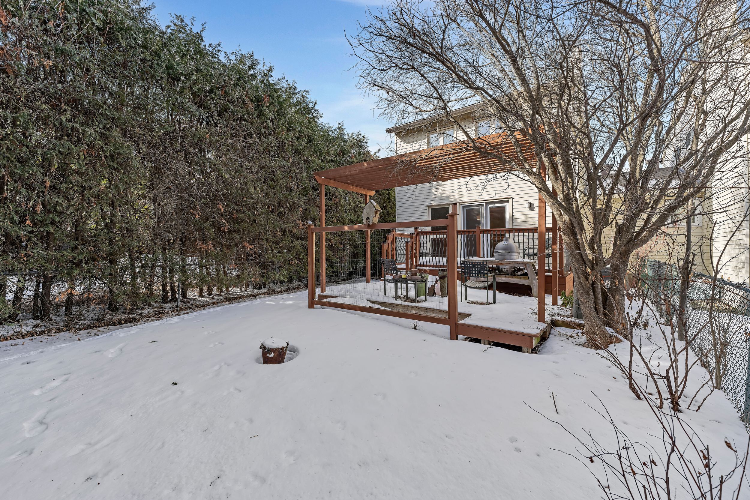 • Private tree-lined backyard with a large deck for outdoor enjoyment.