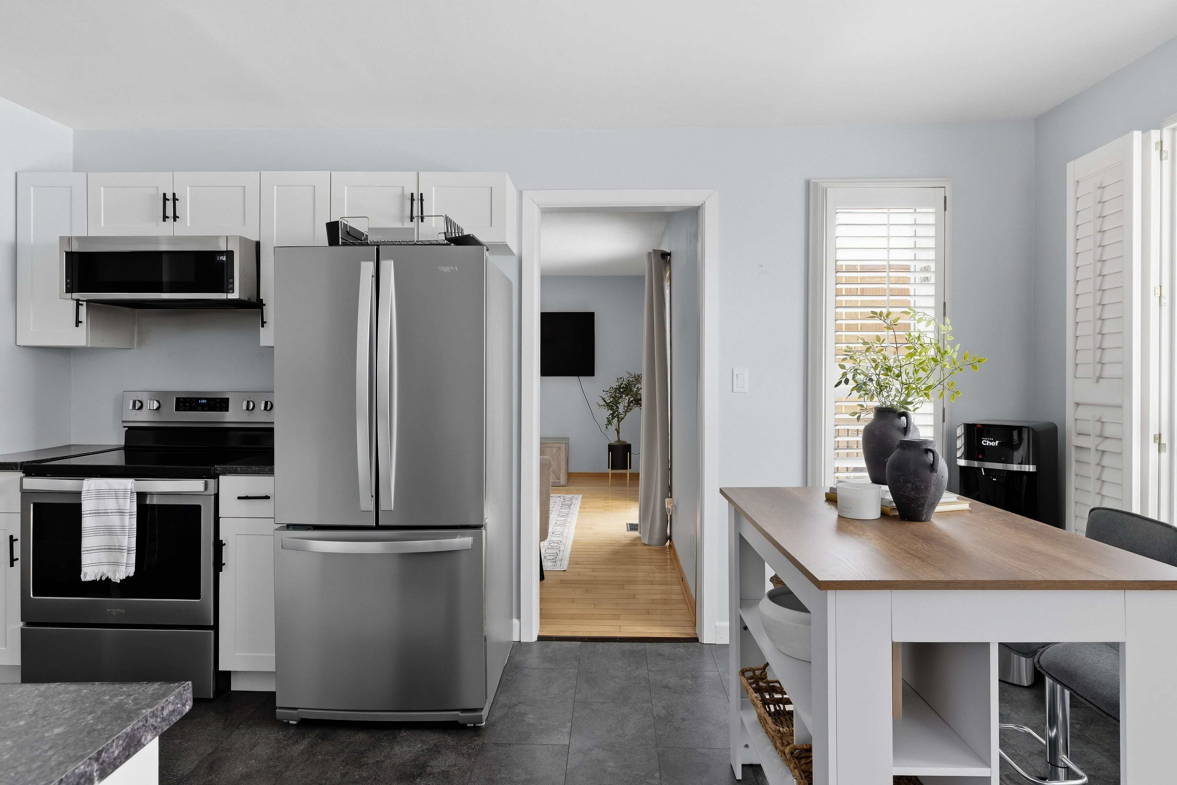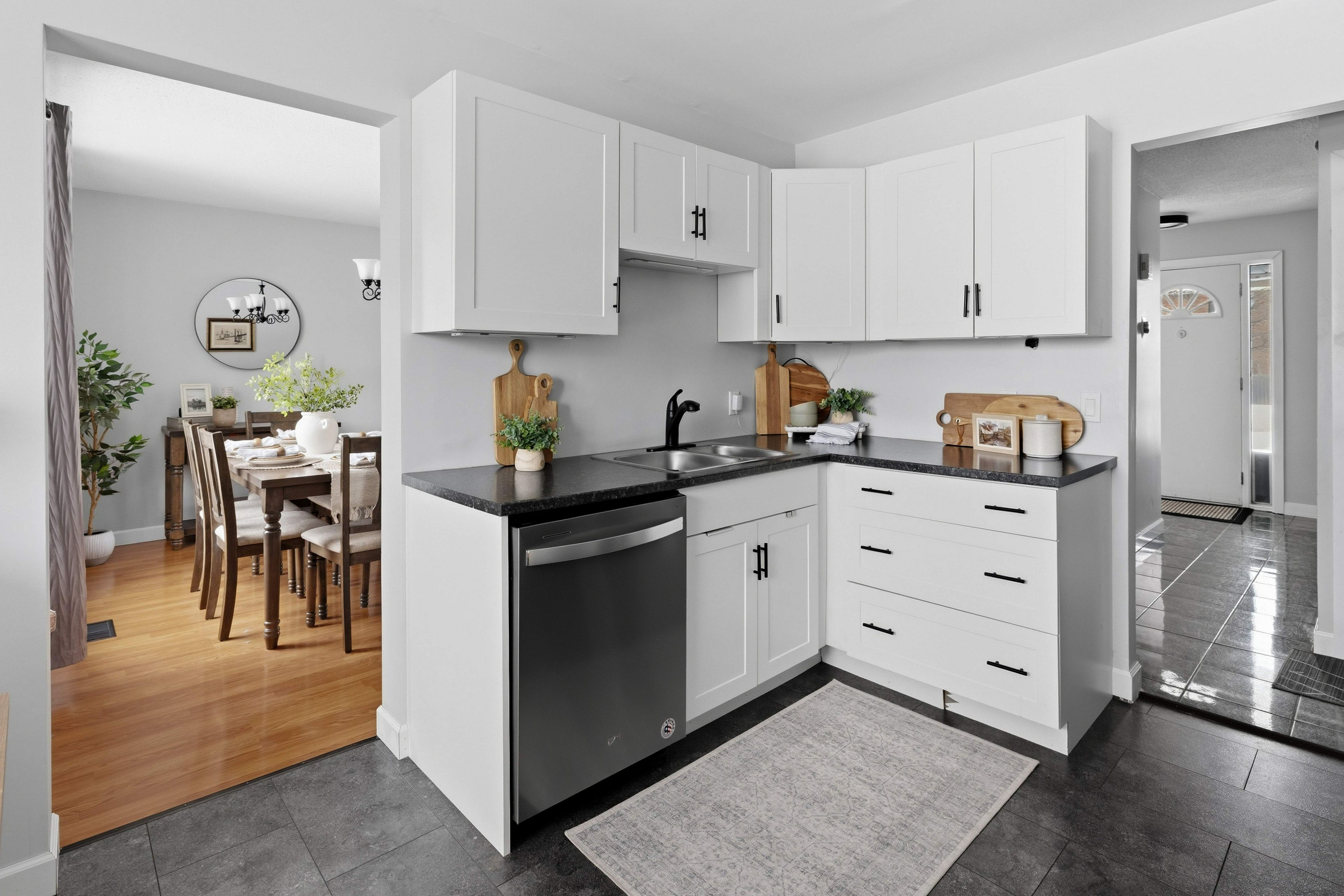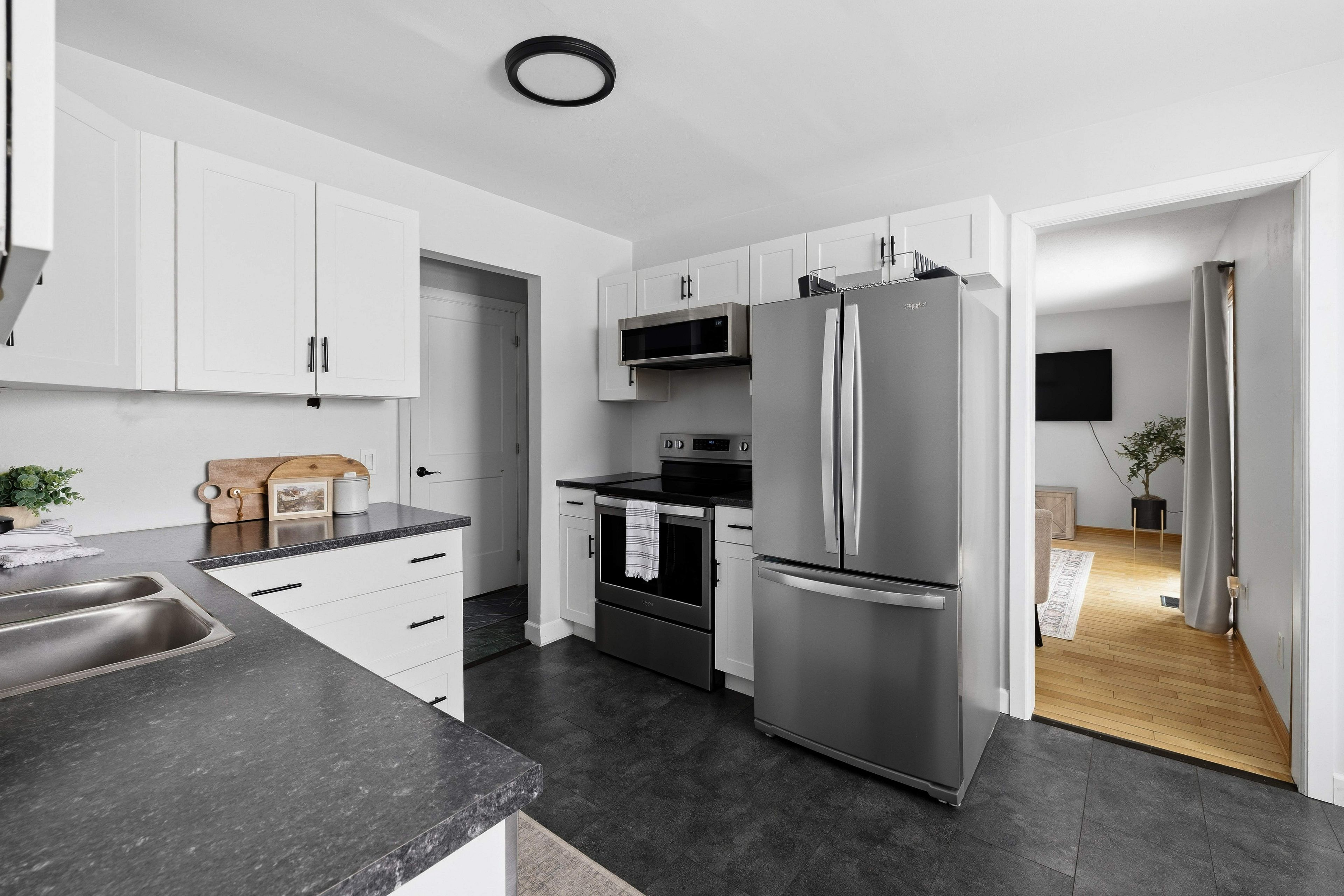 • Renovated kitchen with new flooring and appliances for modern functionality.