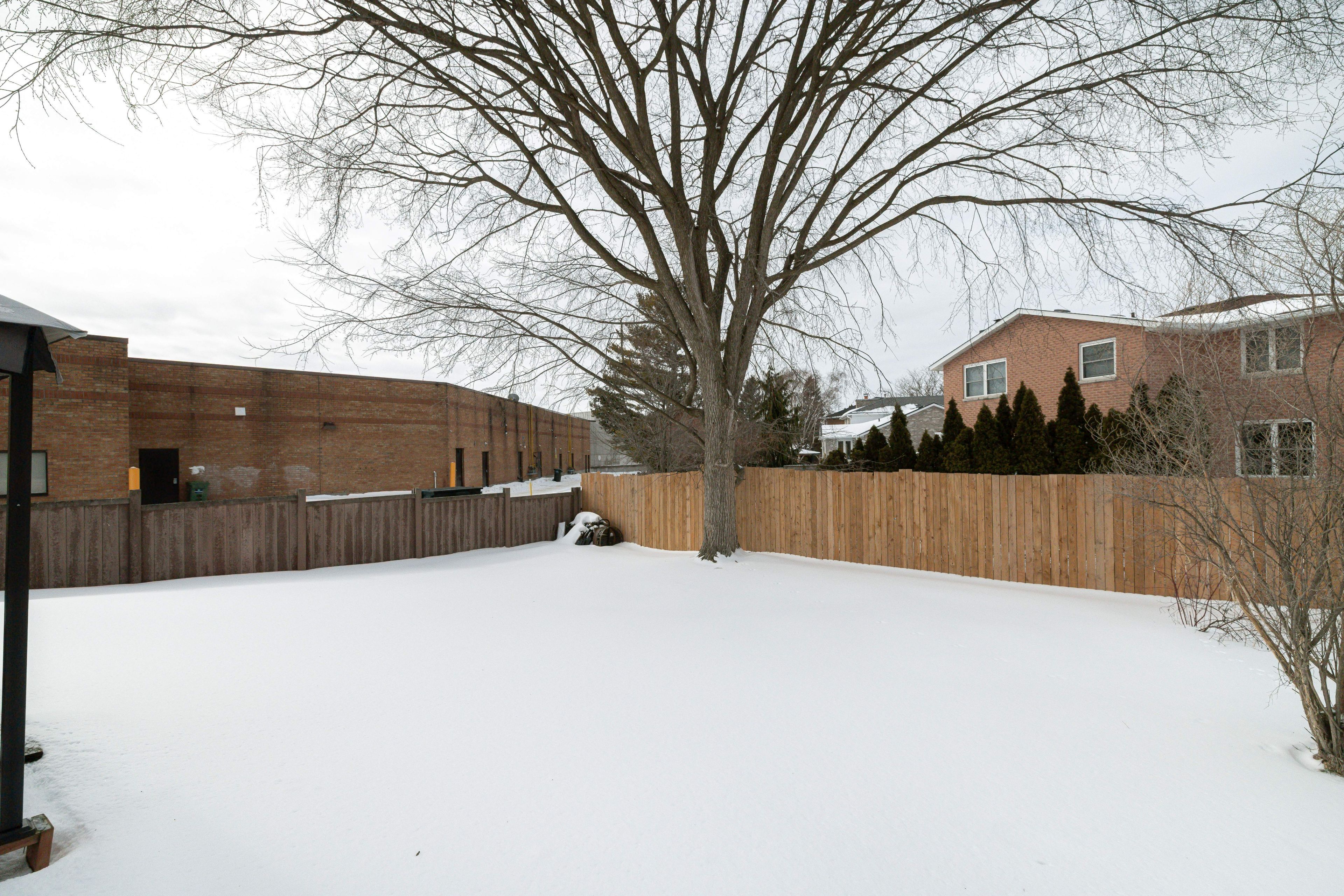 • Partially fenced yard providing play space for kids and pets.