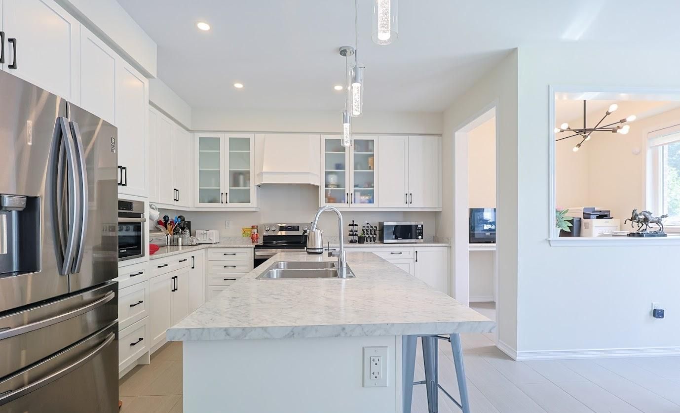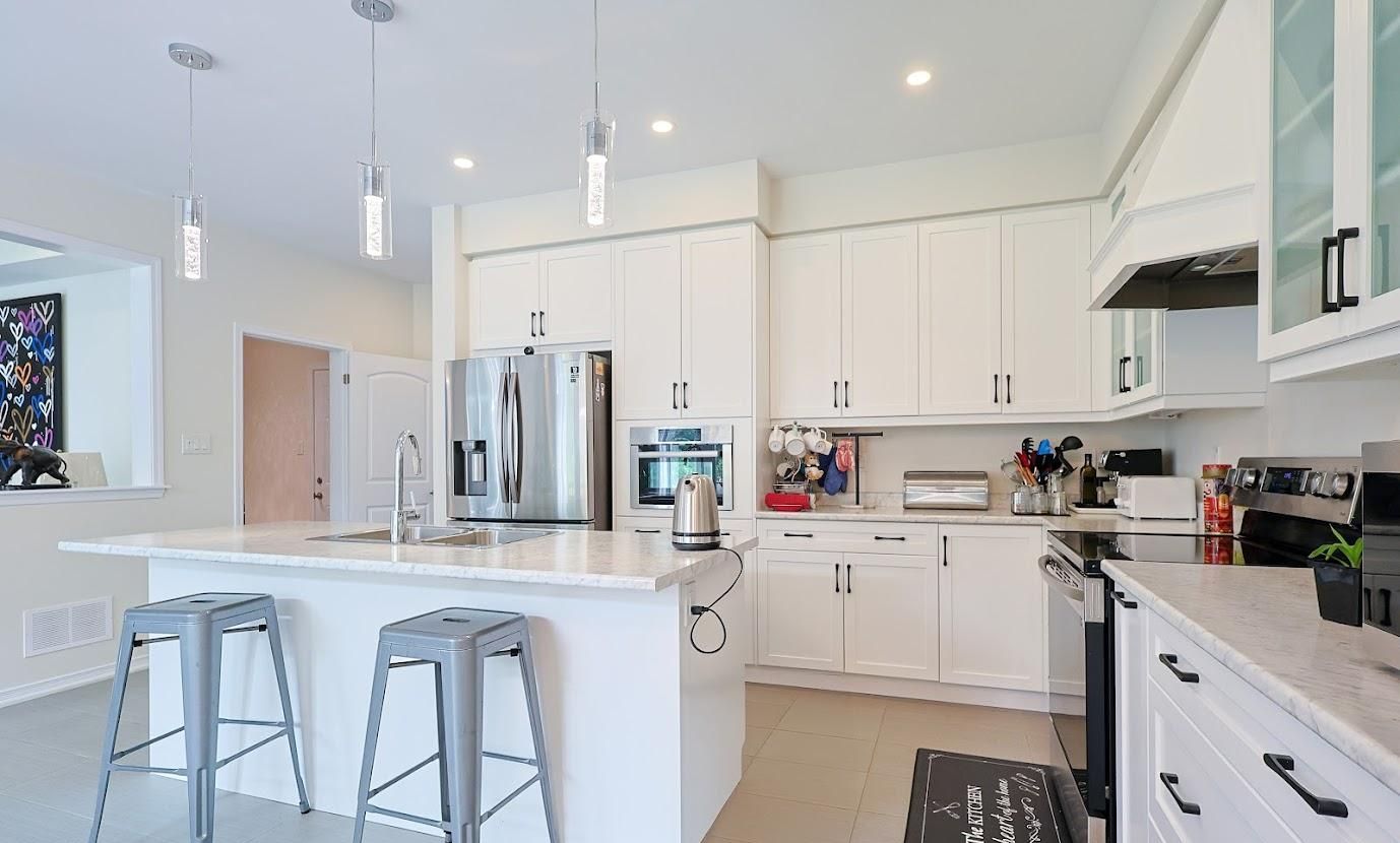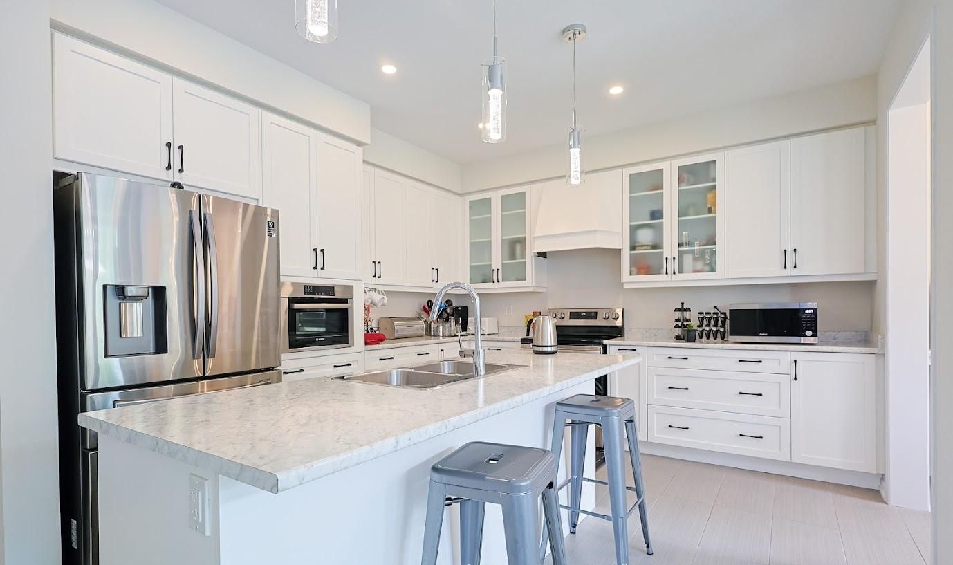 Welcome to this beautifully maintained, less-than-four-year-old home situated on a wide, pie-shaped premium lot backing onto a scenic ravine. This all-brick home boasts a premium finish and exceptional curb appeal in a quiet, family-friendly neighborhood. Inside, you'll find a custom-built kitchen with upgraded cabinetry, high-end flooring, and premium interior doors throughout. The open-concept layout seamlessly connects the kitchen, dining, and living areas, featuring a cozy gas fireplace and large glass doors that open to the backyard deck-perfect for entertaining or relaxing outdoors. Natural light floods the space through large windows, including legal egress windows in the basement that offer future development potential. Off the kitchen, there's a versatile room that can serve as a walk-in pantry or a private home office. A convenient powder room completes the main floor. Upstairs, you'll find four generously sized bedrooms, including a luxurious primary suite with a walk-in closet and a4-piece ensuite bathroom. The second floor also features a separate laundry room for added convenience. The full, unfinished basement includes a rough-in for a future bathroom and a cold room, offering endless possibilities for customization-whether it's a home gym, additional living space, or an in-law suite. Outside, enjoy a private backyard enclosed by a vinyl privacy fence and surrounded by well-maintained landscaping and lush green grass.