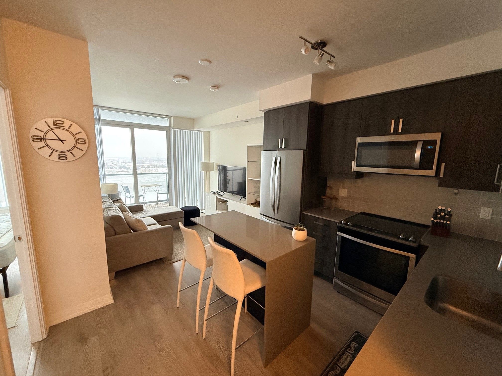 Fully furnished- 1 bedroom + den & 2 bathroom(s) unit at the met residence. Open concept floor plan- spacious layout with beautiful open view, floor to ceiling windows. Modern kitchen with integrated appliances, large balcony. 9' high ceilings. Excellent high demand location- close to all amenities and vaughan subway station. Underground parking and locker included!! 24 hour security. Long term lease available
