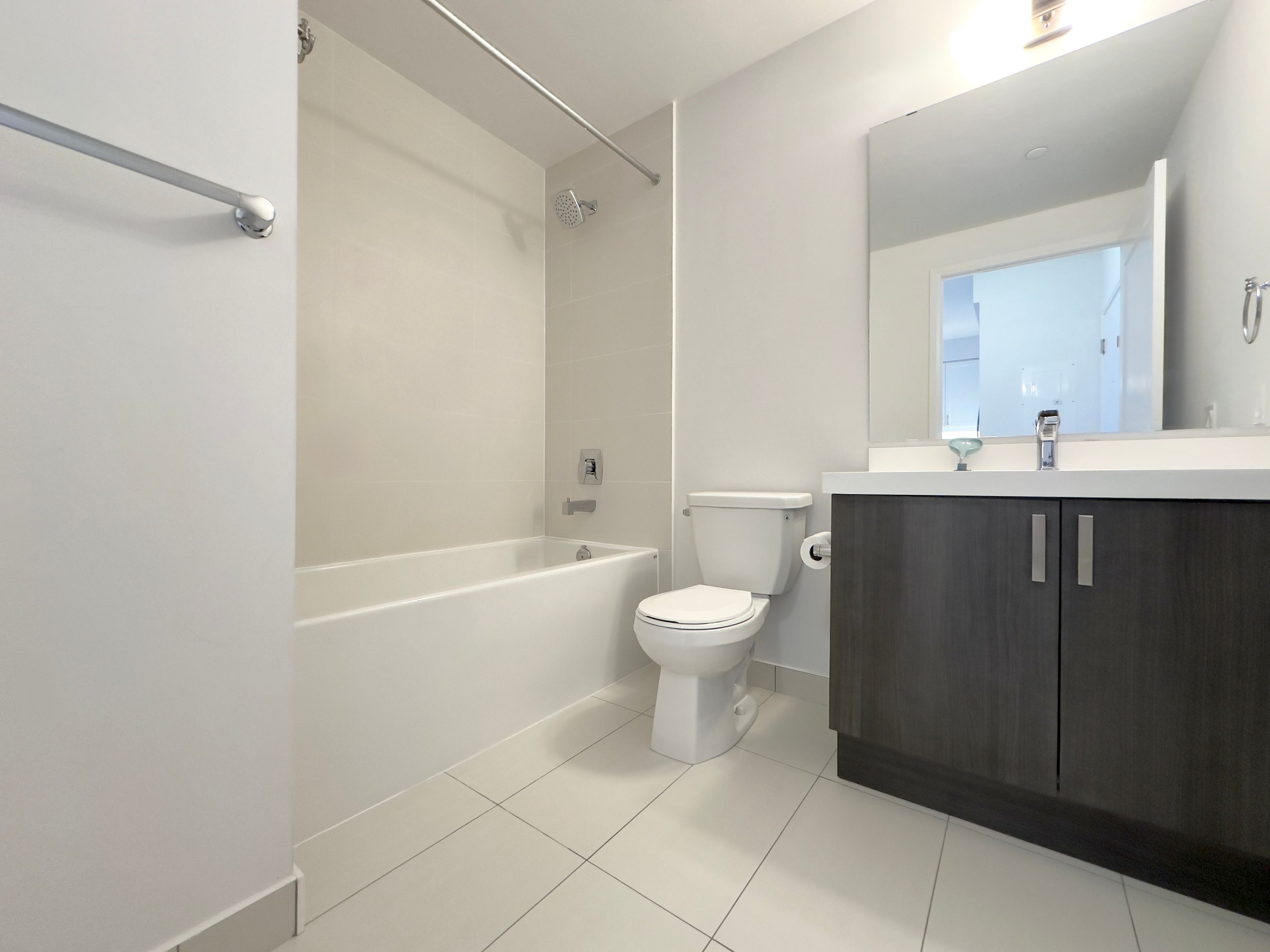 This bright and modern 2-bedroom, 2-bathroom suite offers 649 sq. Ft. Of thoughtfully designed living space plus a spacious 170 sq. Ft. Balcony, perfect for enjoying city views. The open-concept layout is filled with natural light from large windows and features a stylish kitchen complete with quartz countertops and stainless steel appliances. Unbeatable location just steps to the vmc subway and bus terminal, providing quick access to downtown toronto and beyond. Minutes to highways 400 & 407, shopping, grocery stores, restaurants, york university, and vaughan mills mall. Enjoy the convenience and security of 24/7 concierge service, plus 1 parking space and 1 locker included. Amenities include a gym, sauna, games room, party room & more!