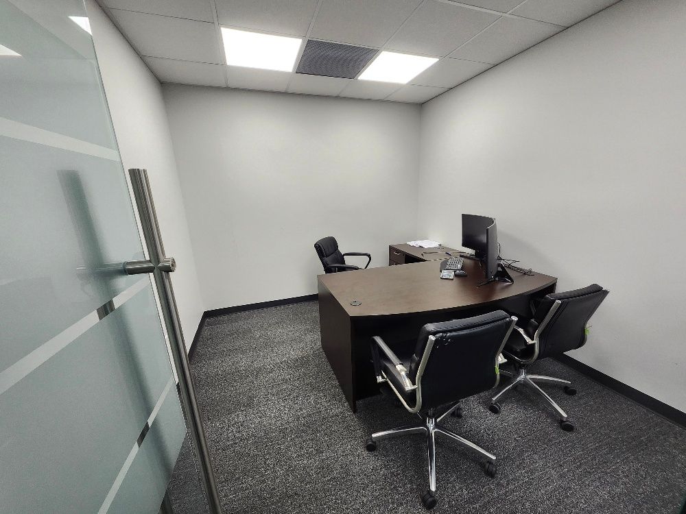 *nicely appointed private offices for lease within a professional office suite *four offices available to choose from, each featuring modern glass walls that provide a bright and professional work environment *offices come fully furnished with desk, desk chair, and two guest chairs, offering a convenient turnkey setup *utilities included in the monthly rate for simple, predictable costs *tenants also enjoy access to a shared reception/waiting area and shared kitchenette facilities *ideal for consultants, professionals, or small business operators *just move-in and start working