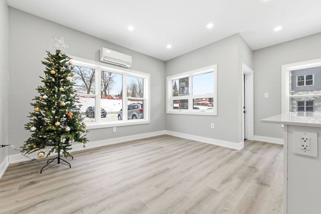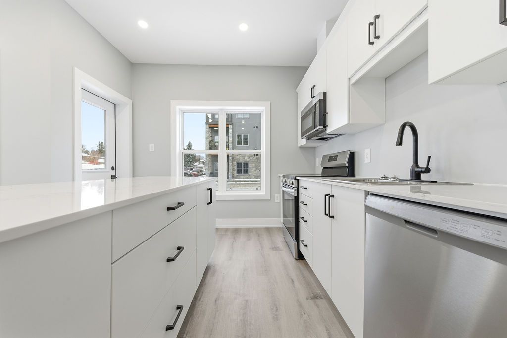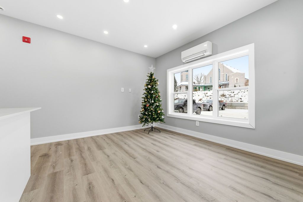 For rent; a stunning brand new accessible two bedroom one and a half bath apartment in eganville, perfect for seniors or professionals seeking a low-maintenance lifestyle. This main floor unit in an elevator serviced, secure building offers convenient walk out access to a private patio with lovely views of the valley. The primary bedroom features a walk in closet, wonderful tiled ensuite bath with walk in shower. The modern white kitchen with elegant black trim and subway tiled backsplash is more than you would expect to see in an apartment and the granite counters makes this the talk of the town. All kitchen major appliances are included and each unit has its own laundry hook-up, hrv system, full sized hot water tank and heat pump for your individually controlled a/c. In floor heating that is controlled in each unit is included in your rent as is water, sewer and parking. Hydro and internet/ phone is the tenants responsibility. Eganville is a great family friendly community surrounded by nature!
