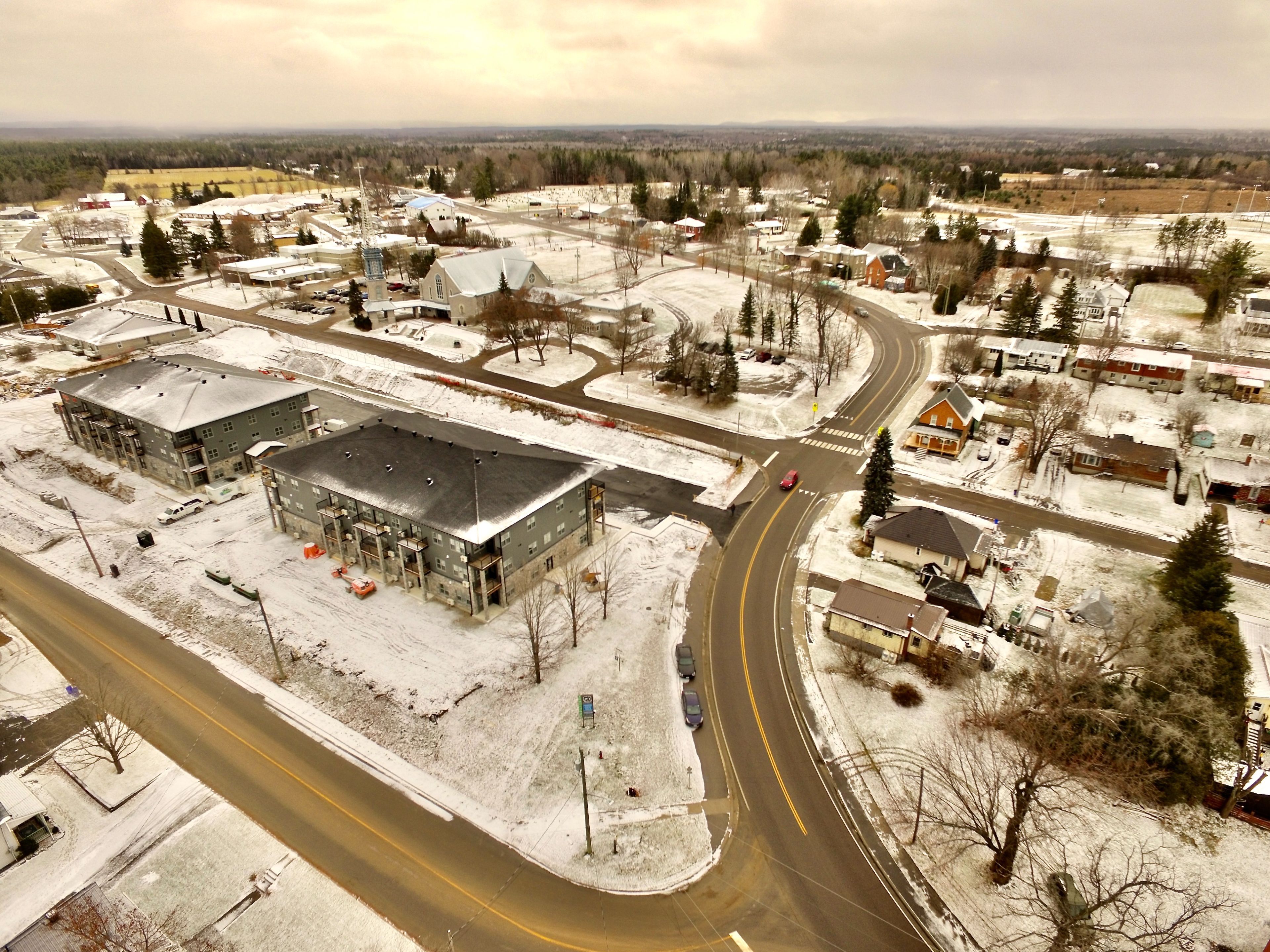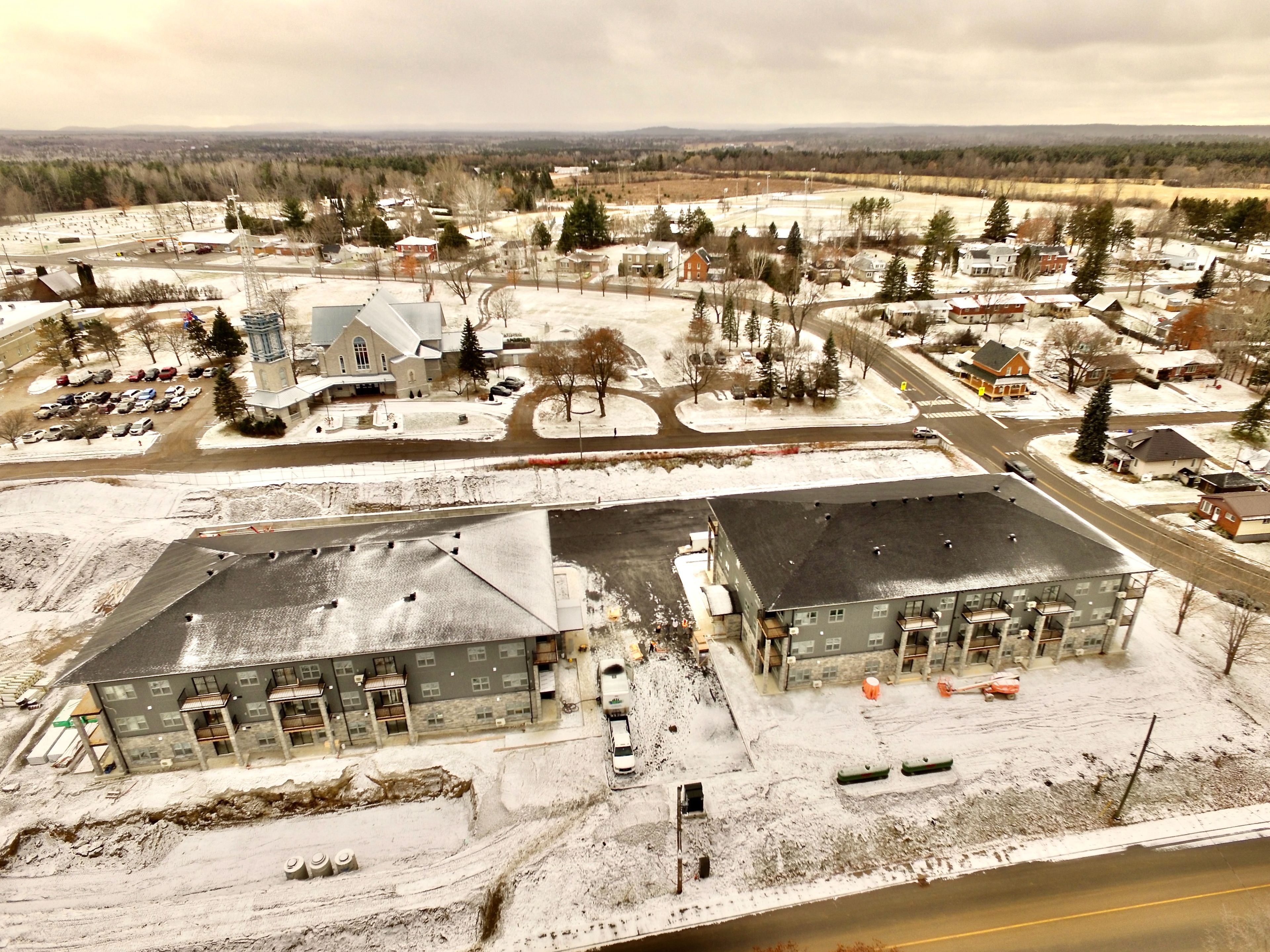 For rent; a stunning brand new one bedroom plus den, one full bath apartment in eganville, perfect for seniors or professionals seeking a low-maintenance lifestyle. This main floor unit in an elevator serviced, secure building offers convenient walk out access to a private patio with lovely views of the valley. The bedroom features a walk in closet. Bathroom is wall to wall tile with walk in shower. The modern white kitchen with elegant black trim and subway tiled backsplash is more than you would expect to see in an apartment and the granite counters makes this the talk of the town. All kitchen major appliances are included and each unit has its own laundry hook-up, hrv system, full sized hot water tank and heat pump for your individually controlled a/c. In floor heating that is controlled in each unit is included in your rent as is water, sewer and parking. Hydro and internet/ phone is the tenants responsibility. Eganville is a great family friendly community surrounded by nature!