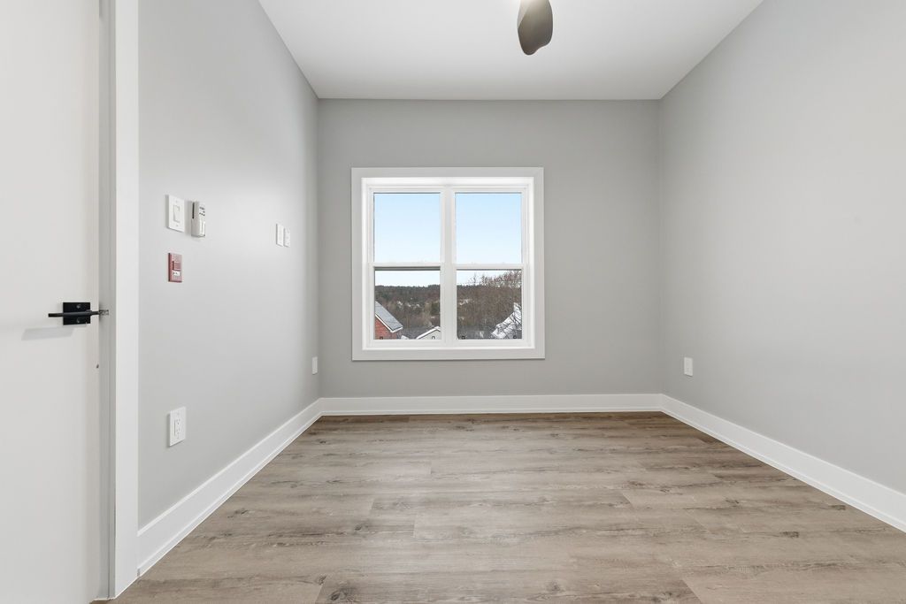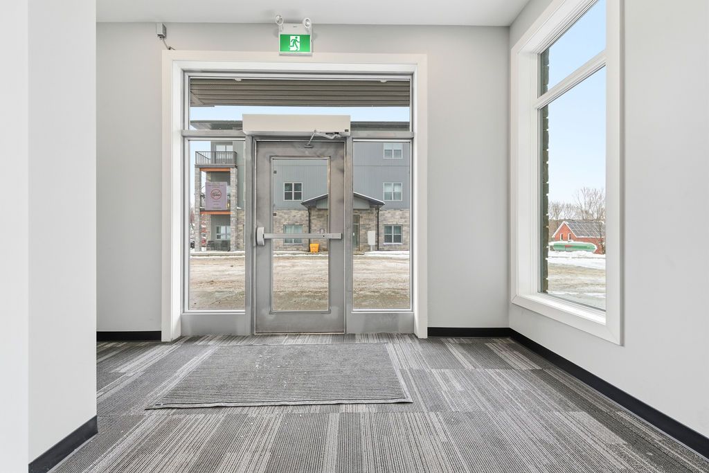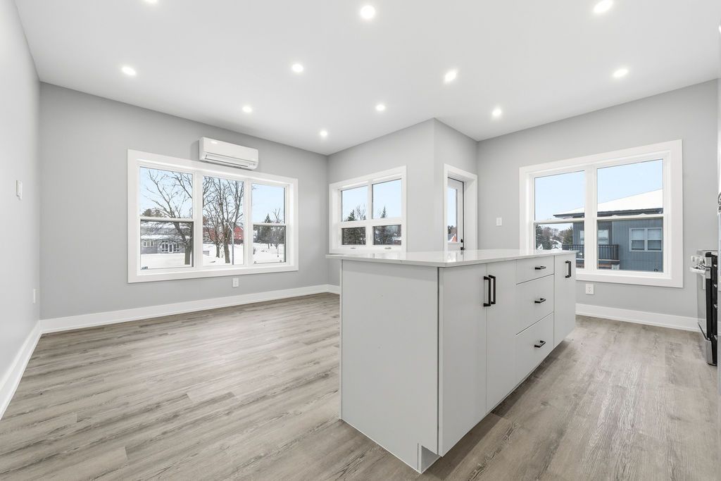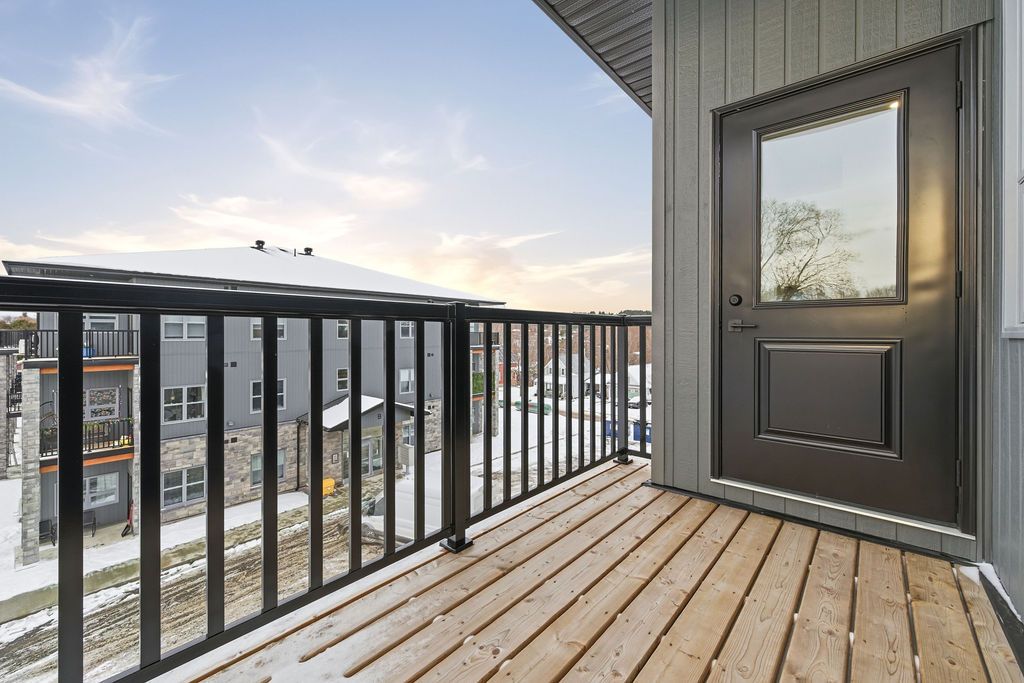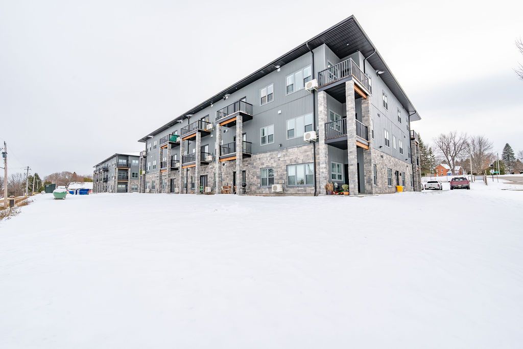 For rent; a stunning brand new two bedroom two full bath apartment in eganville, perfect for seniors or professionals seeking a low-maintenance lifestyle. This third floor unit in an elevator serviced, secure building offers a private balcony with lovely views of the valley. The primary bedroom features a walk in closet, wonderful tiled ensuite bath with walk in shower. The second bedroom is generous for guests who also have a full bath with tub and shower for their convenience. The modern white kitchen with elegant black trim and subway tiled backsplash is more than you would expect to see in an apartment and the granite counters makes this the talk of the town. All kitchen major appliances are included and each unit has its own laundry hook-up, hrv system, full sized hot water tank and heat pump for your individually controlled a/c. In floor heating that is controlled in each unit is included in your rent as is water, sewer and parking. Hydro and internet/ phone is the tenants responsibility. Eganville is a great family friendly community surrounded by nature!