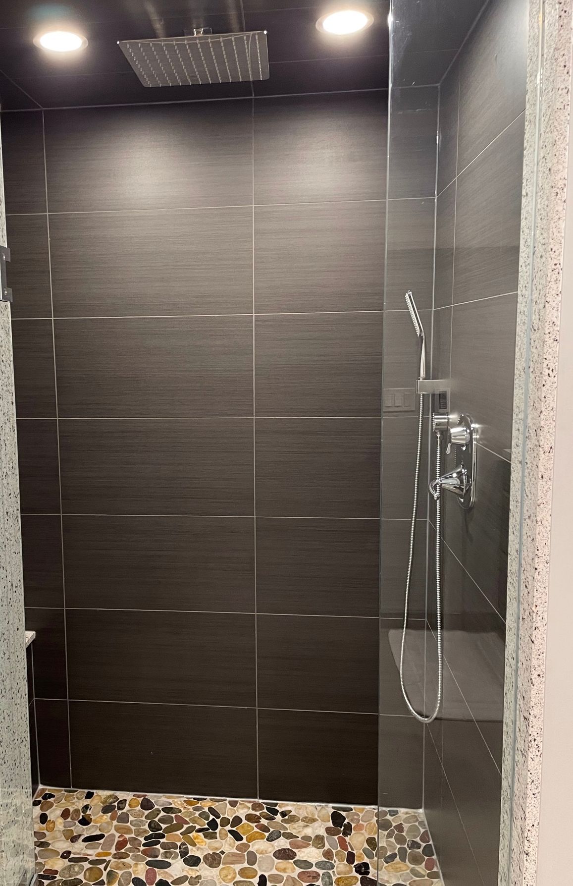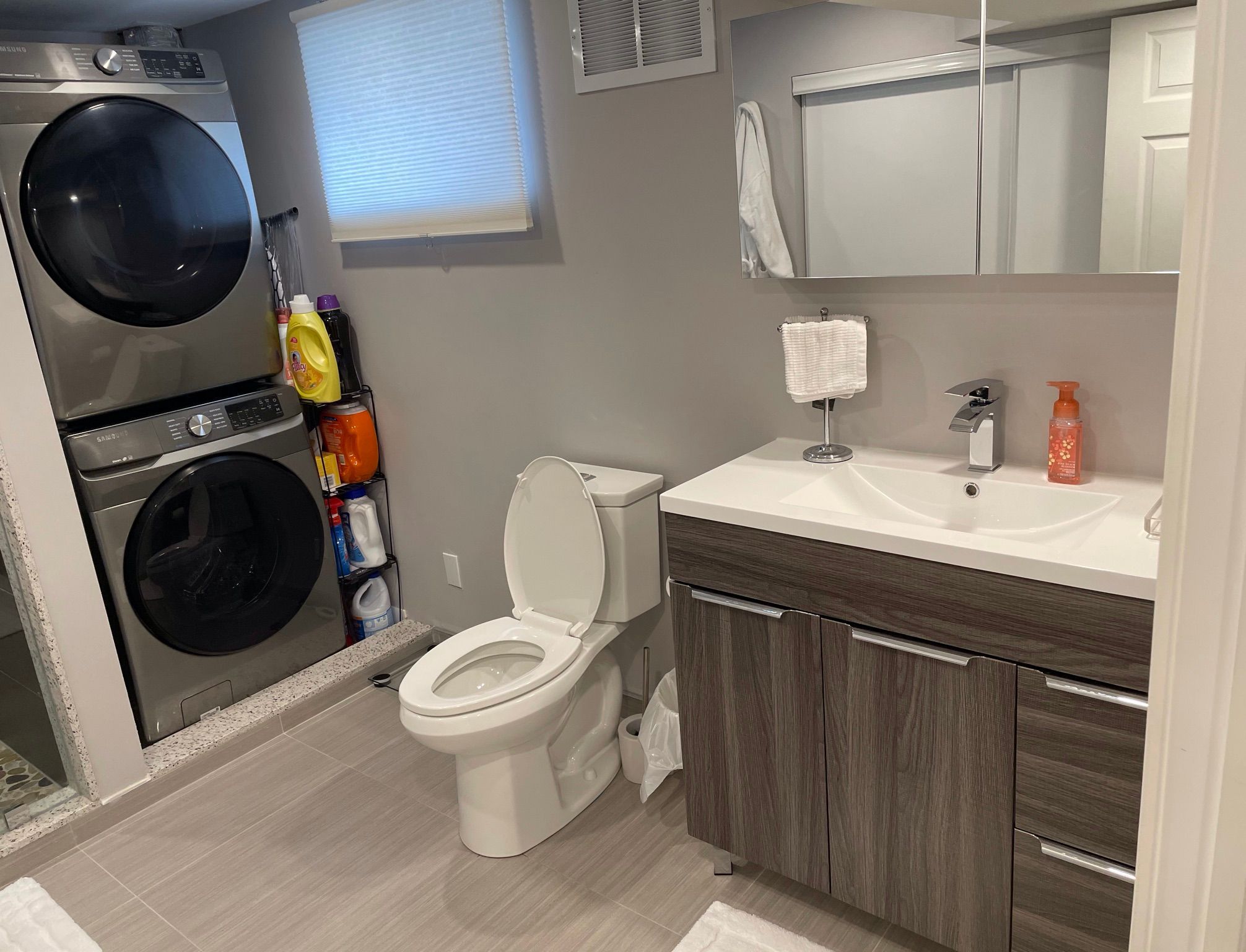 • Spacious updated bathroom with modern finishes.