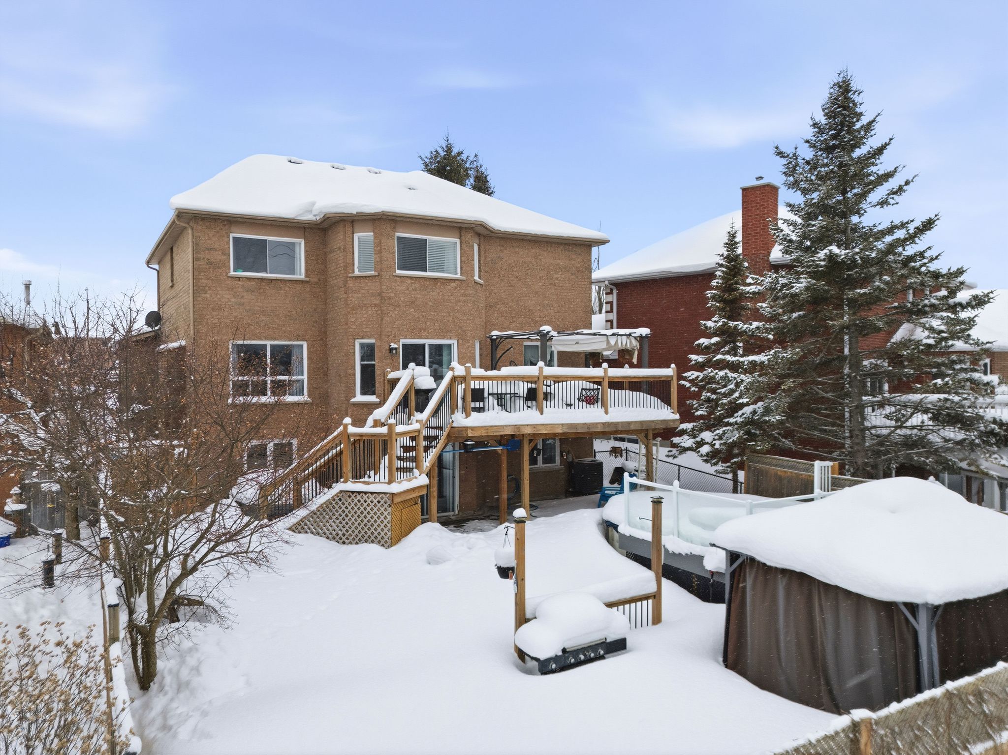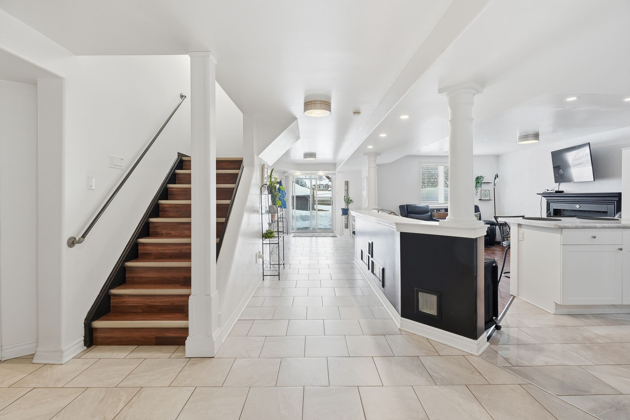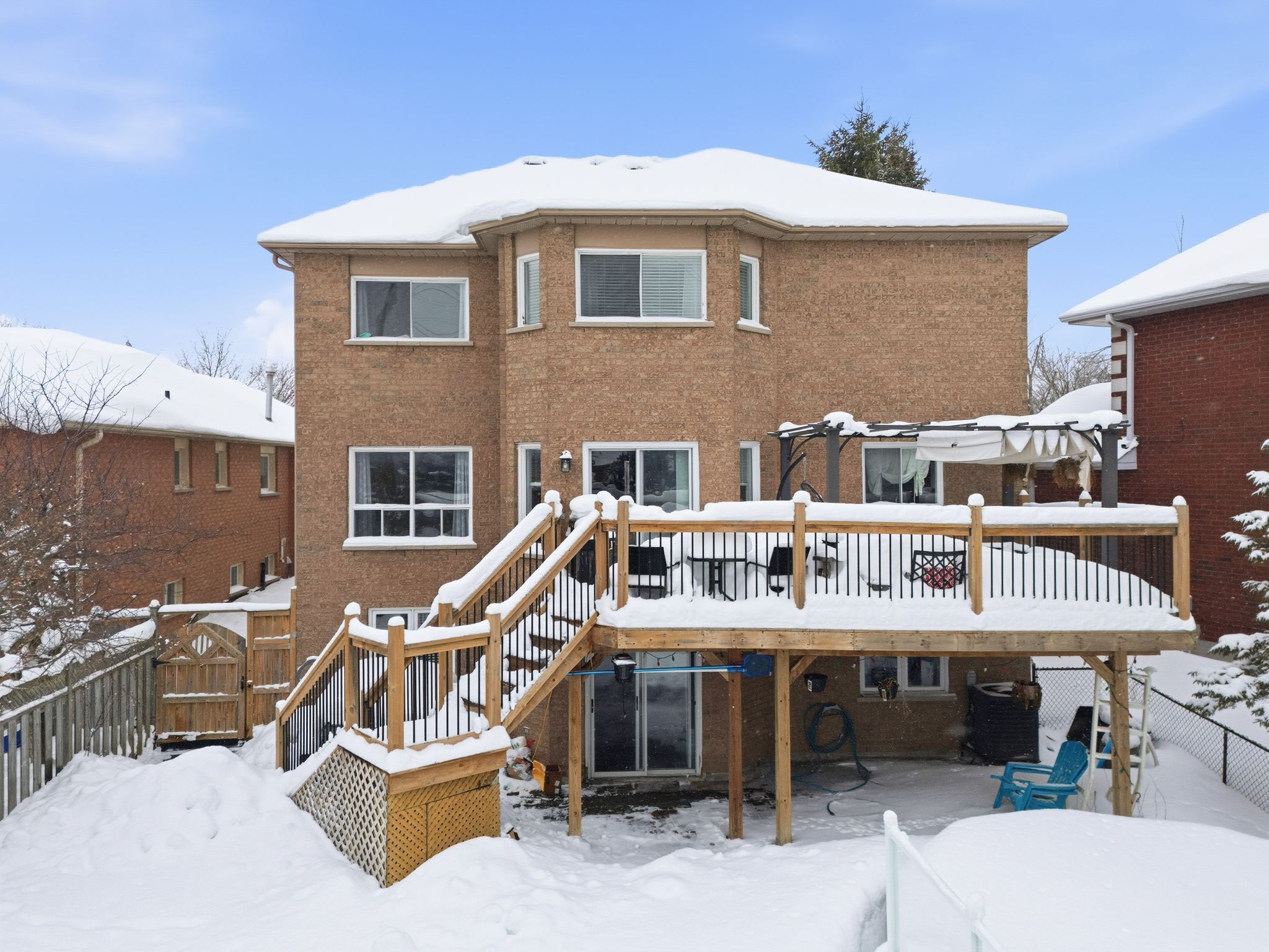 Welcome to a home that actually works for real family life. Tucked away on a quiet street in barrie's ardagh neighbourhood, this spacious home is made for busy mornings, big family dinners, and relaxed evenings spent together. The main floor offers a fantastic layout designed for everyday family life, featuring a spacious eat-in kitchen, dining room, and two comfortable living areas, one with a cozy gas fireplace. Main floor laundry and inside access to the garage add everyday convenience, while the beautiful hardwood staircase with elegant spindles creates a stunning first impression. Upstairs, you'll find four generously sized bedrooms, including a relaxing primary retreat with a spa-inspired ensuite and soaker tub. The walk-out lower level in-law suite is ideal for extended family, teens, or guests, offering two additional bedrooms, a spacious living area with a new gas fireplace, a kitchen added in 2020, a bathroom with an added shower, and its own separate side entrance. Outside, the backyard is made for family fun, featuring an impressive two-storey deck for entertaining and an above-ground pool with surrounding deck-perfect for summer days spent together. Ideally located near schools, parks, shopping, groceries, and highway access, this home provides a well-designed layout and ample space for family life.