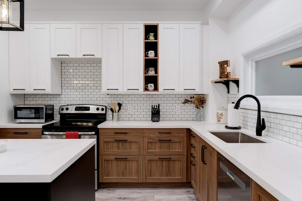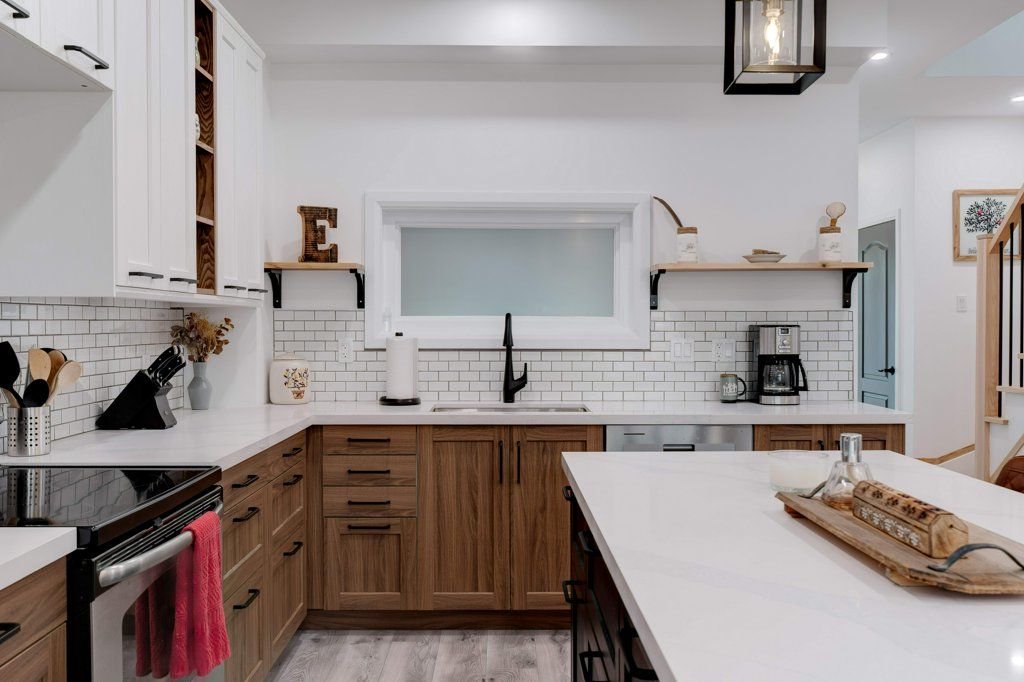 • Custom kitchen with high-end finishes and unique architectural features.