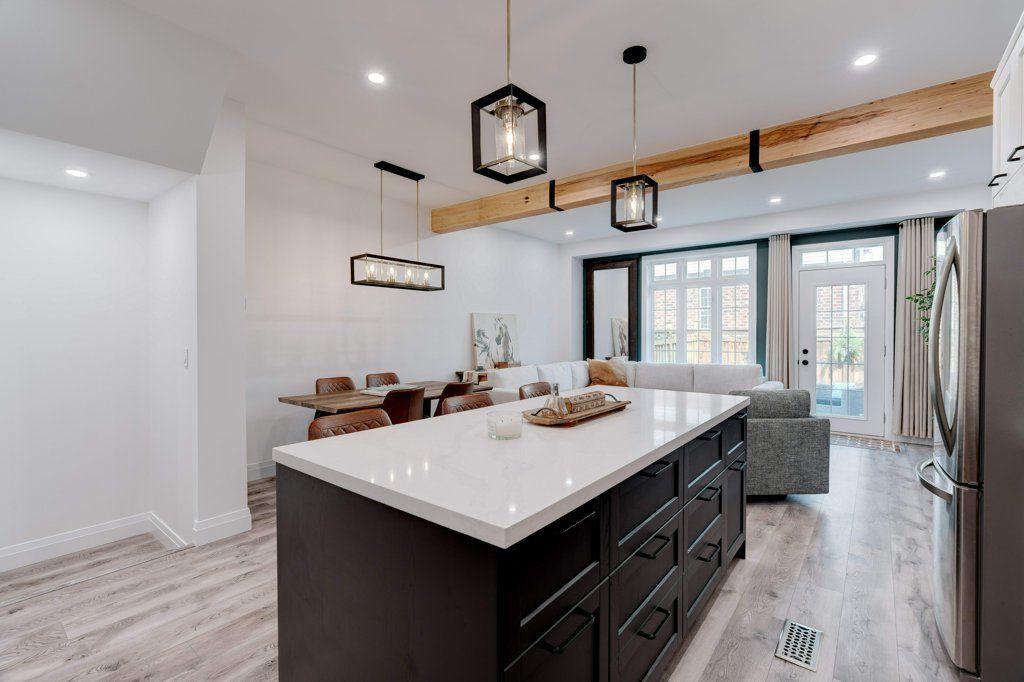 This beautifully upgraded freehold townhome in the heart of waterdown delivers an exceptional blend of modern design, everyday comfort, and unbeatable convenience. Bathed in natural light, the home feels bright and inviting throughout, with a striking central skylight that fills the upper level with warmth. Completely renovated with permits in 2022, the thoughtfully reimagined layout offers seamless open-concept living that effortlessly connects indoor and outdoor spaces-ideal for both family life and entertaining. At the centre of the home is a stunning custom kitchen, completed in 2023, combining style and functionality with high-end finishes. A handcrafted hickory-clad beam adds character, while the custom staircase and railings create a standout architectural feature. Organization is elevated with built in custom california closets installed in every bedroom and the upper-level laundry area, ensuring practical, well-designed storage throughout. Extensive upgrades provide both comfort and peace of mind, including a new roof in 2023 with a 40-year warranty, updated flooring, carpet, trim, and fresh paint. Roxul safe 'n' sound insulation has been added to the main floor ceiling, interior walls, and party walls for enhanced privacy and quiet. The ducts and furnace were professionally cleaned in 2023, completing the home's comprehensive list of improvements. Outside, professionally landscaped yard feature low-maintenance turf in the back, offering year-round greenery with minimal upkeep. Perfectly situated close to schools, parks, trails, the ymca, shopping, dining, and vibrant downtown waterdown, this home also provides quick access to aldershot go station and major highways including the qew, 403, 407, and highway 6. Stylish, turnkey, and impeccably maintained, this is a rare opportunity to own in one of waterdown's most sought-after communities. Rsa.