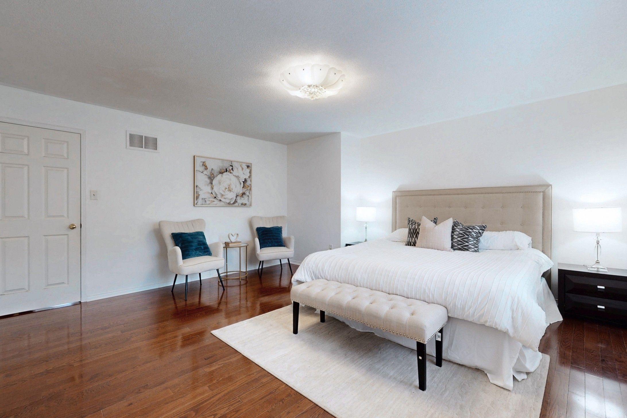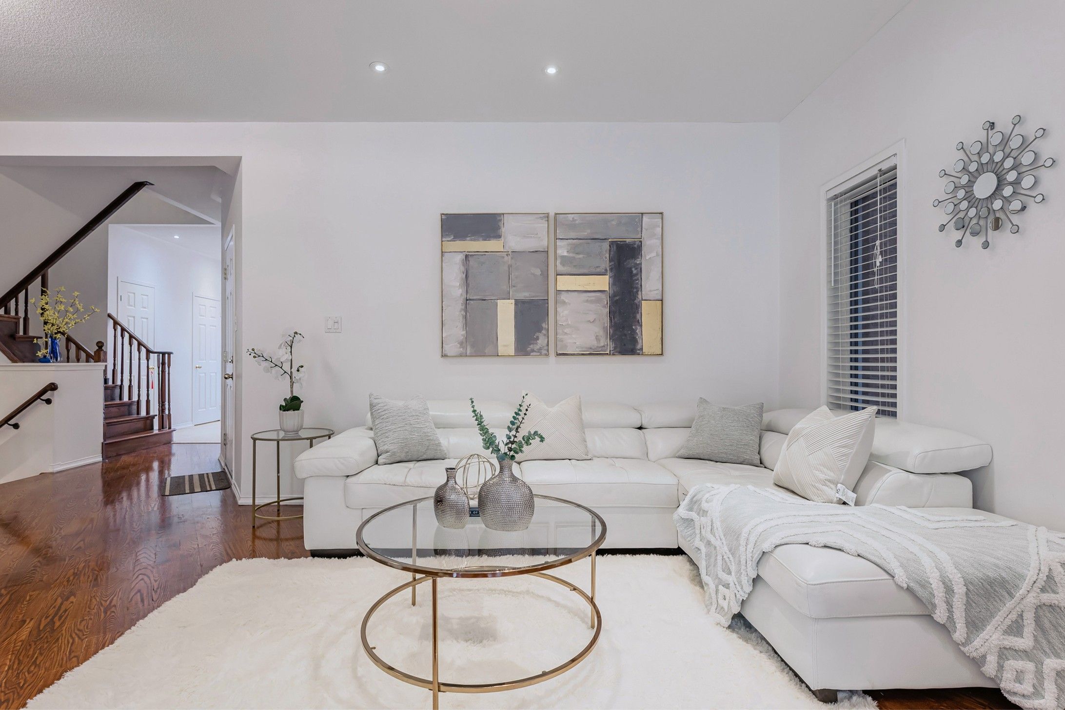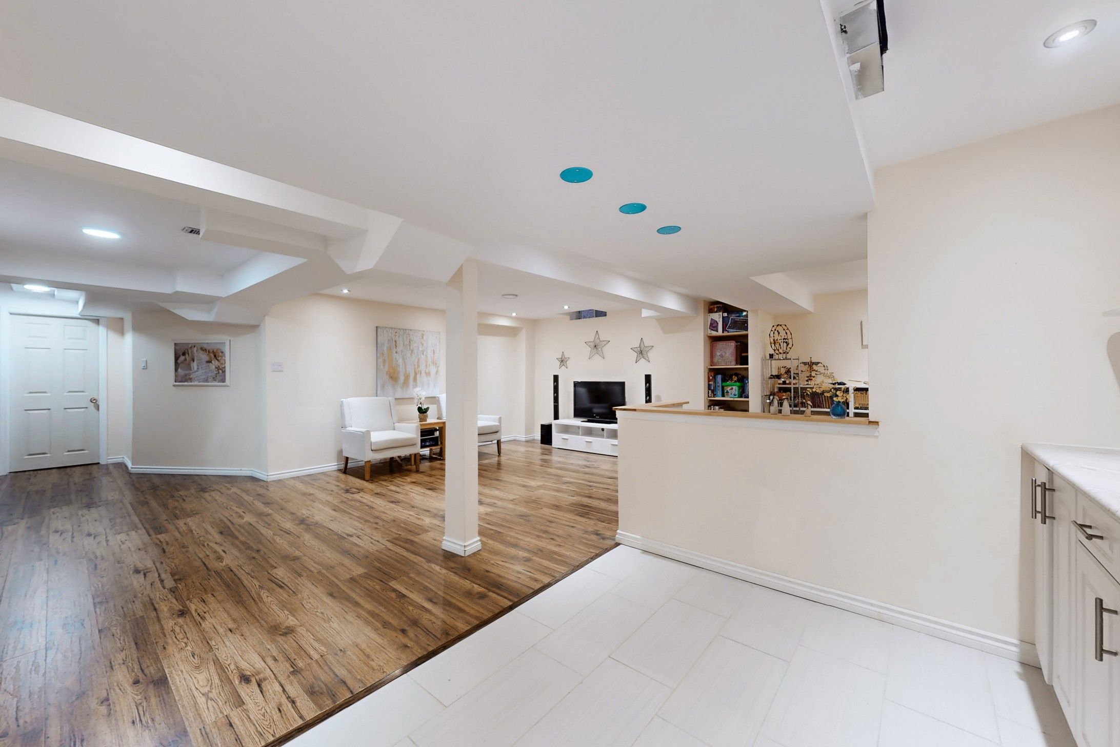 • Bright open-concept layout with 9 ft ceilings and hardwood floors throughout.