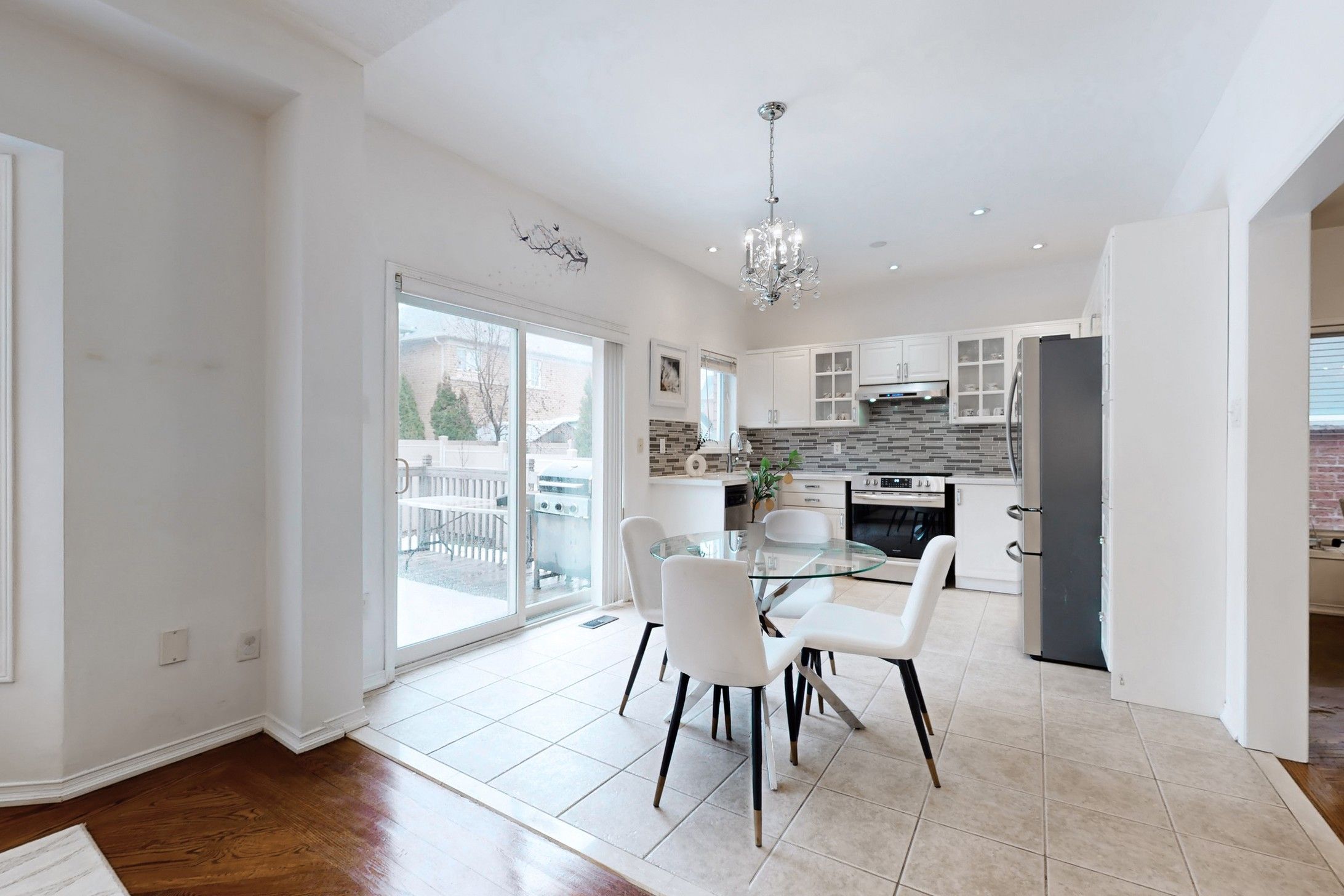 • Spacious kitchen features granite countertops and walk-out to a wood deck.