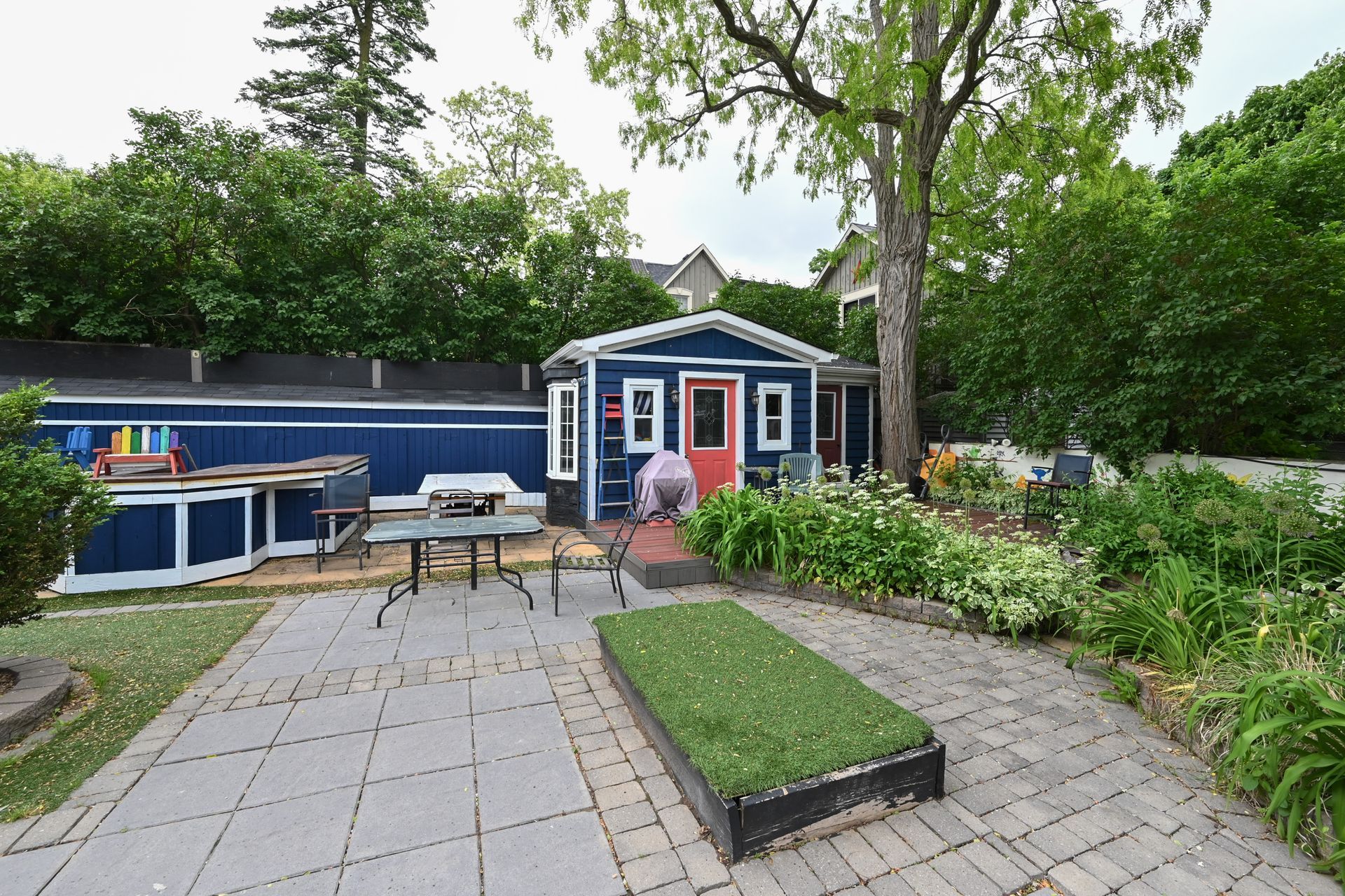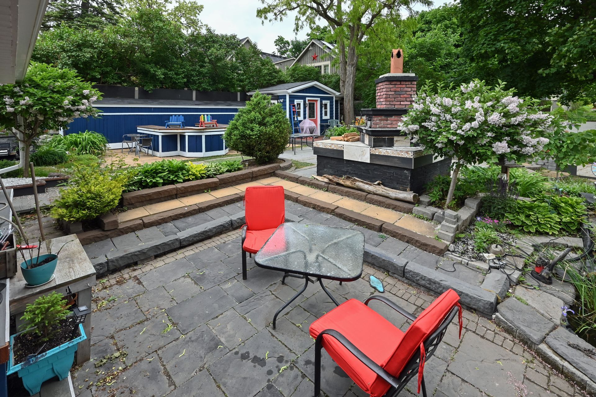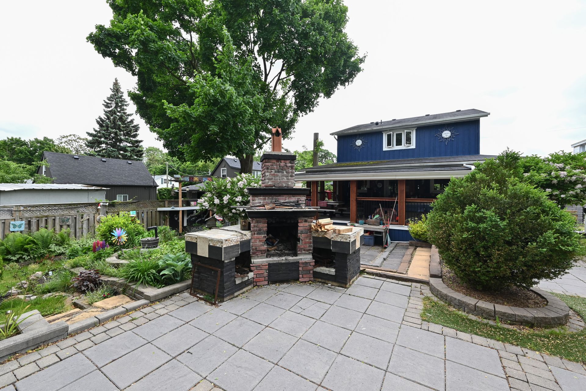 • Expansive lot featuring a backyard with a fireplace and oversized deck.