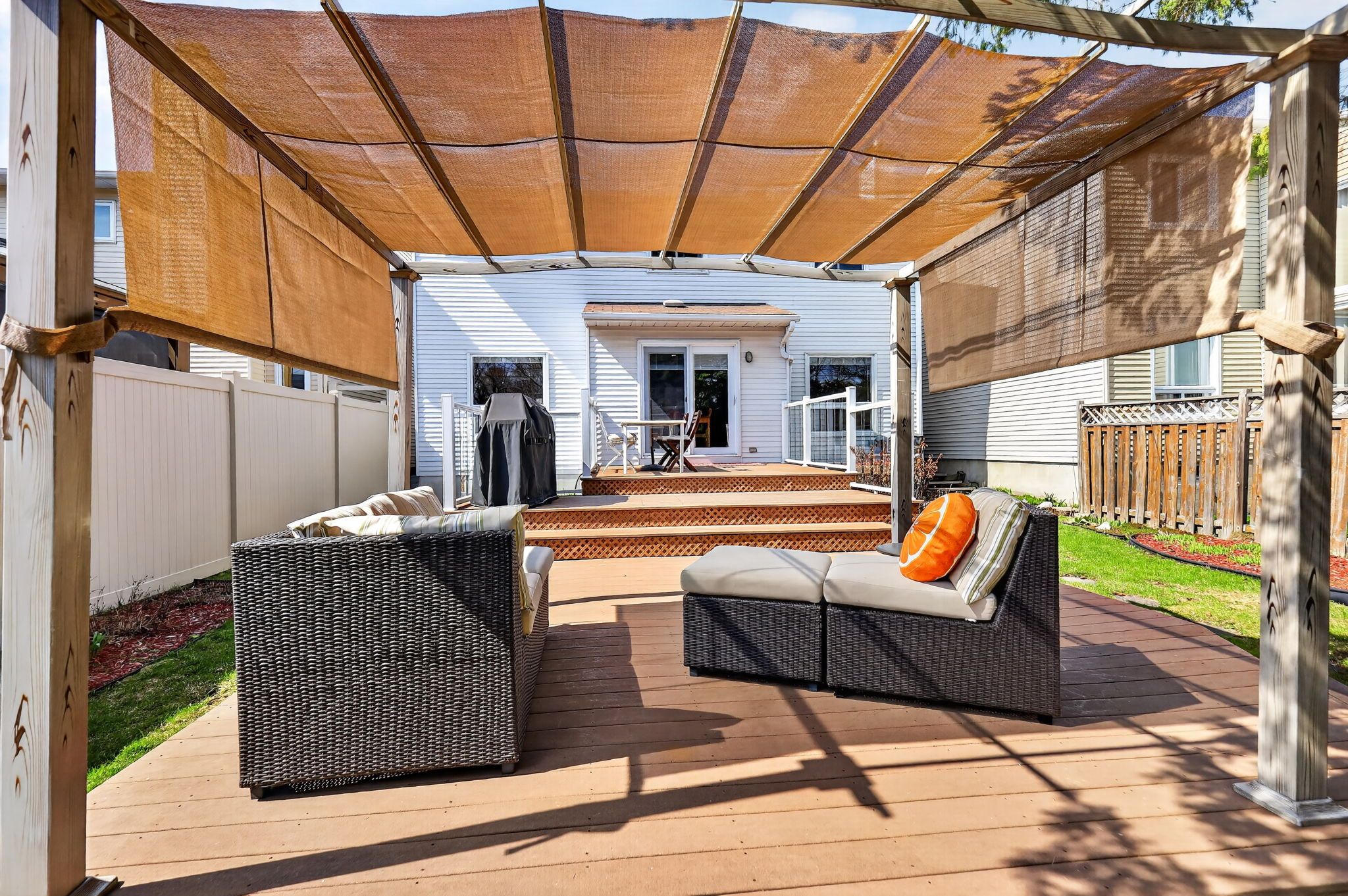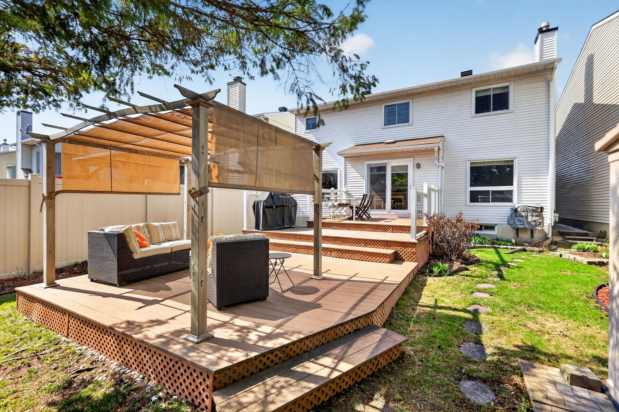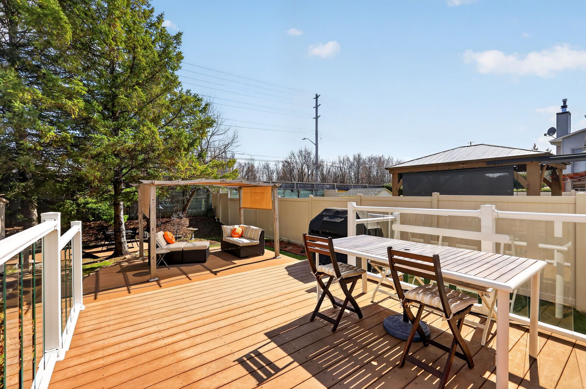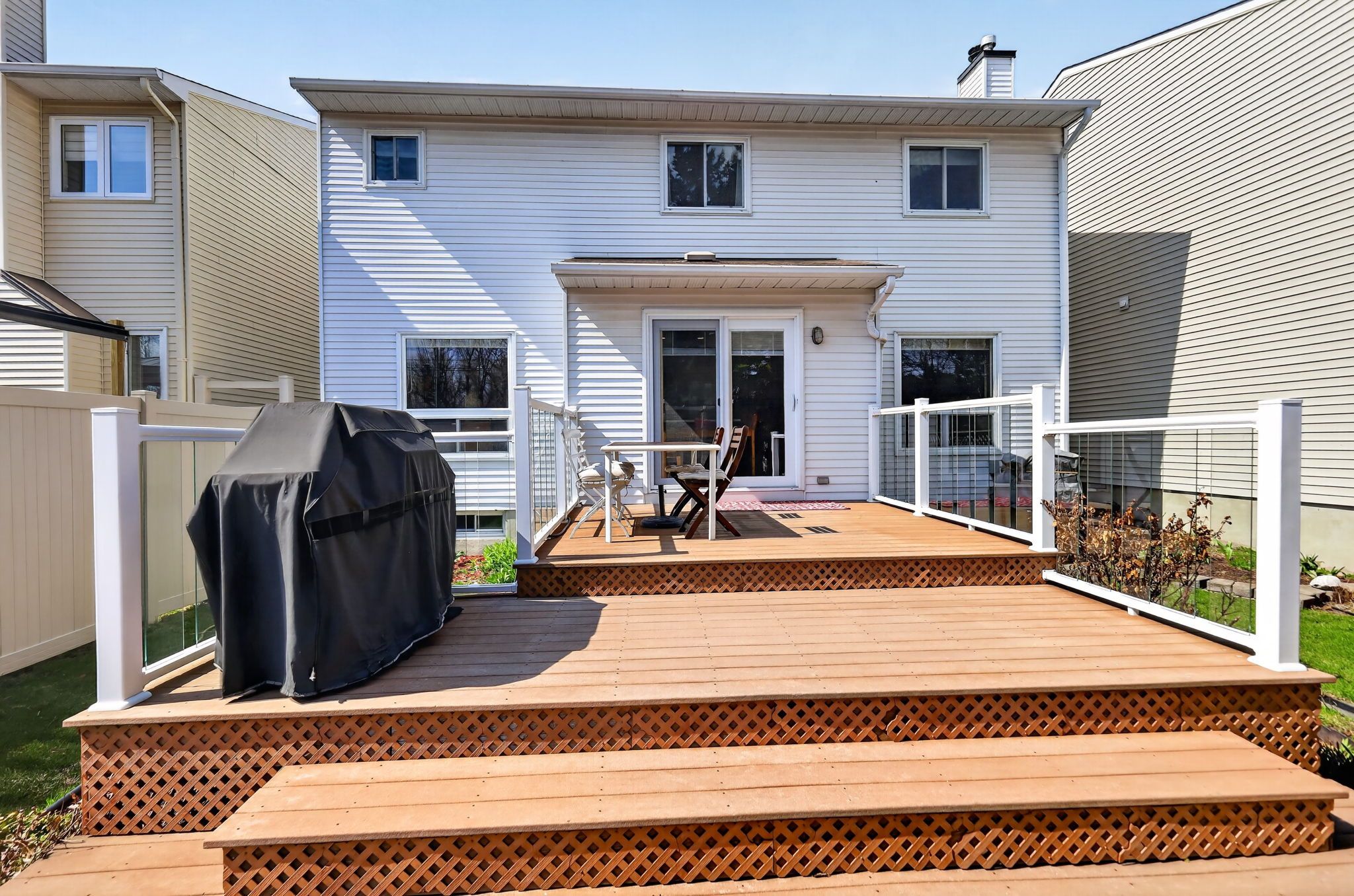 • Large three-tiered composite deck in the backyard, perfect for outdoor enjoyment.