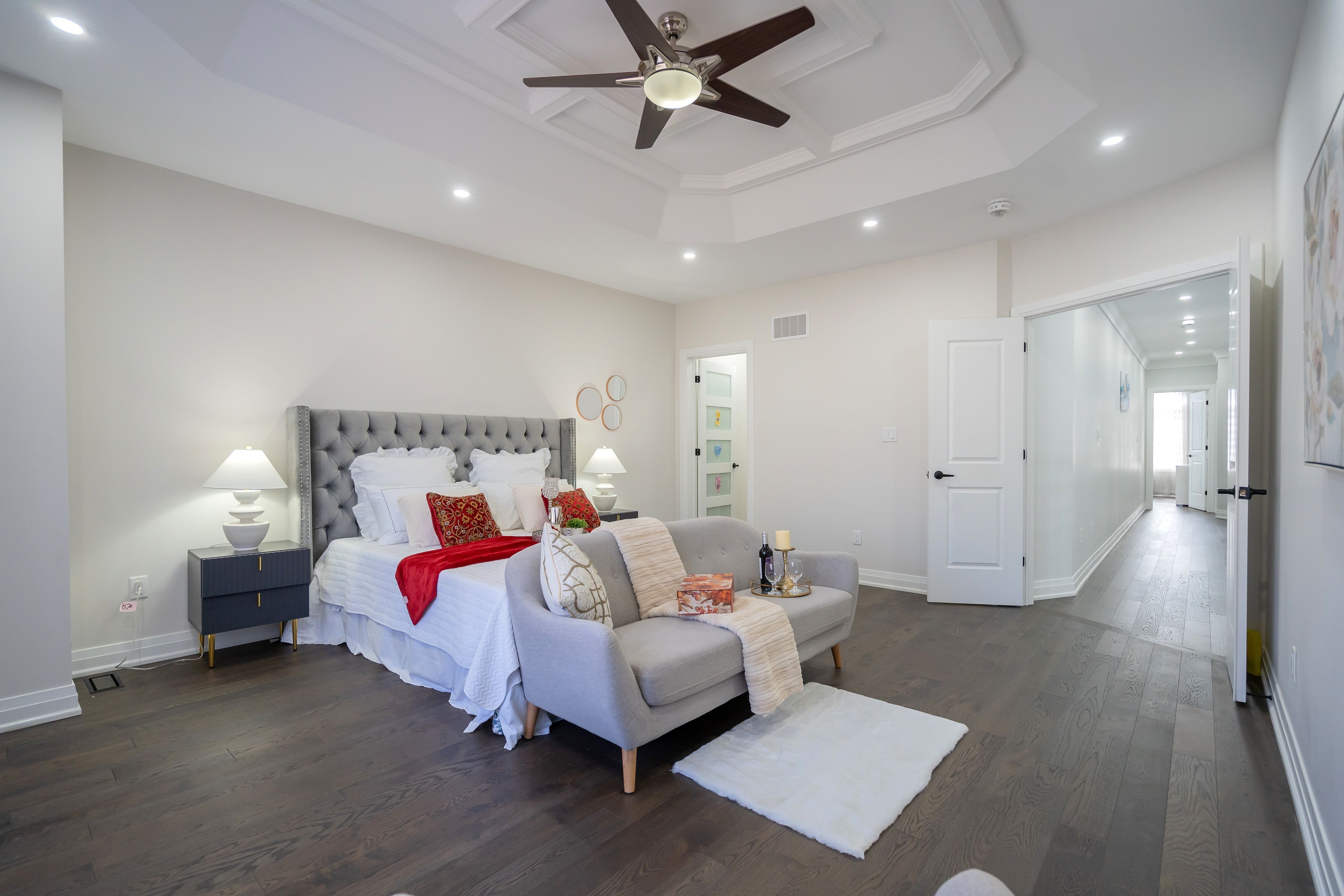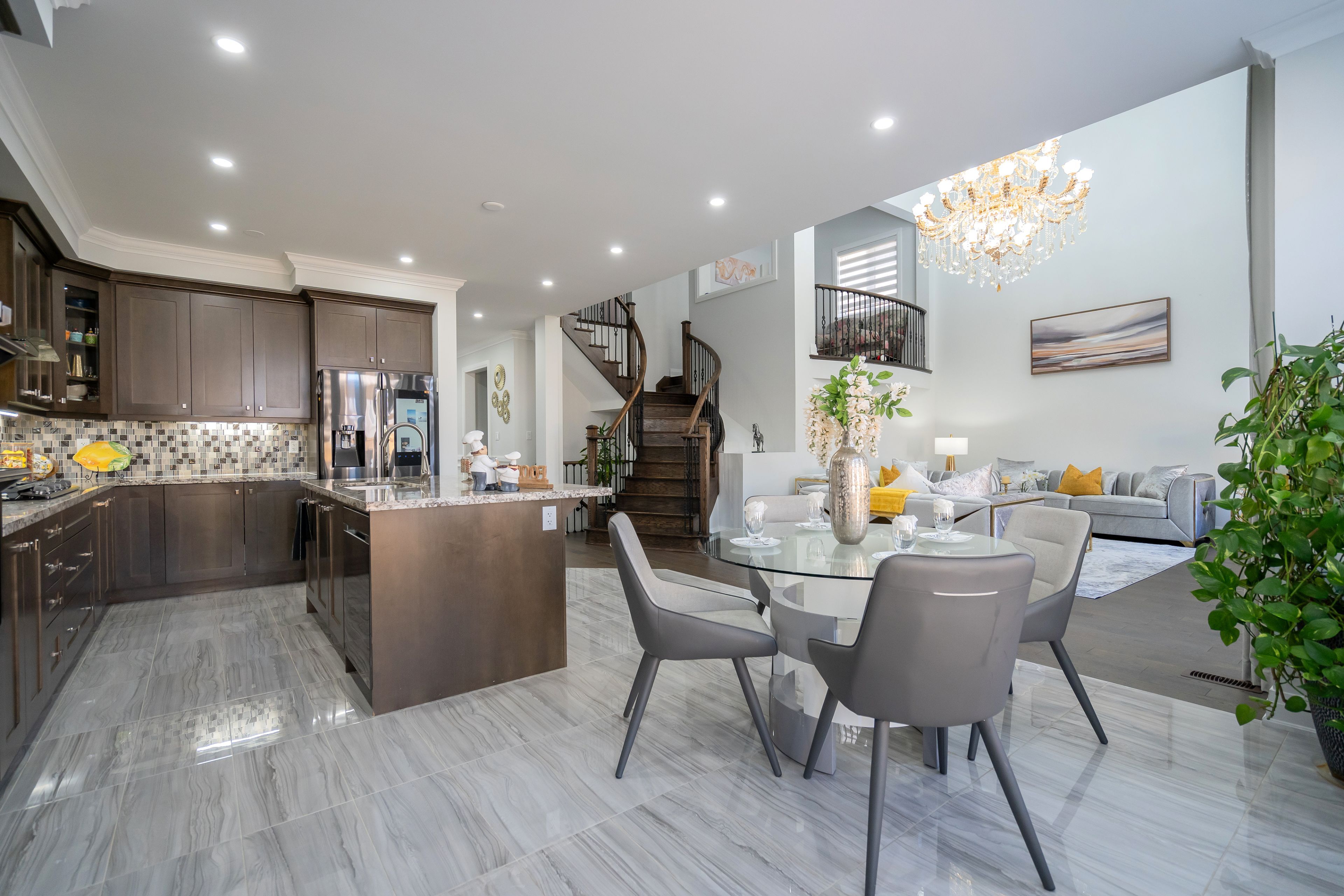 This stunning 3683 sqft above ground home is the perfect blend of luxury and functionality, designed with impeccable attention to detail. Offering 5 spacious bedrooms and 5 bathrooms, it includes a convenient in-law suite on the main floor with a full washroom. The grand family room boasts a striking 19ft ceiling, complemented by a $30k upgrade on a custom chandelier and fireplace wall. Over $250k has been spent on top-to-bottom upgrades throughout the home, including premium taps, showers, bathtubs, sinks, and custom closets in two bedrooms, with his-and-her closets in the primary bedroom. Step into the beautifully landscaped backyard, featuring exposed aggregate concrete, ideal for outdoor entertaining. Inside, the home offers stylish metal pickets on the staircase, ceramic tiles, and 5" engineered flooring throughout. The kitchen is a chef's dream, with an upgraded backsplash, tall cabinets with crown moulding, high-end samsung appliances, and an under-mount sink. Every bedroom showcases 84" carrara model doors for an added touch of elegance. Situated in a welcoming neighbourhood close to all essential amenities, this home is not just a place to live but a lifestyle upgrade. Come and see the perfect home for your family! **extras** move and enjoy luxurious living! Close to schools, parks, golf, entertainment, and walking trails. Minutes away from shopping centre,highway 427 and airport. Enjoy our full video tour.