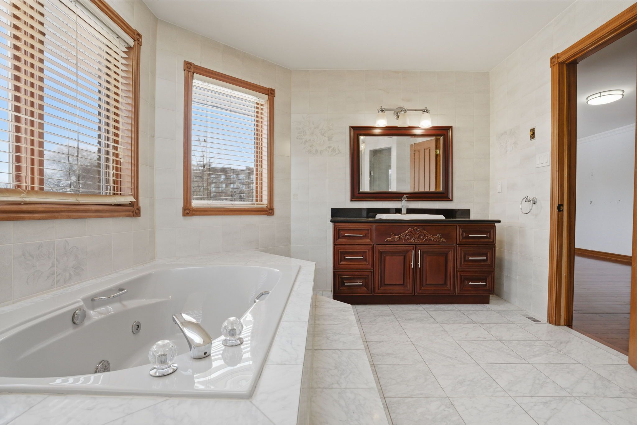 • Four sizeable bedrooms with rich hardwood flooring throughout.