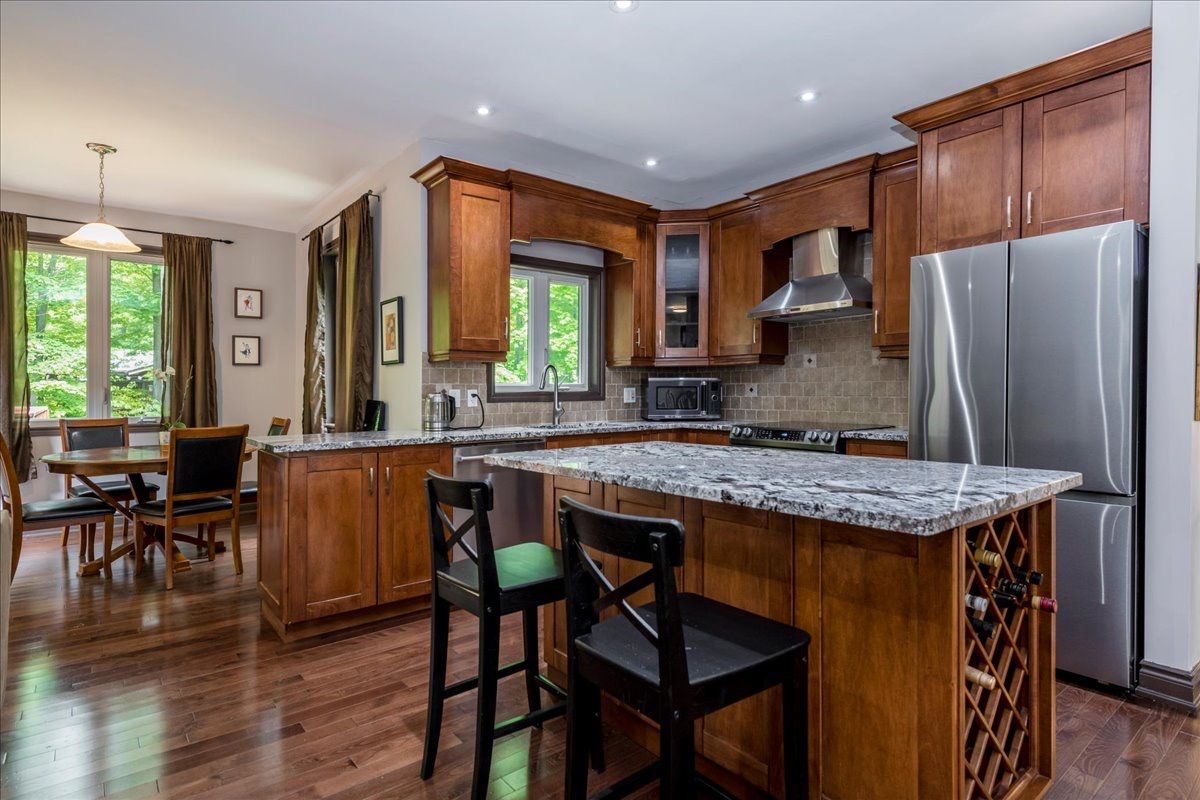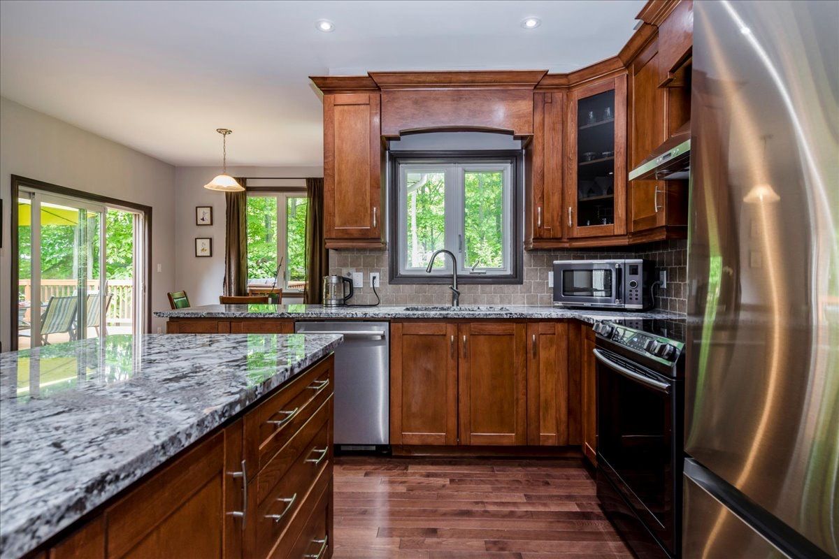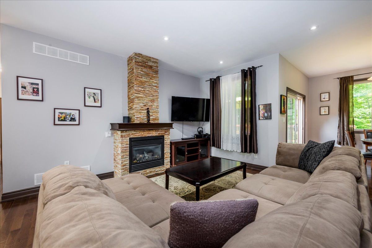Set on an expansive 100 x 140 ft lot, this beautifully maintained 1,719 sq. Ft. Bungalow offersexceptional comfort, functionality, and lifestyle appeal. Featuring a striking full stone frontand professional landscaping, the home welcomes you with 9" smooth ceilings, an open conceptmain floor finished in hardwood and marble throughout. The thoughtfully designed layout includes 3 spacious bdrms and 2 full bath. The modern kitchenis equipped with a central island, ss appliances and separate breakfast area with w/out to astunning 500 sq. Ft. Deck, complete with a sunken built-in hot tub, perfect for entertaining. The dining area and inviting family room with gas fireplace provide ideal spaces for botheveryday living and hosting guests. The primary bedroom features a walk-in closet, a luxurious ensuite with corner jetted tub,separate shower and direct access to a private deck. Additional highlights include plenty of rot lights, a laundry/mud room, direct access to adouble car garage, central vacuum, hrv system, 200-amp electrical service, and ahigh-efficiency gas furnace. The fully finished basement significantly expands the living space with 3 additional bedrooms(all with large above-grade windows), a full bathroom, a spacious recreation/entertainmentarea, and a versatile game room which ideal for a home gym, hobby space, or theatre. Outdoors, enjoy a professionally landscaped property with sodded lawns on all sides, maturefruit trees, berry bushes, and a fire pit area for relaxing evenings. Ideally located just a short 10-minute walk to the sandy shores of georgian bay, and onlyminutes to golf courses, ski hills, awenda provincial park, lafontaine village, midland, and penetanguishene. Do not lose a rare opportunity to own a turnkey property in a highly desirable recreationalarea. Come experience it for yourself!!!