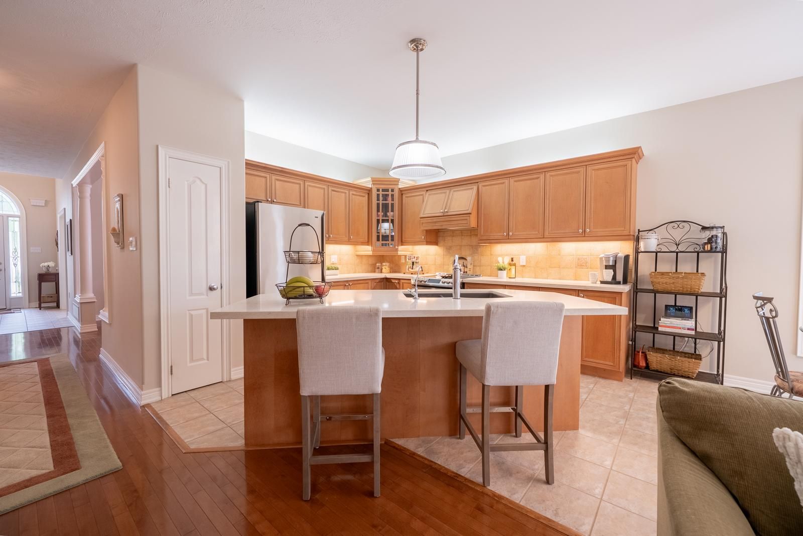 Stunning and spacious bungalow offering elegant living with exceptional functionality! This beautifully maintained home features 2+1 bedrooms, a dedicated office, and rich hardwood floors on the main level, creating a warm and welcoming atmosphere. The formal dining room is a true showpiece, adorned with decorative columns and detailed crown moulding that elevate the space with timeless sophistication perfect for hosting family dinners or formal gatherings. Enjoy the ease of open-concept living in the heart of the home, where the kitchen, eat-in area, and family room flow seamlessly together. The kitchen offers generous cabinetry and workspace, while the cozy fireplace in the family room invites you to unwind in comfort and style. The principal bedroom is a serene retreat, complete with a private ensuite for added privacy. A second spacious bedroom, a hallway bathroom, and a large walk-in pantry provide thoughtful convenience and ample storage for busy households. Downstairs, the fully renovated walk- out basement impresses with in-law suite potential and excellent additional spaces. It features a stylish wet bar, two large recreation areas ideal for media room, games room or fitness area. An additional bedroom, a bathroom, a gas fireplace, and an oversized laundry room add to the endless possibilities of this bright spacious lower level. Step outside to a maintenance-free backyard oasis, perfect for relaxing or indulging your green thumb. Enjoy comfort and shade under the remote-controlled awning, making this outdoor space ideal for all of those special gatherings with family and friends. Located in a quiet, desirable neighbourhood, this home offers the perfect blend of style, space, and practicality ideal for families, professionals, or multi-generational living. A true gem! Move in-ready and not to be missed!
