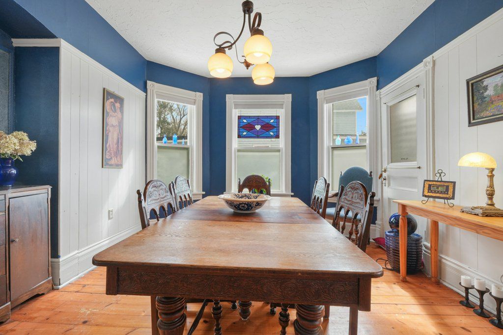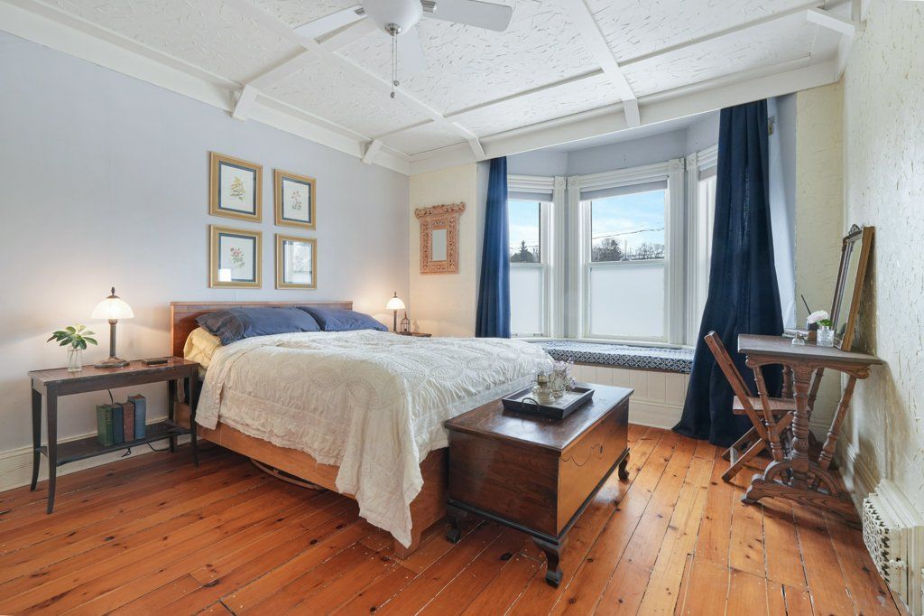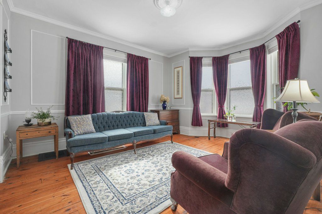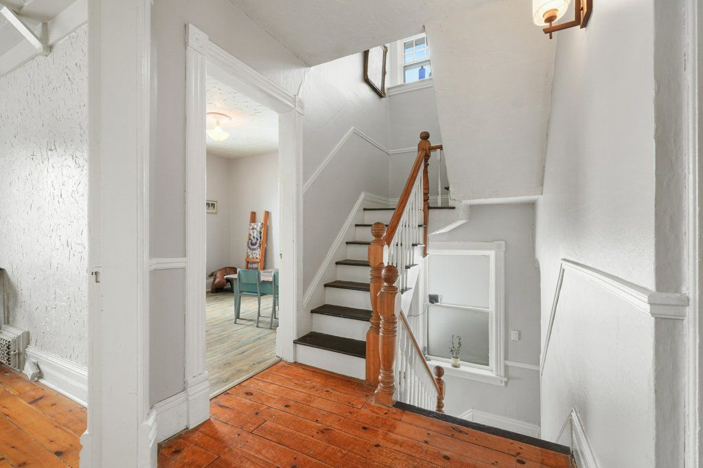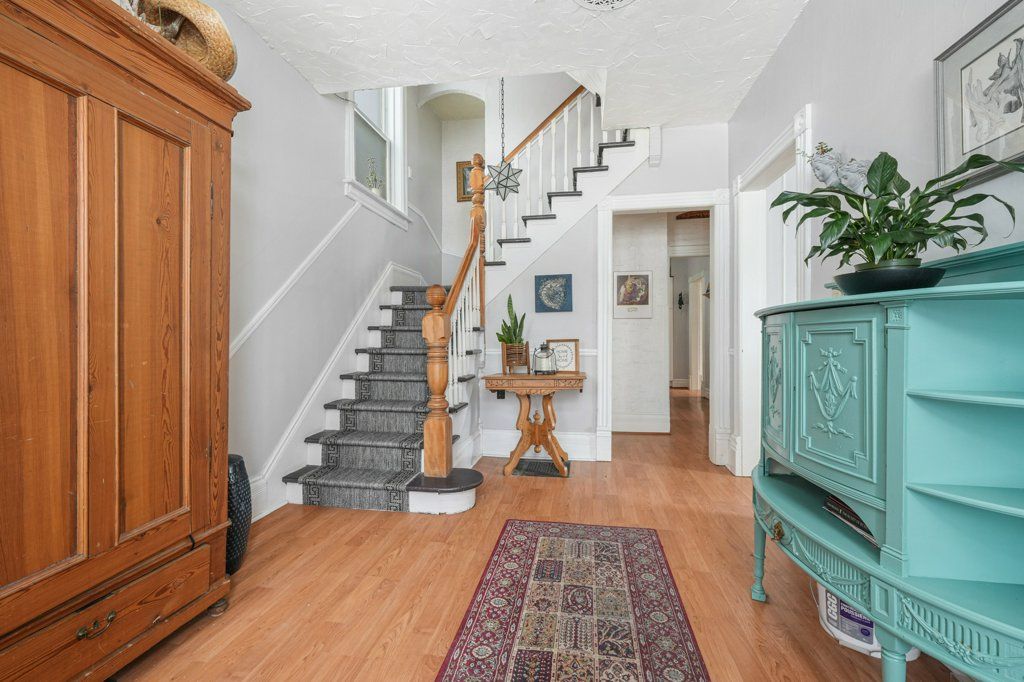 Timeless brick home with room to grow tucked into a private rear yard in town - where charm, space and privacy come together. This is the kind of property that feels special the moment you arrive - mature gardens and a private sundeck overlooking it all. Inside you'll find over 2,600 sq. Ft of thoughtfully lived in space that blends character with everyday comfort. The foyer welcomes you with high ceilings and a classic staircase that sets the tone. Formal living and dining rooms feature beautiful bay windows while the bright updated kitchen with island is ready for both quiet mornings and busy family evenings. A comfortable family room with an airtight woodstove and large picture windows brings the outdoors in. A sauna with shower along with main floor laundry and additional storage completes the space. The second floor offers four well sized bedrooms, a full bathroom and a walkout to the roof overlooking the rear yard. The third floor adds even more flexibility perfect for an office, reading nook, yoga space or guest area with additional attic storage beyond. Original details like high baseboards, rich woodwork and pocket doors carry throughout adding timeless charm. A solid character-filled home with space to grow inside and out - ready for your next chapter.