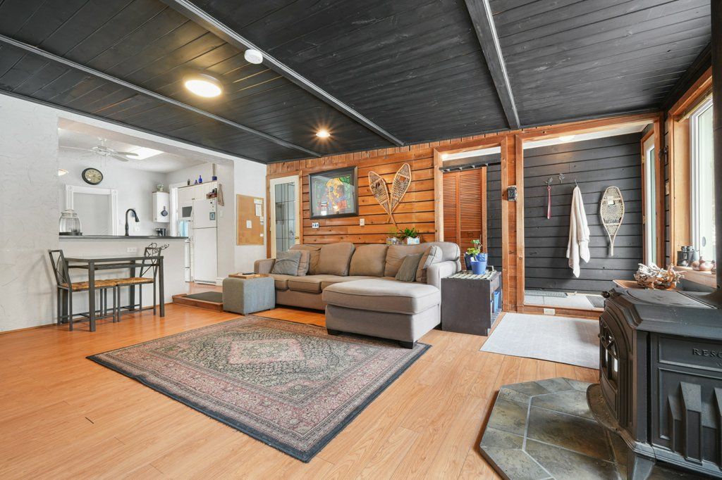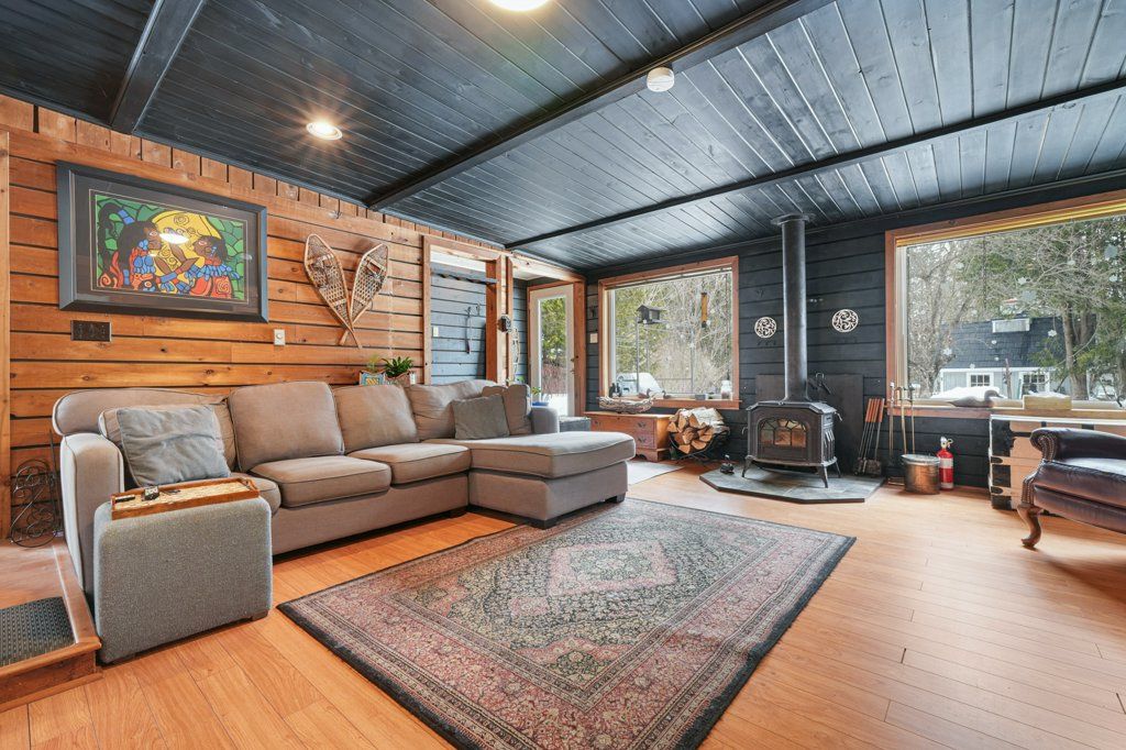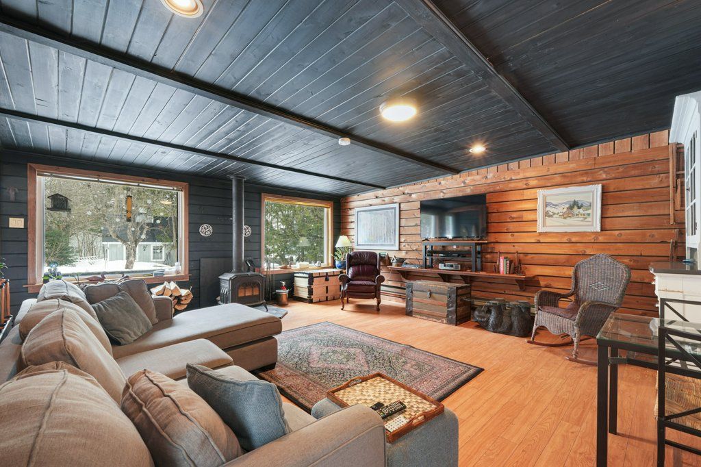 • Comfortable family room with large windows and a woodstove.