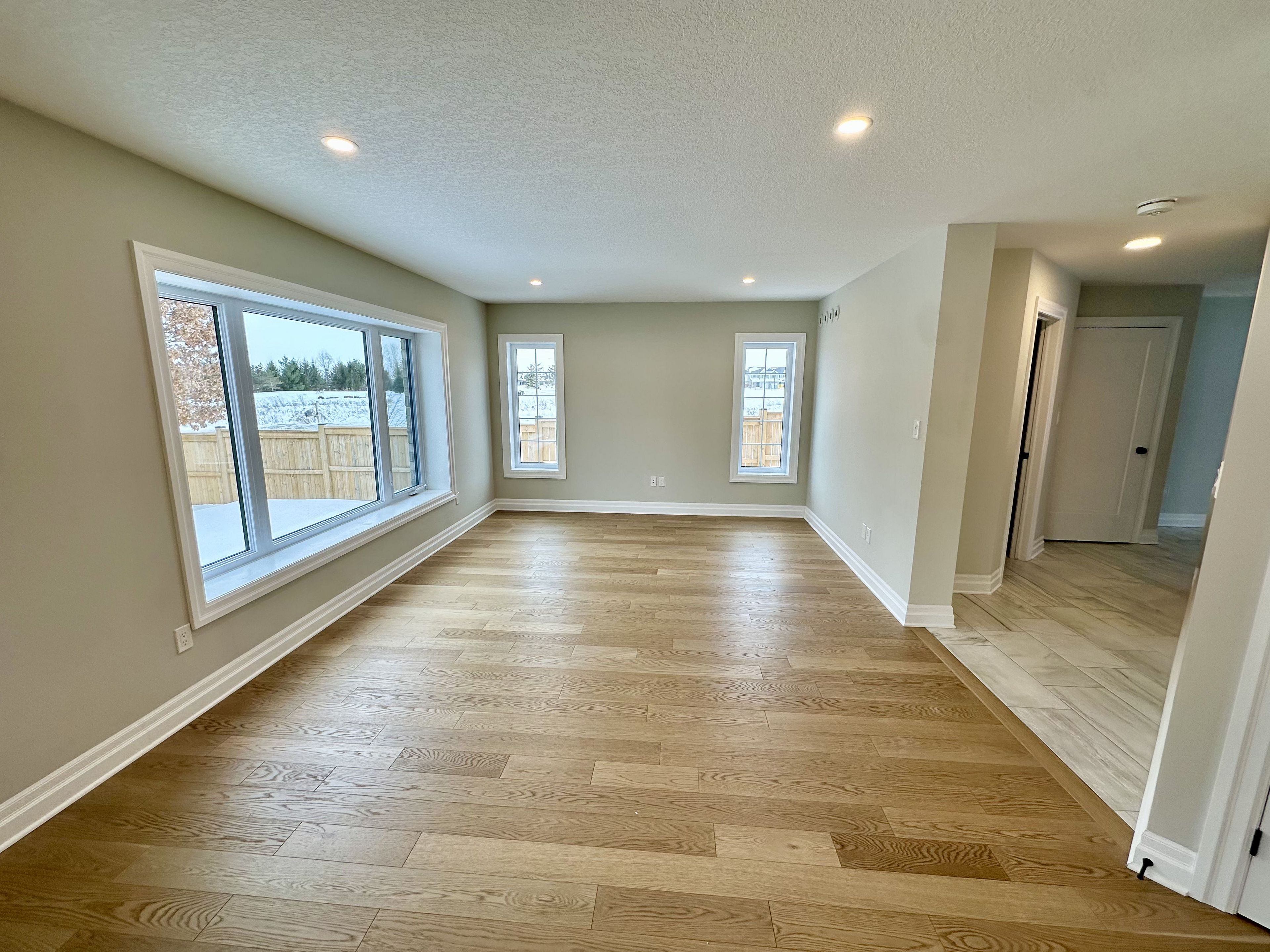 • Open living areas featuring hardwood and ceramic tile flooring.