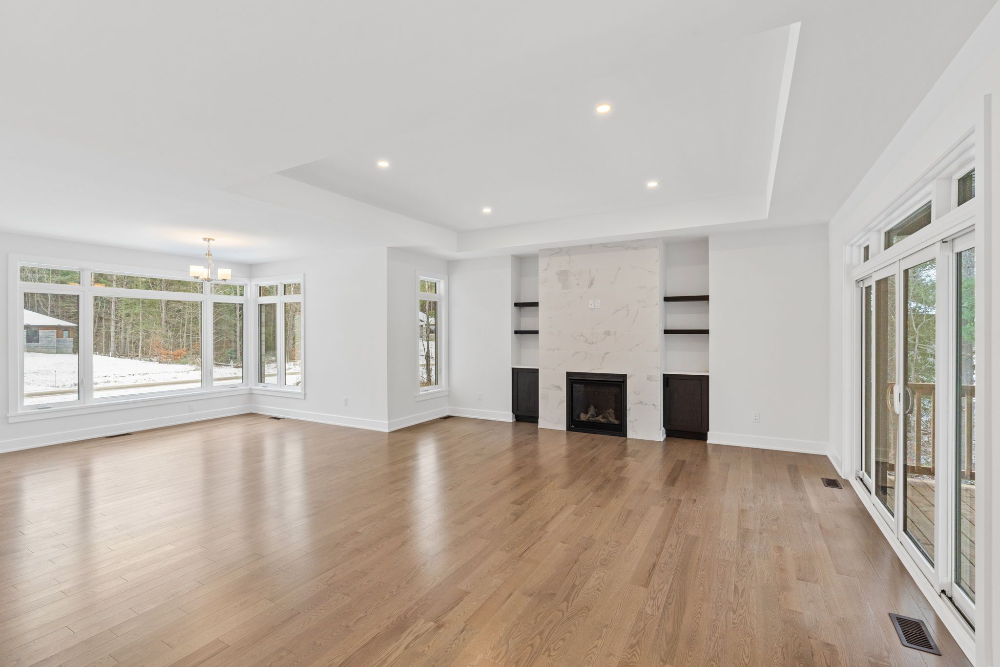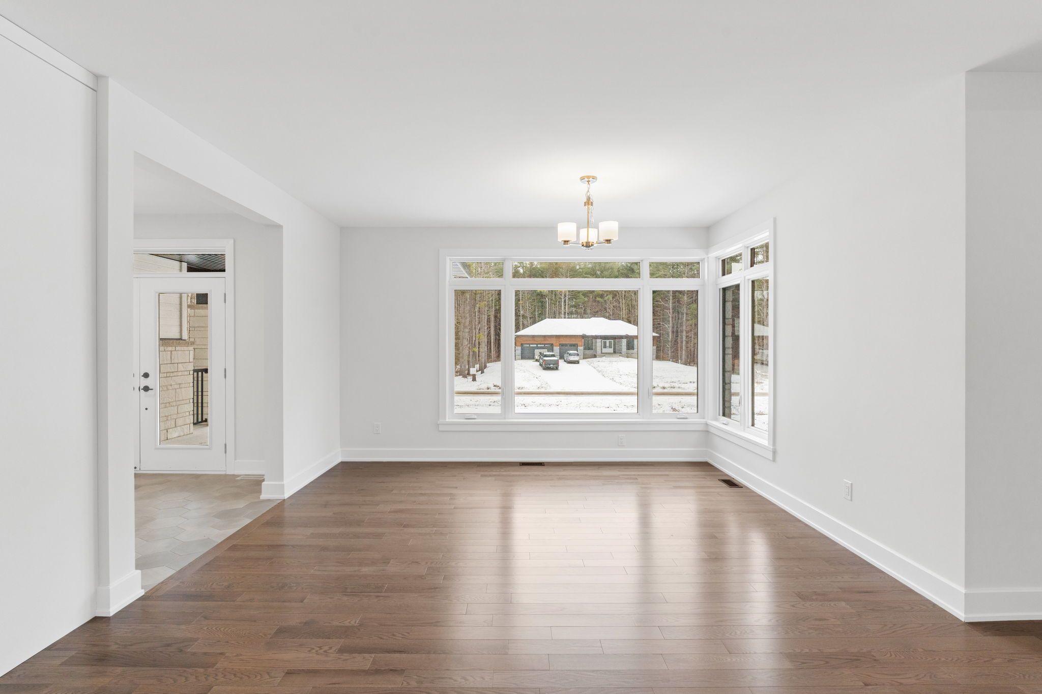 Situated in the second phase of hogan heights, this well-appointed bungalow offers the serenity of country living with the convenience of nearby amenities. Set near the algonquin trail, the property is within easy reach of recreation, retail, shopping, and schools. The benton 2. 0 walkout model by mackie homes features approximately 1,978 square feet of well-planned living space. It includes three bedrooms, two full bathrooms, and a desirable walkout elevation, with an unfinished lower level that provides flexibility for future living space. The open concept layout is designed for both everyday living and entertaining. It features a dining area and a great room with a fireplace and access to the rear porch that extends the living space outdoors. The kitchen is equipped with granite countertops, a walk-in pantry, and a centre island that offers additional workspace. A laundry room/family entrance provides interior access to the three-car garage. The bedroom layout includes a comfortable primary suite complete with a walk-in closet and a five-piece ensuite. This property is currently under construction.