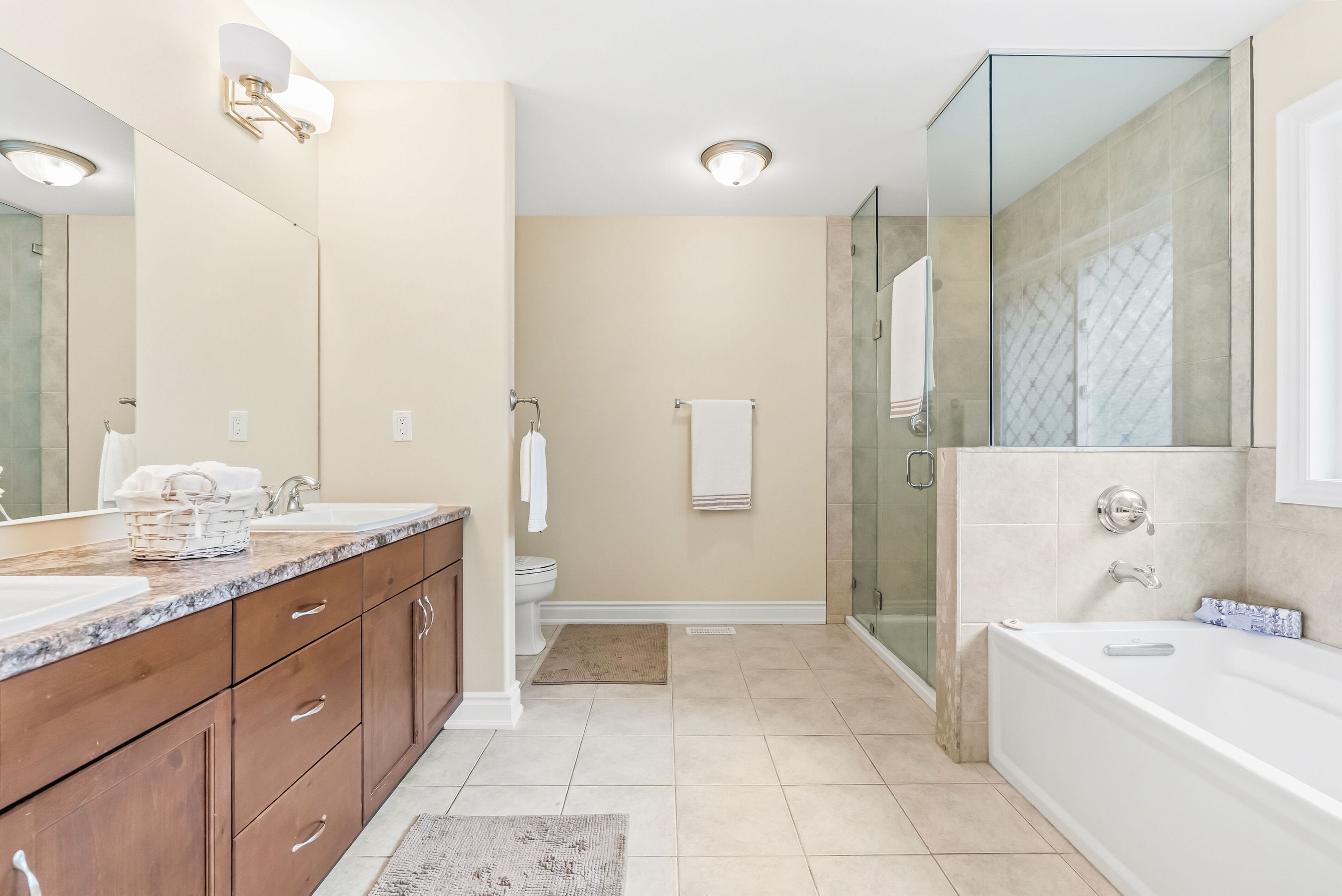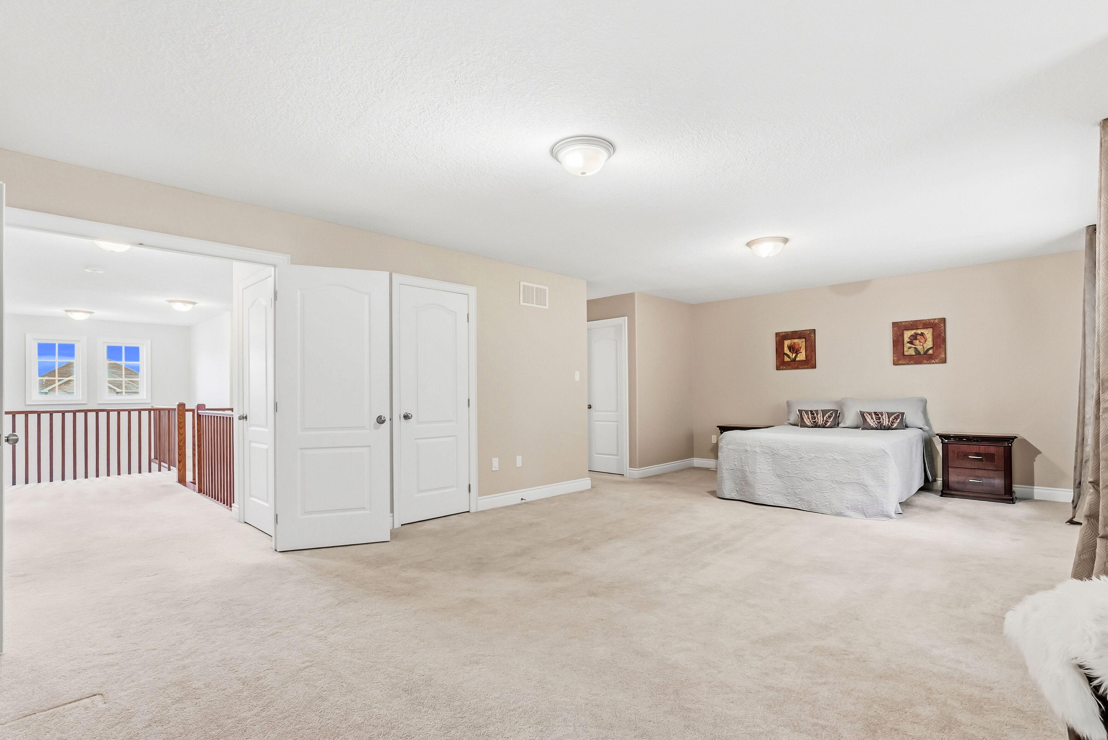 • Luxurious primary suite with ensuite and three closets for ample storage.