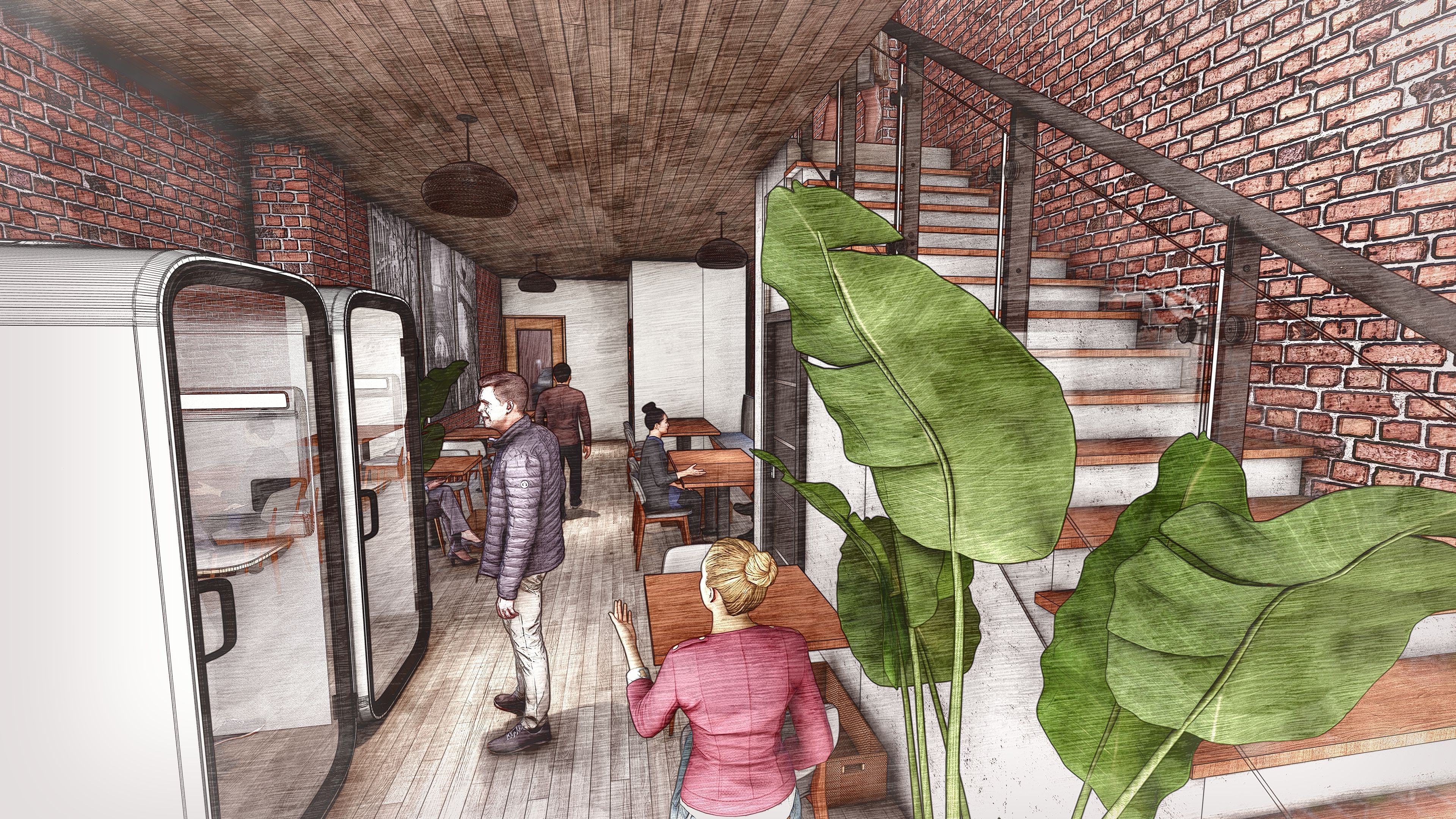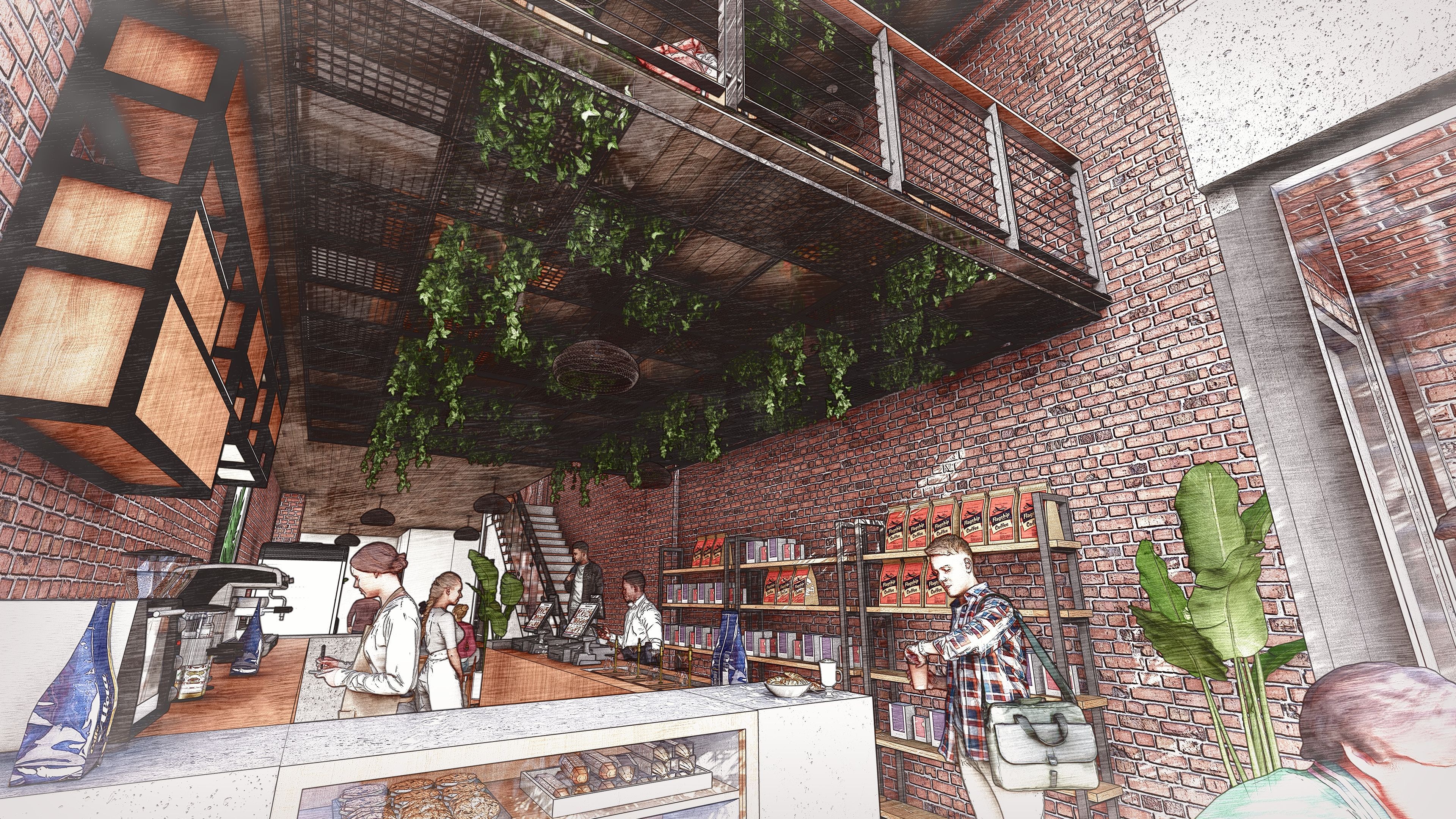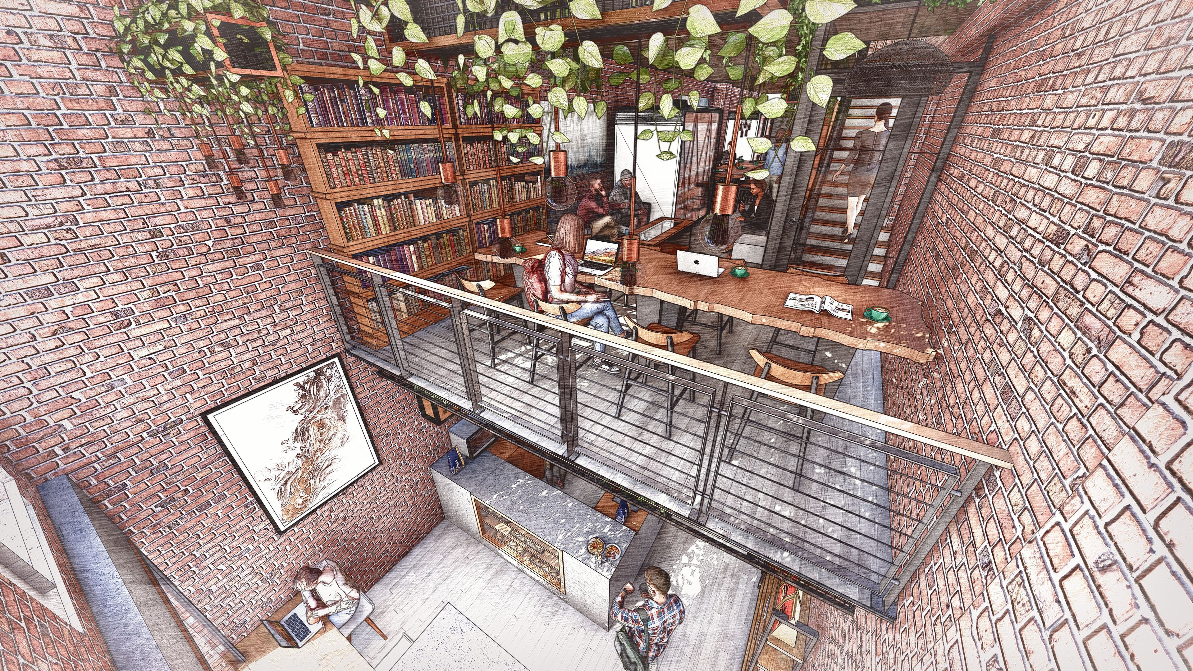 • Second floor overlooks storefront, perfect for additional use.
