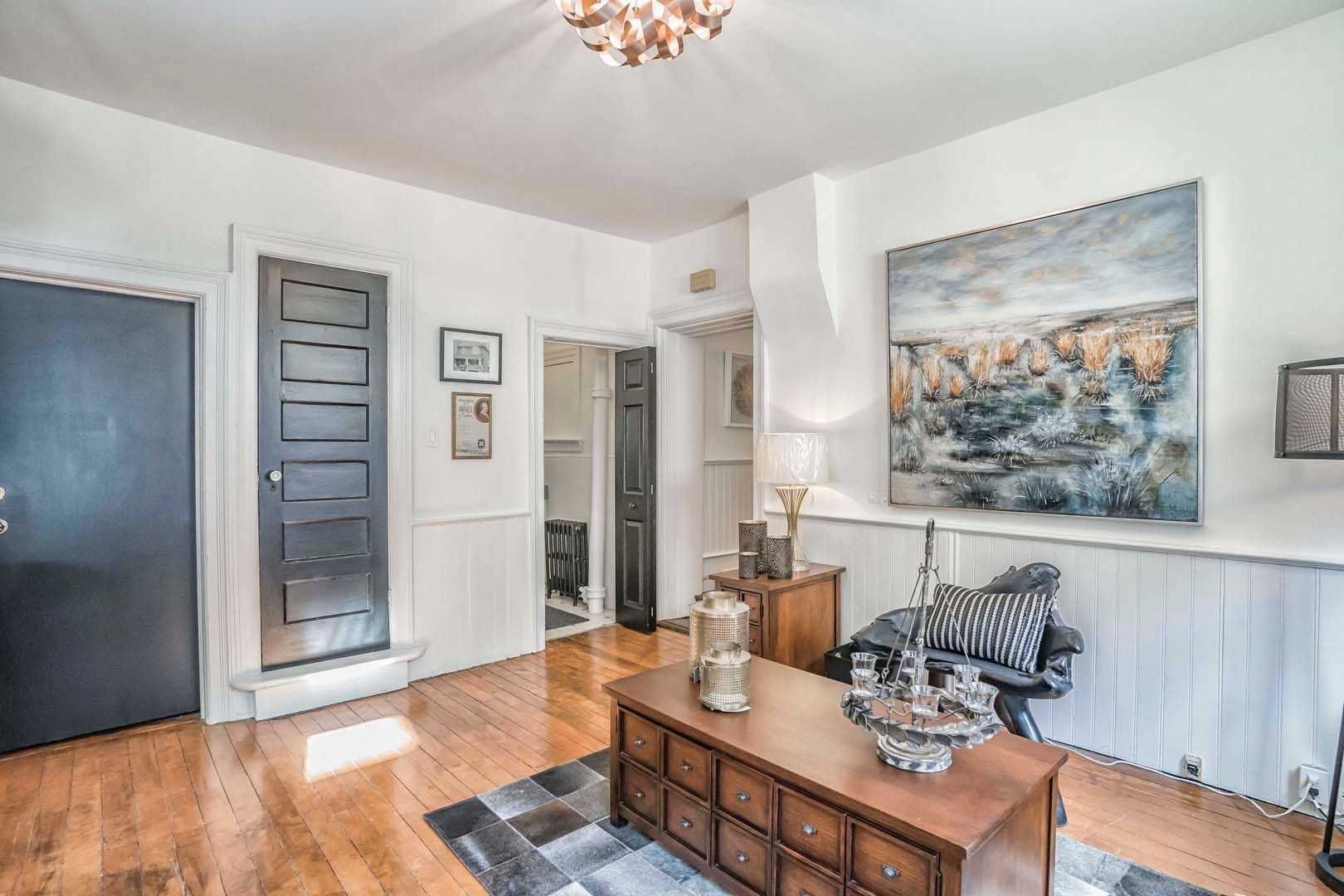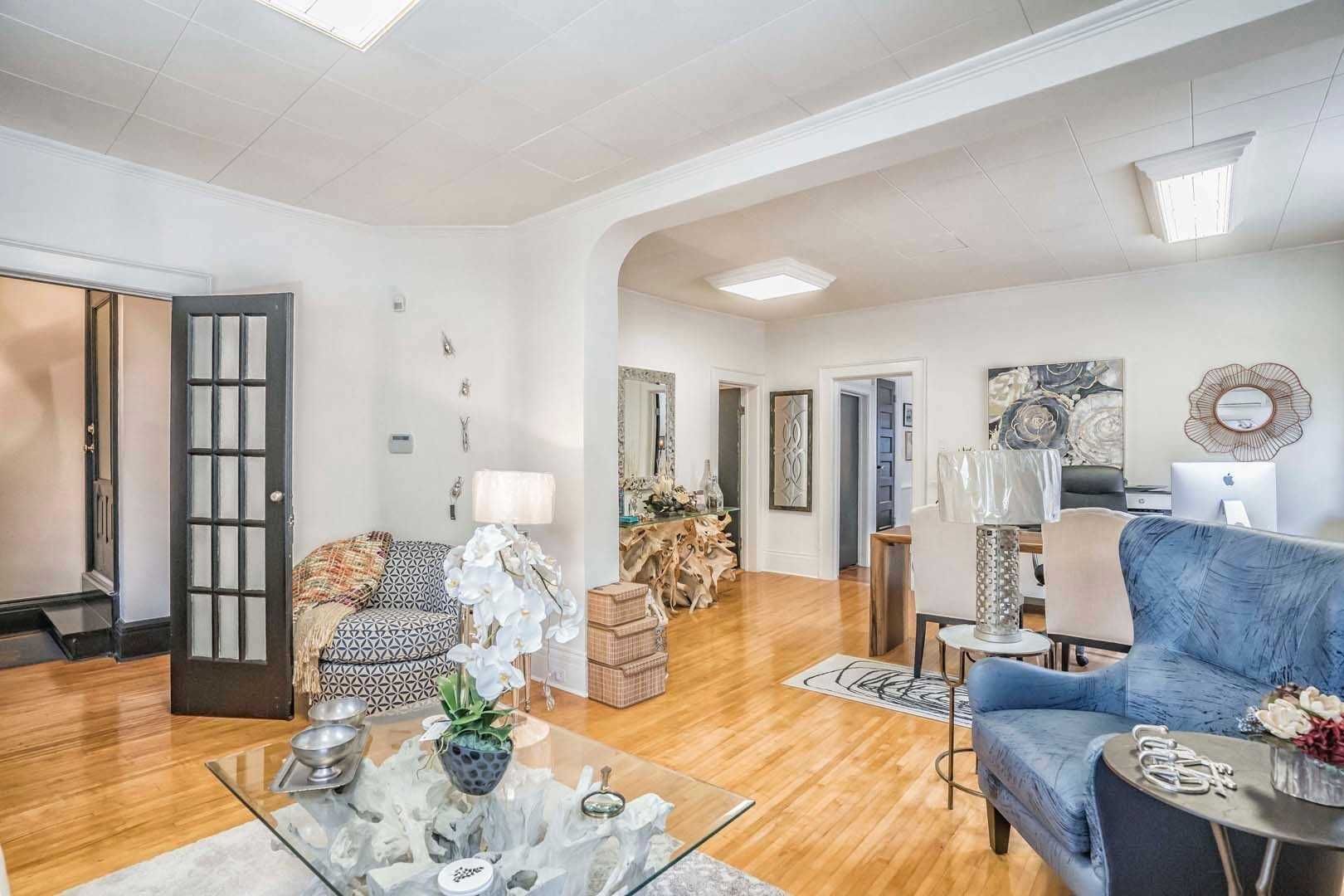 Main floor retail/office space available in the heart of old markham village. Zoned c2 with many possible uses to be confirmed by tenant, private double driveway not mutual and no right of way for neighbours to drive thru. This property has right of way over neighbours to the north for easy access in and out. Free street parking. Note: tmi also includes heat/hydro/water. Multiple entrances from the front/side/back, high ceilings, hardwood floors, kitchenette,2x2 pc washrooms, double man door located at rear for shipping/receiving. Photos taken before the large tree was removed in the back corner of the driveway.