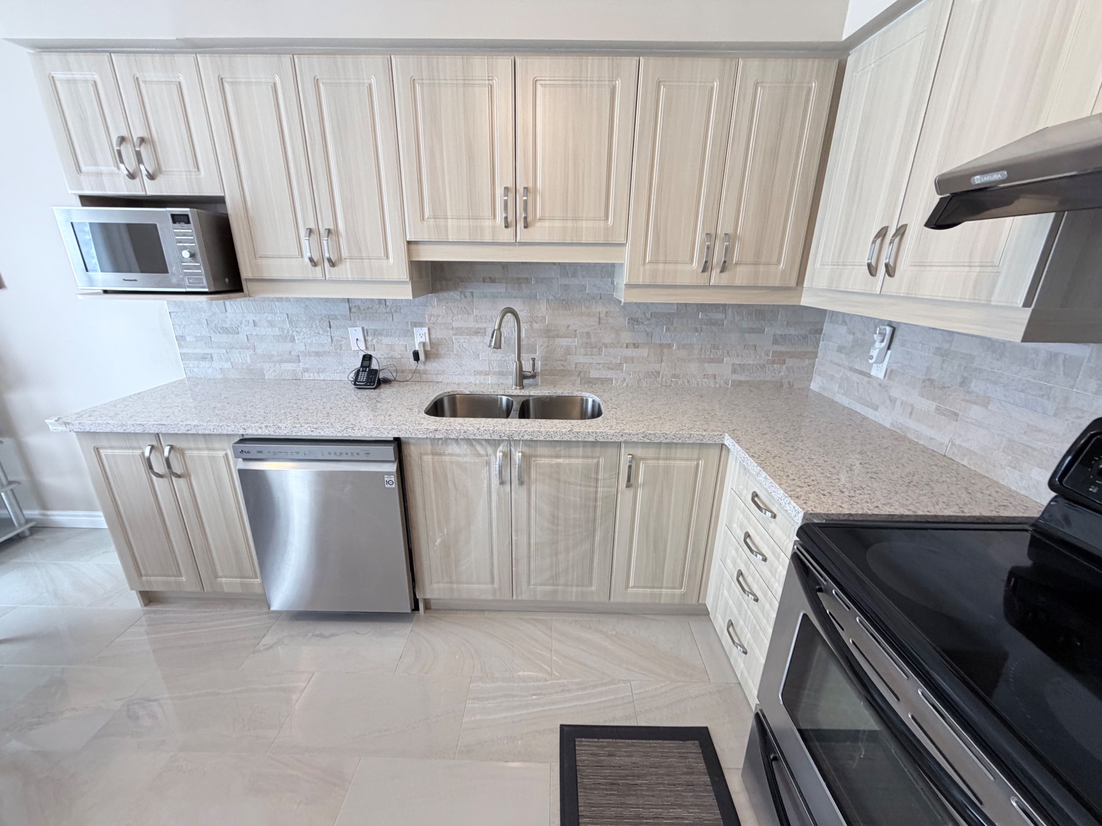 • Recently renovated kitchen featuring quartz countertops and stainless steel appliances.