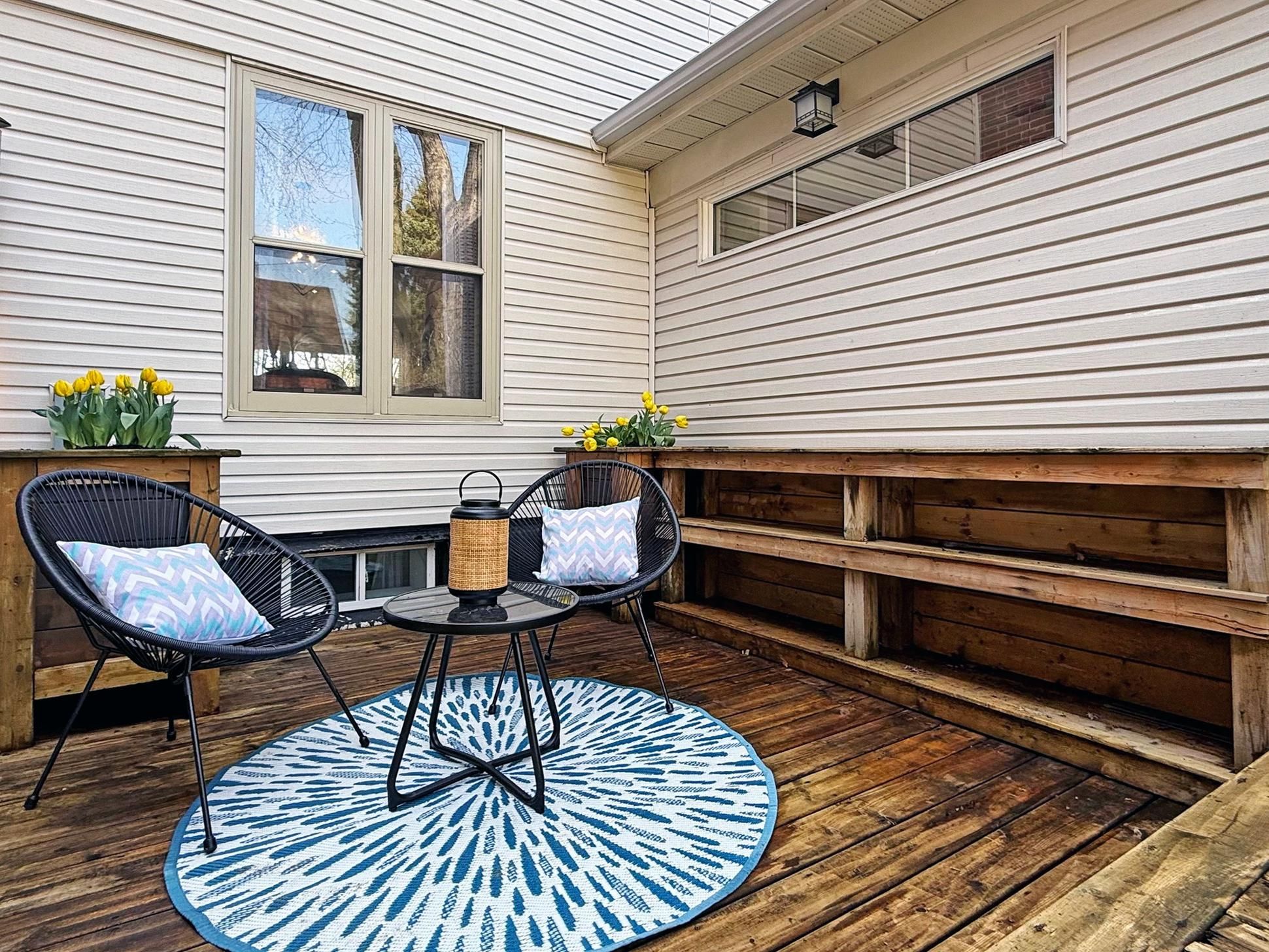 • Expansive deck with multiple seating areas, perfect for entertaining and relaxation.