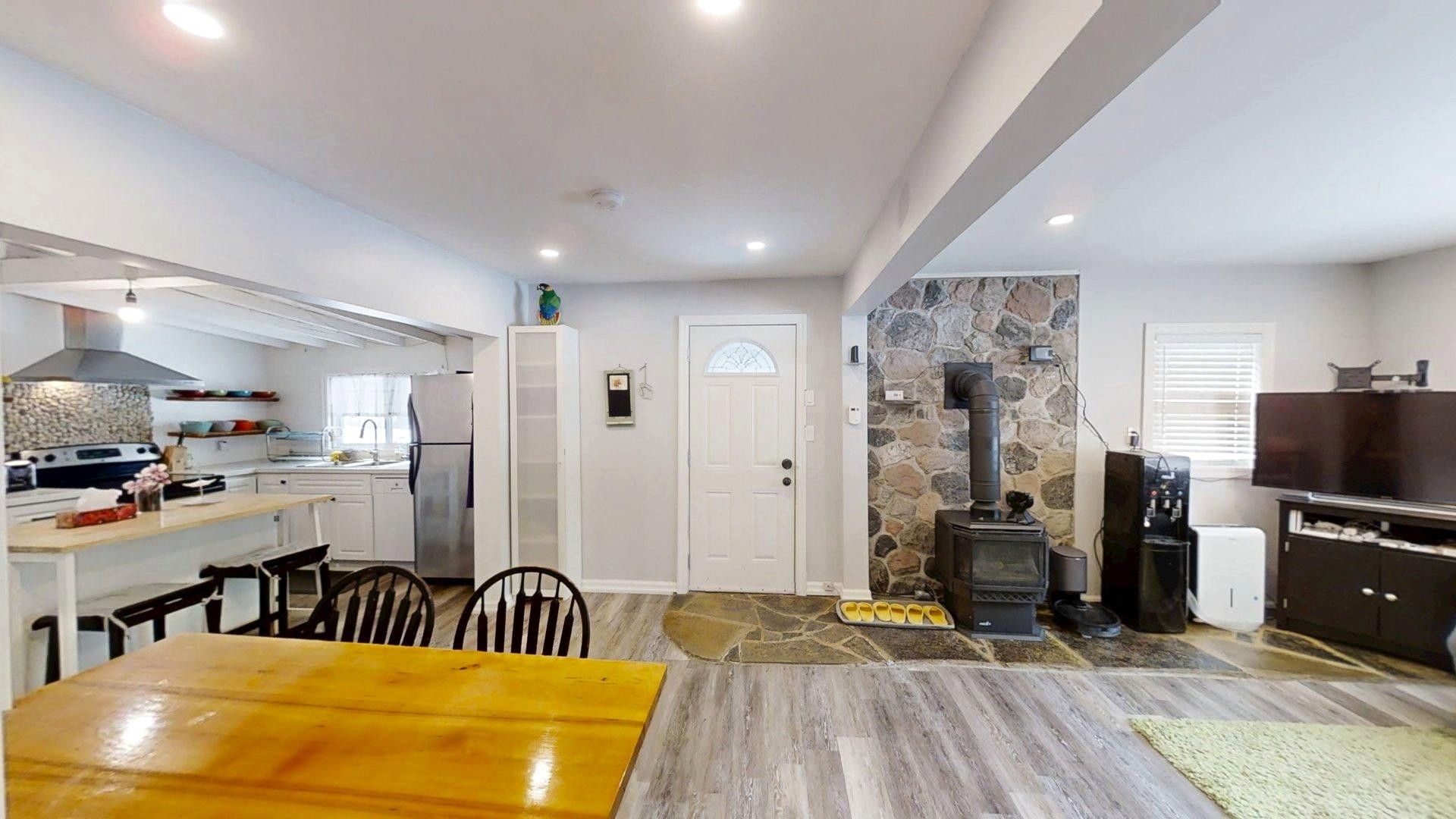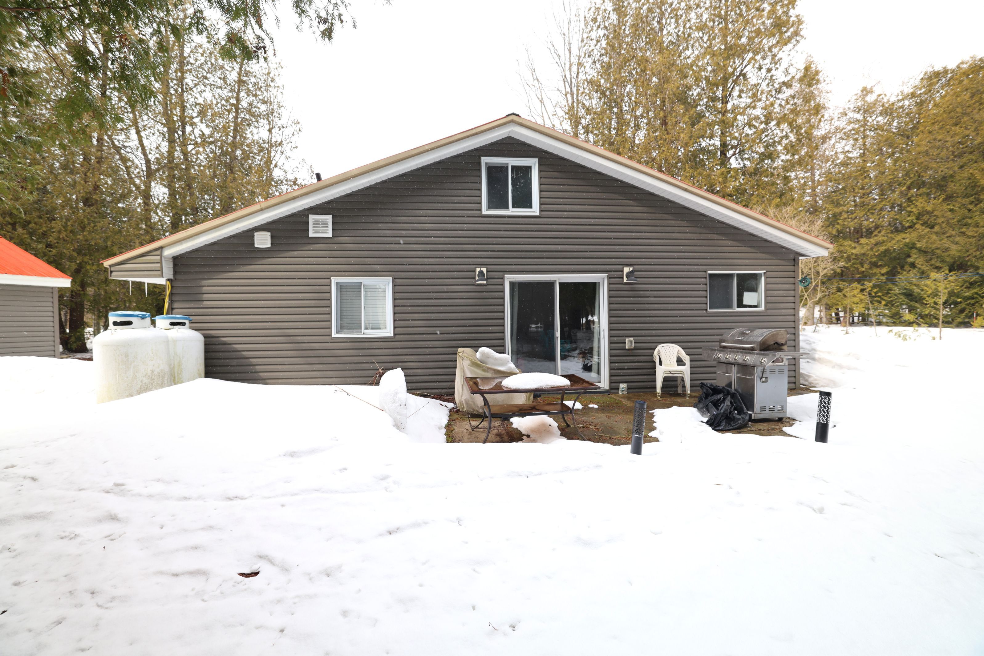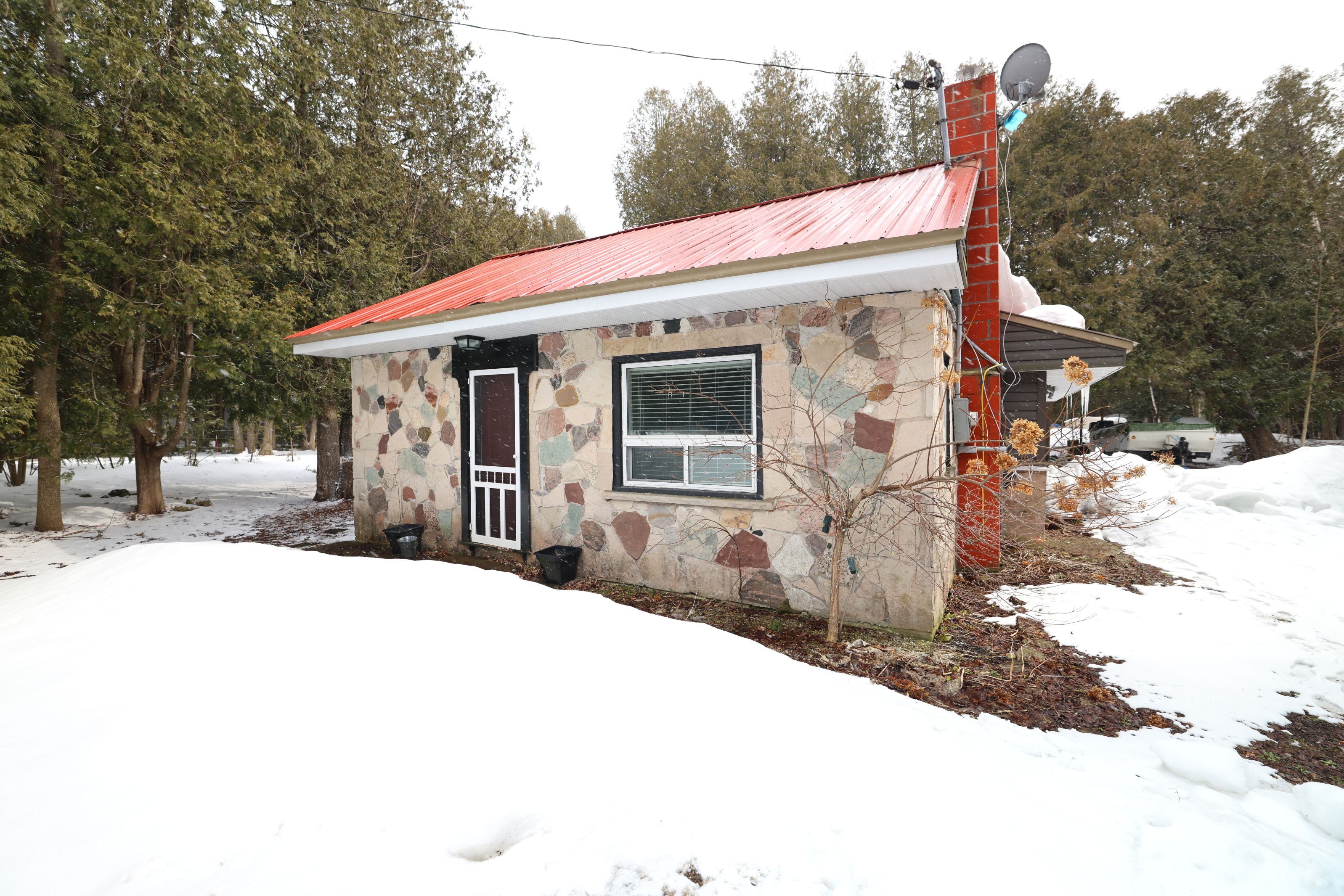 Dreaming of a lifestyle near the lake? This charming four-season bungalow is located just north of wiarton, ontario in the beautiful community by berford lake. Whether you desire a place for full-time living or a year-round cottage to get away to-you won't be disappointed! There are a ton of recreational activities close by to enjoy in any season! If you love kayaking, canoeing & swimming this is a perfect spot for you! The property is less than a 5-minute walk down the street to the public access at berford lake! Look forward to enjoying long summer days on the lake & short walks home to enjoy campfires & starry night skies. The home is nestled on a lot that is quite private. There are nice trees, low maintenance shrubs & perennial flowers. The back yard has a lovely patio & firepit area to enjoy. The detached garage is a bonus & is a great spot for storing tools and toys. Coming inside you'll find that the living space has been thoughtfully designed & flows well. The home features 3 bedrooms + 2 renovated bathrooms. The main bathroom is a 4pc w/tub-shower combo + large linen closet. It is located just off the kitchen. The master bedroom is big & features patio doors to back yard, a large closet, private access to the new 3pc. Bath addition w/lovely custom shower, as well as easy access to the utility & laundry room. The interior showcases a harmonious blend of contemporary & rustic design elements. L. E. D. Lighting throughout ensures bright, welcoming ambiance. A standout feature is the stone-faced wall with propane stove, adding both character & functionality to this space. The kitchen is updated with nice cupboards, modern appliances, new dishwasher, & ample counter space. The dining room features a substantial wooden table, perfect for family gatherings. Built-in shelving and storage solutions, such as the entryway coat hooks, maximize the use of space. This renovated bungalow strikes a balance between cozy family living & modern convenience. Move-in ready!
