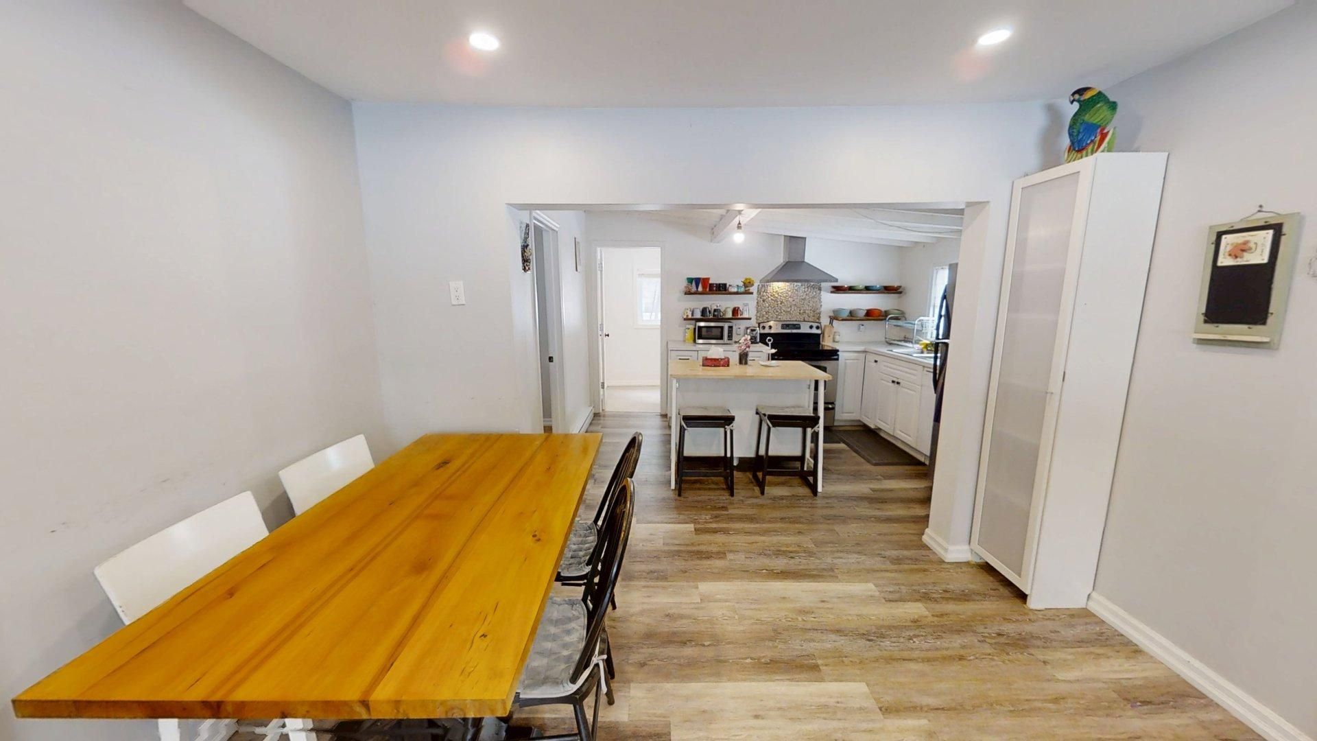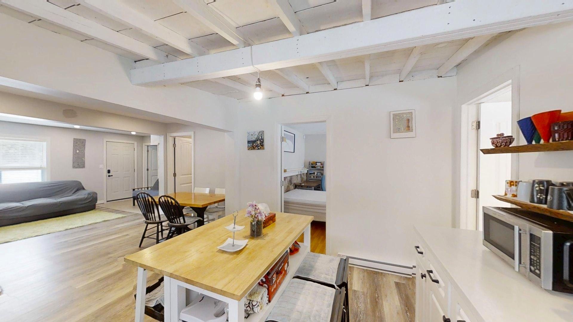 • Modern kitchen with updated appliances and ample counter space for family meals.